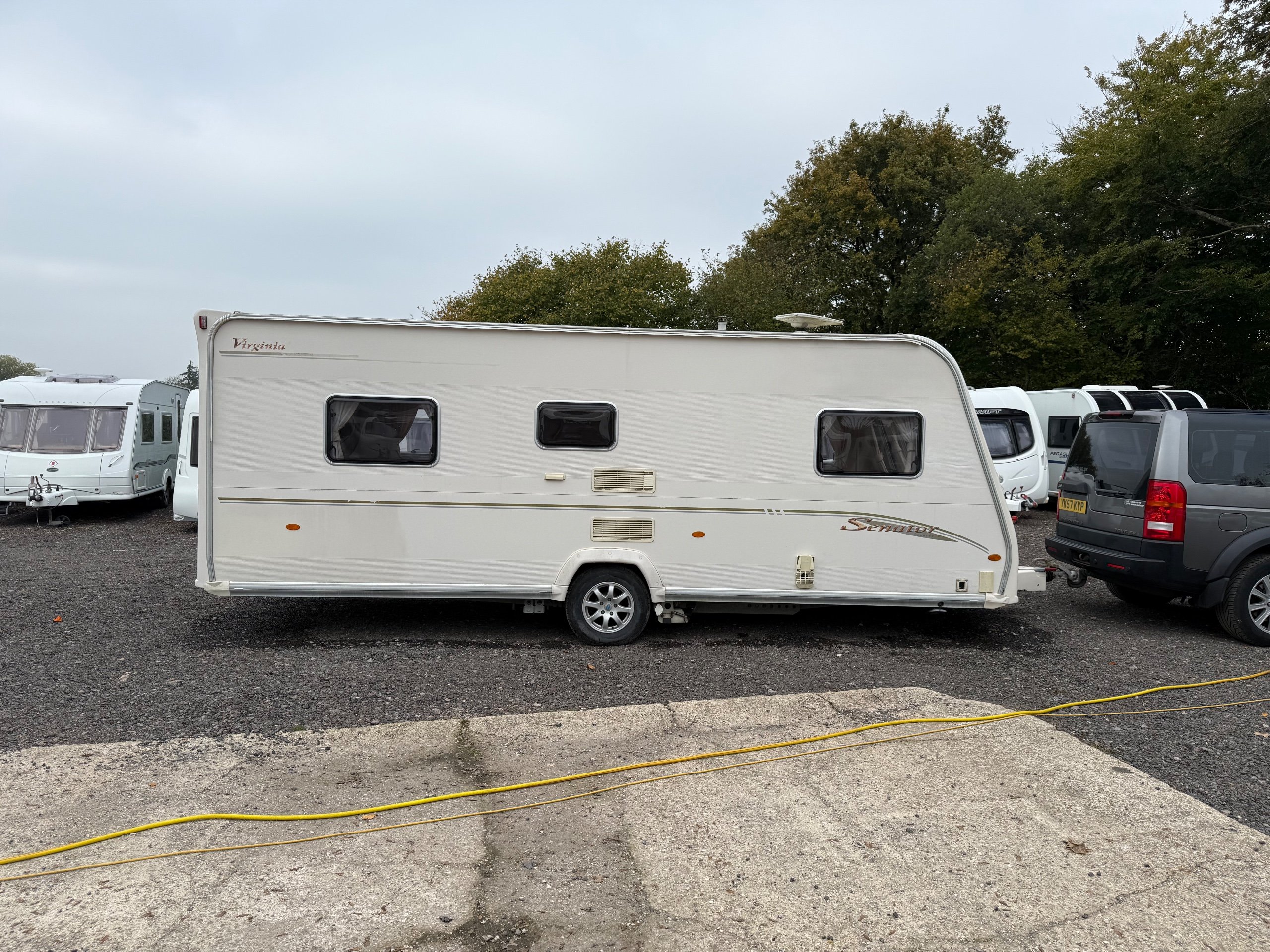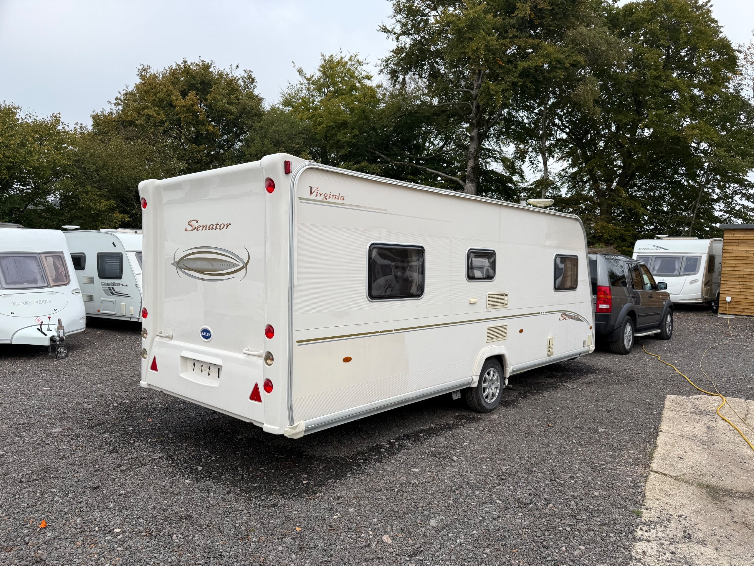 Bailey Senator Virginia 4 berth 2007 Fixed Island Bed caravan, in good Condition inside and out. This caravan is fully ready to take camping, it has lots of features and extras what you would expect from a high spec caravan such as this. It includes: hot and cold water, full central heating, full screens and blinds, full oven and grill, three-way fridge/freezer, 240–12 V electricity, HEKI rooflight, Alko Antisway towbar and much more.This caravan comes with a full