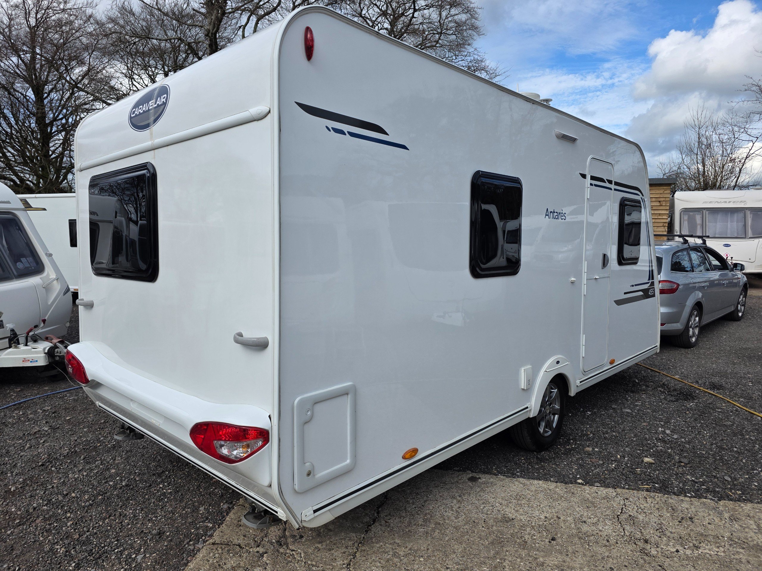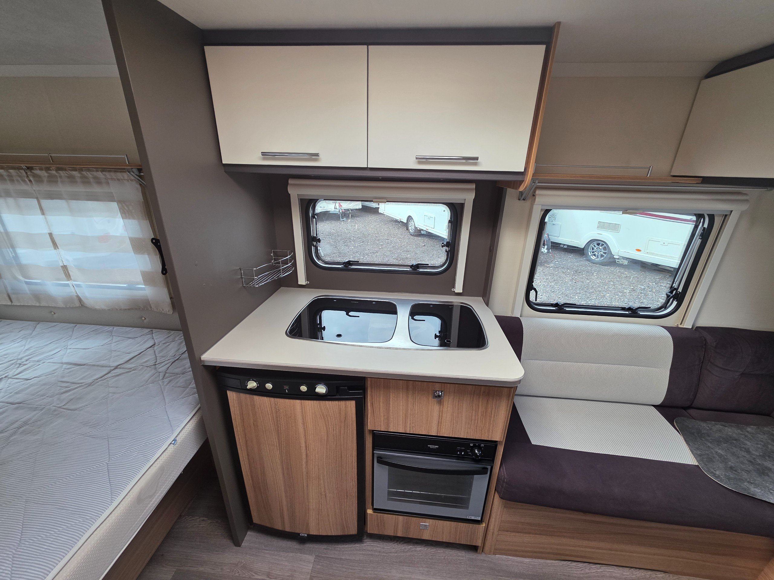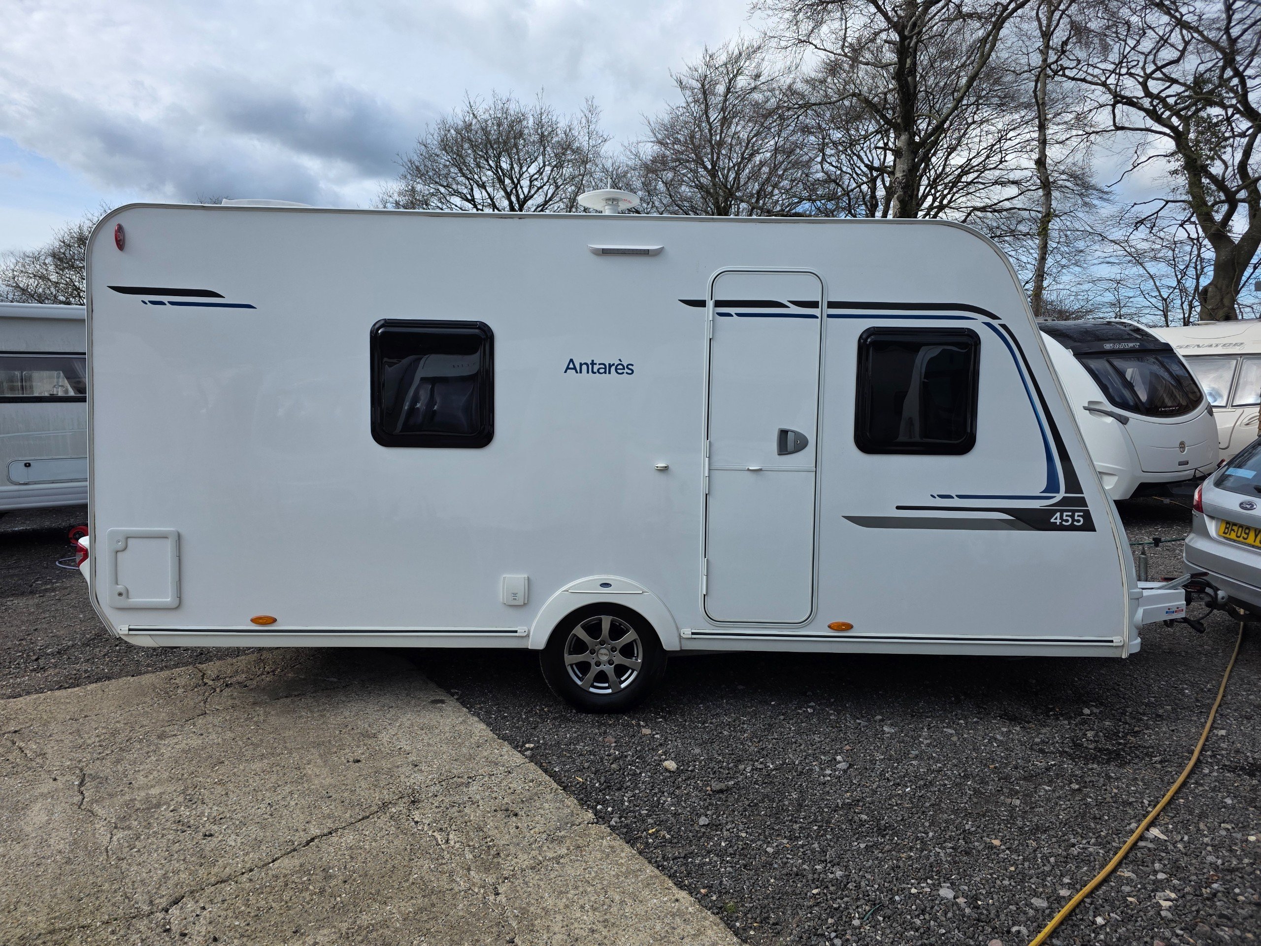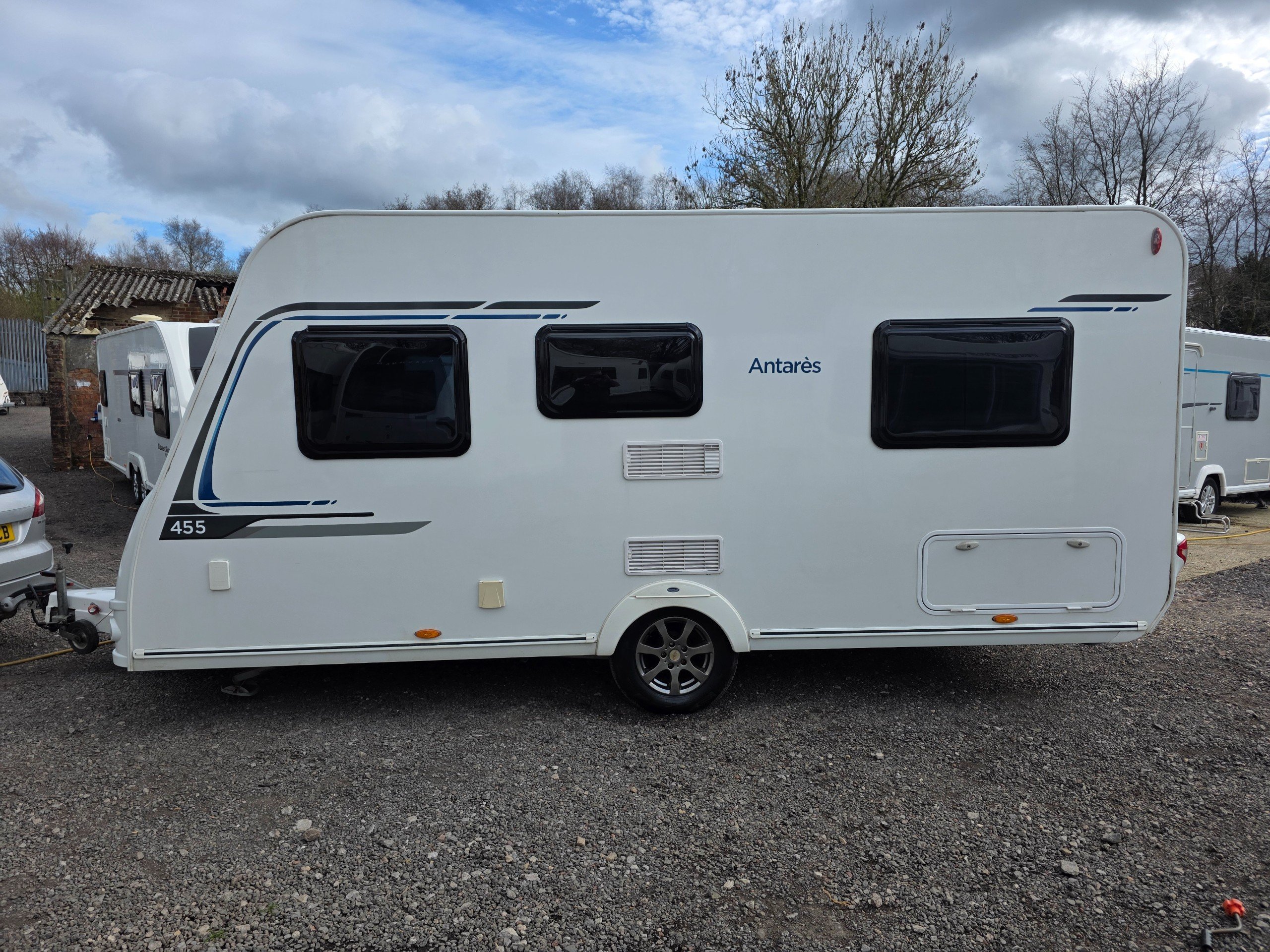 Caravelair Antarès 455, 4 berth, 2017 caravan, in lovely condition inside and out. This caravan is fully ready to take camping, it has lots of features and extras what you would expect from a high spec caravan such as this. It includes: hot and cold water, full central heating, full screens and blinds, full oven and grill, three-way fridge/freezer, 240–12 V electricity, HEKI rooflight, Alko Antisway towbar and much more.This caravan comes with a full