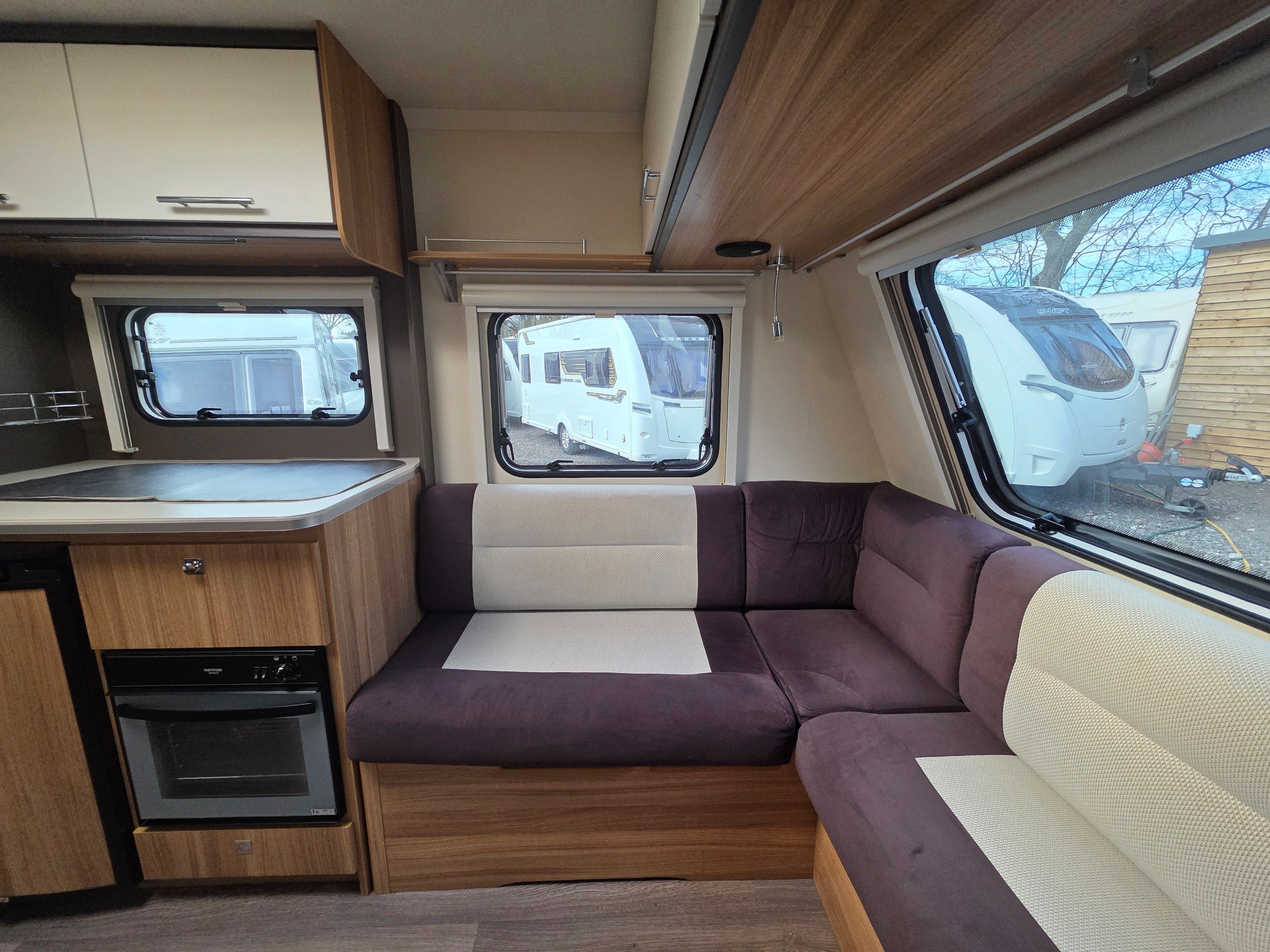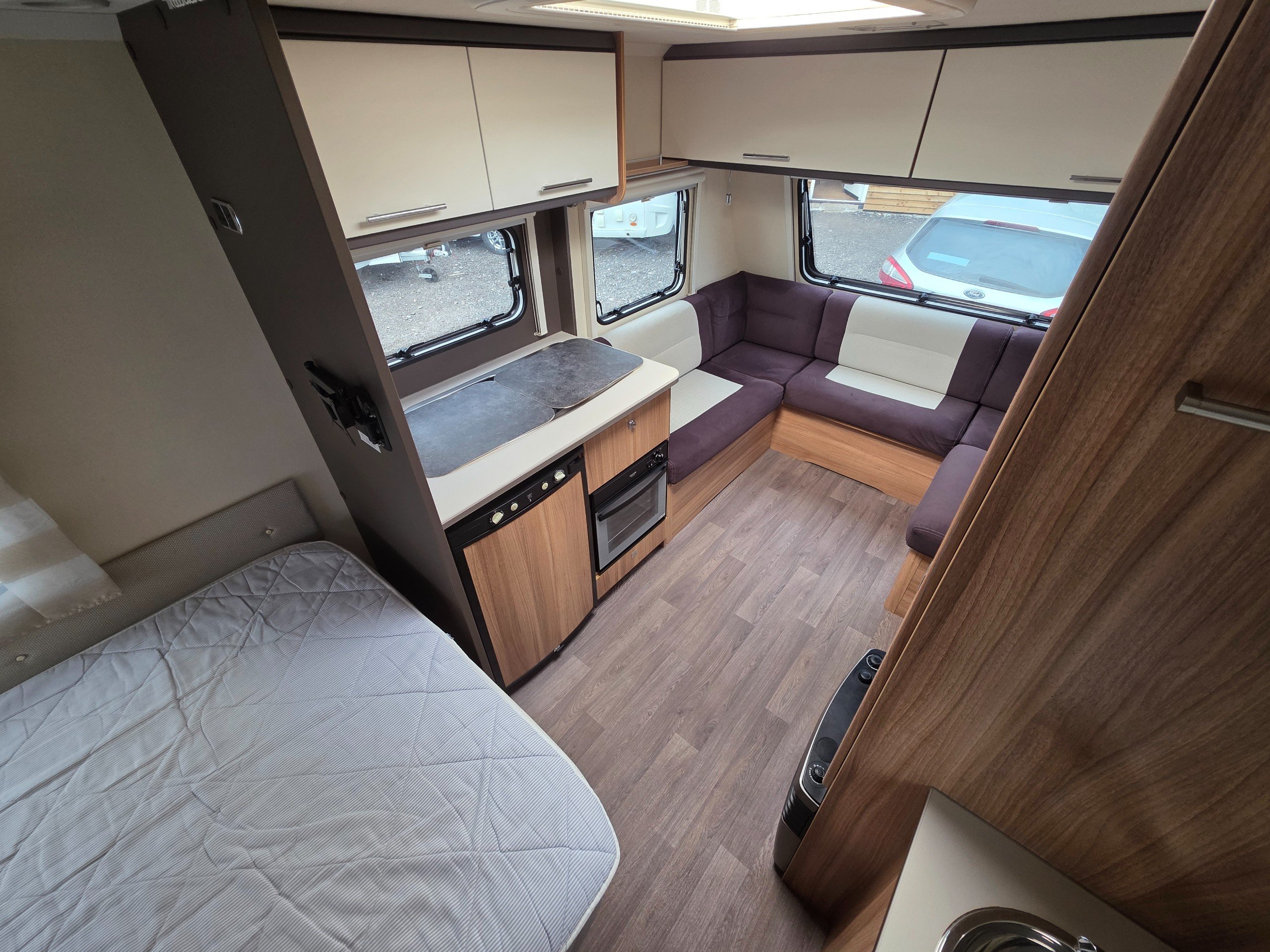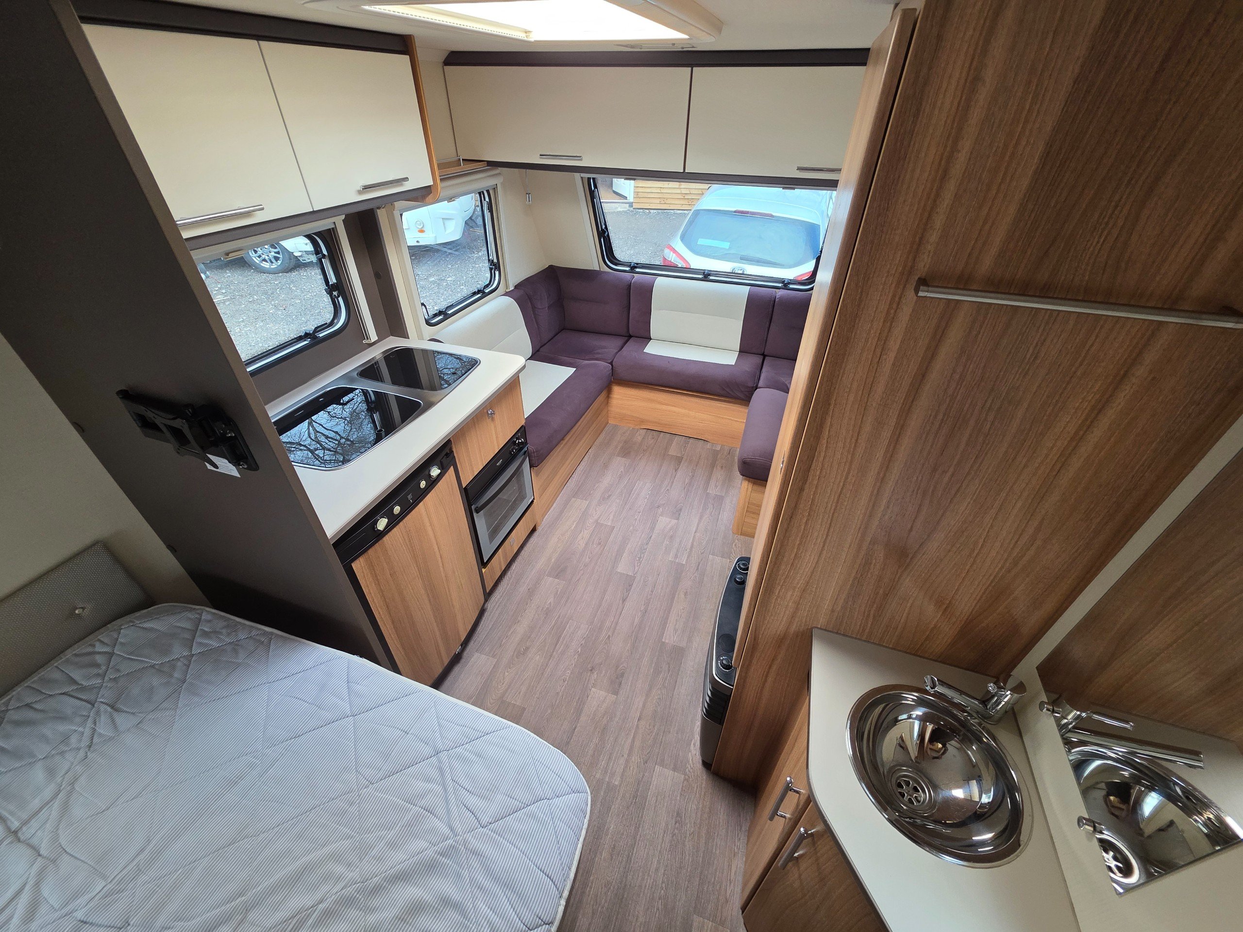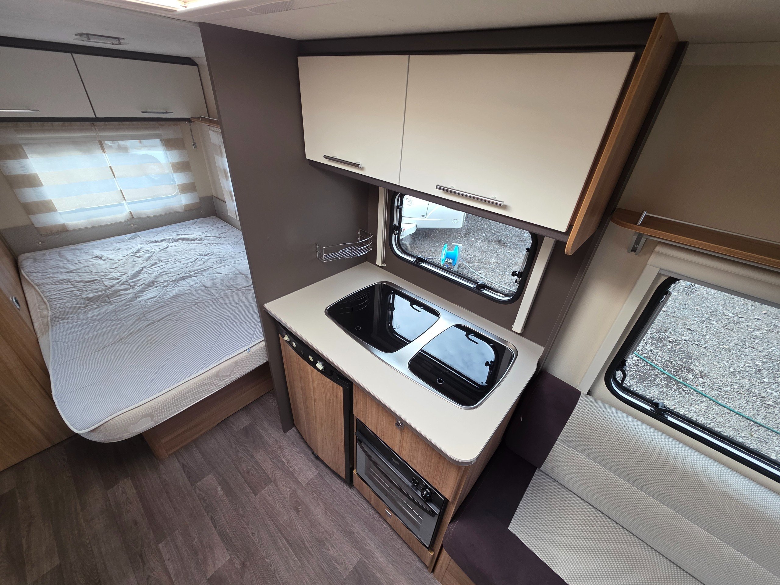 Caravelair Antarès 455, 4 berth, 2017 caravan, in lovely condition inside and out. This caravan is fully ready to take camping, it has lots of features and extras what you would expect from a high spec caravan such as this. It includes: hot and cold water, full central heating, full screens and blinds, full oven and grill, three-way fridge/freezer, 240–12 V electricity, HEKI rooflight, Alko Antisway towbar and much more.This caravan comes with a full