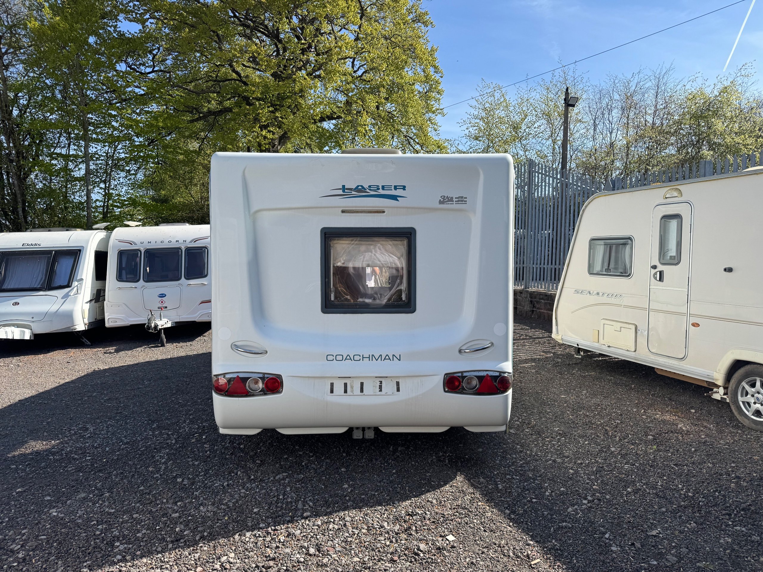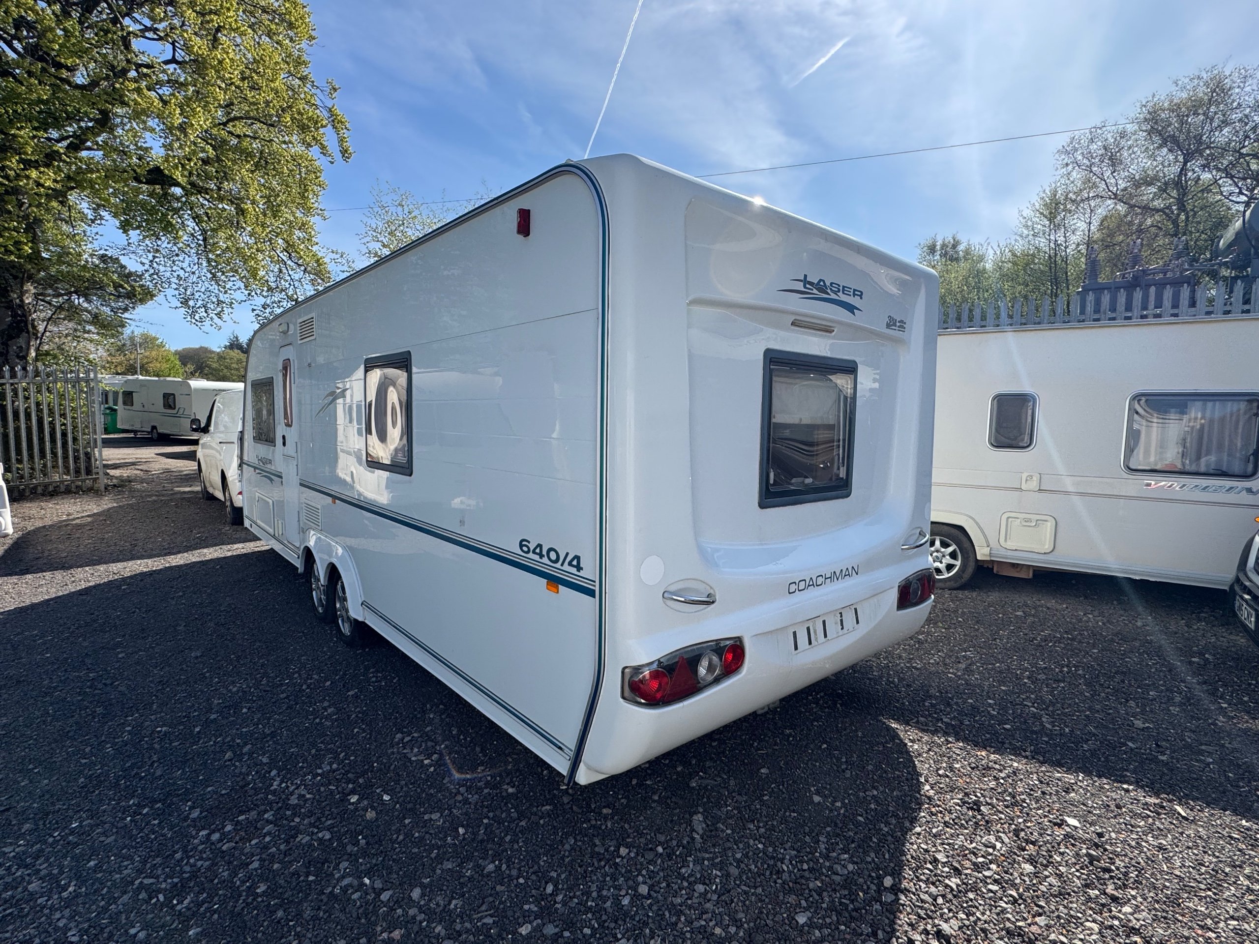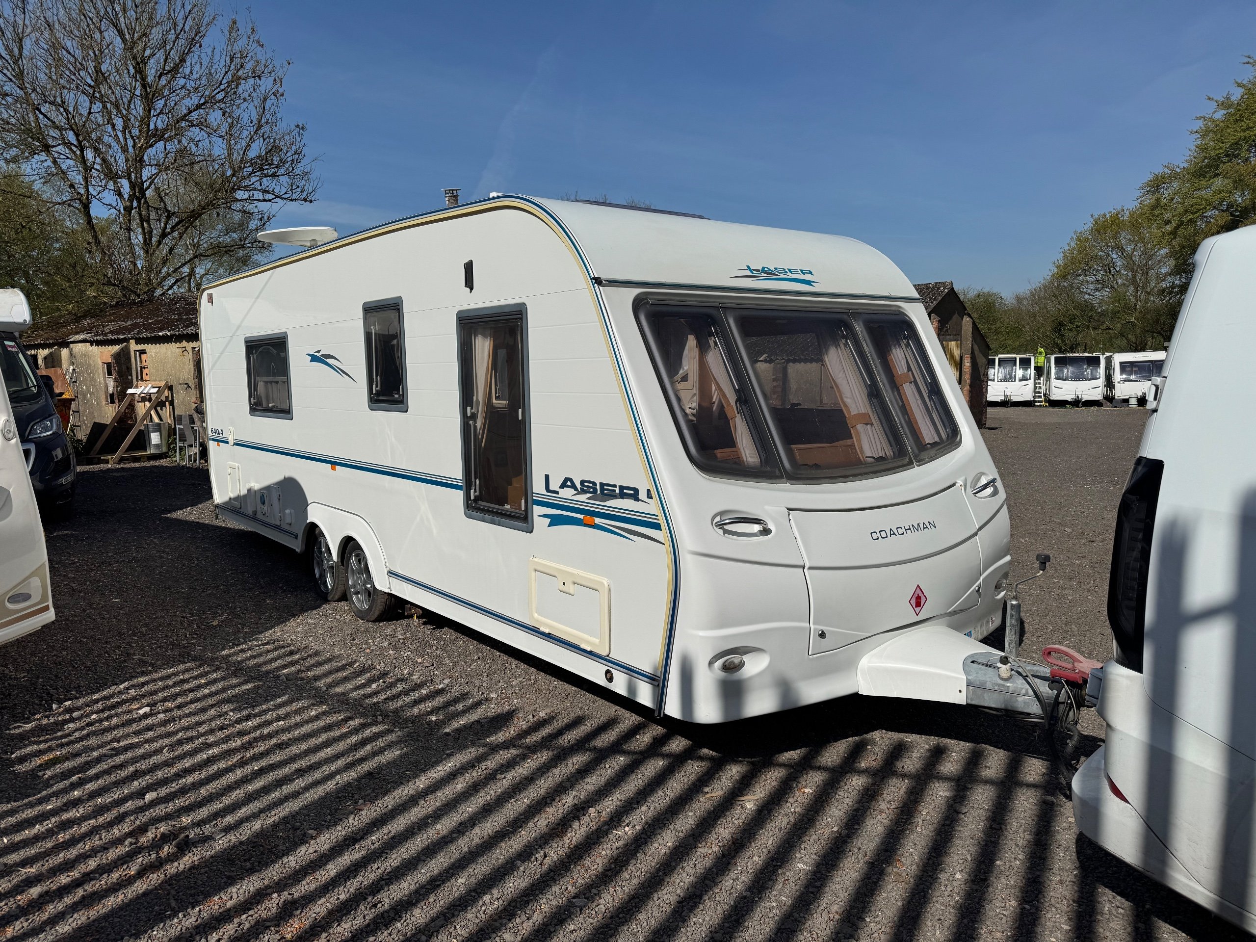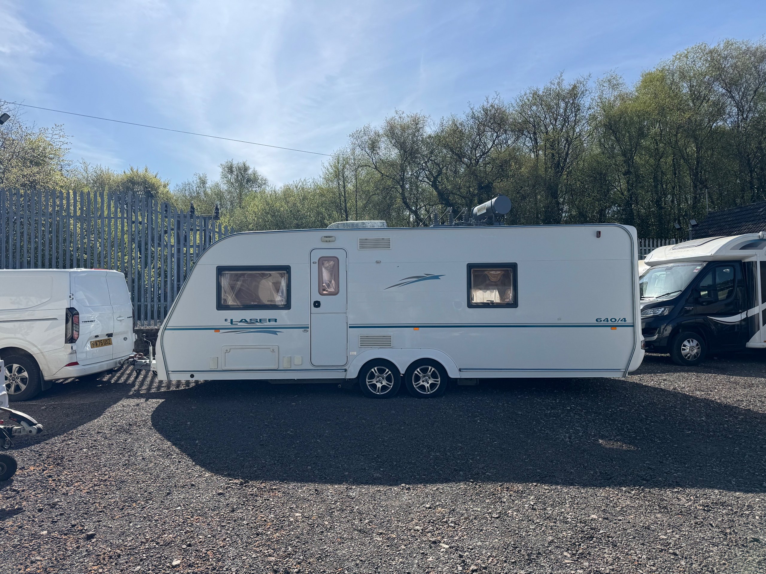 Coachman Laser 640-4 2006 4 berth caravan,in good Condition inside and out. This caravan is fully ready to take camping, it has lots of features and extras what you would expect from a high spec caravan such as this. It includes: hot and cold water, full central heating, full screens and blinds, full oven and grill, three-way fridge/freezer, 240–12 V electricity, HEKI rooflight, Alko Antisway towbar and much more.This caravan comes with a full