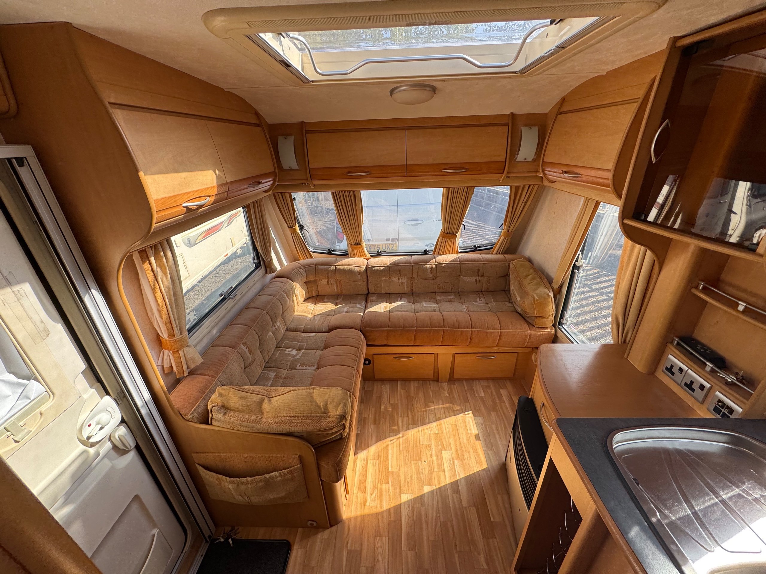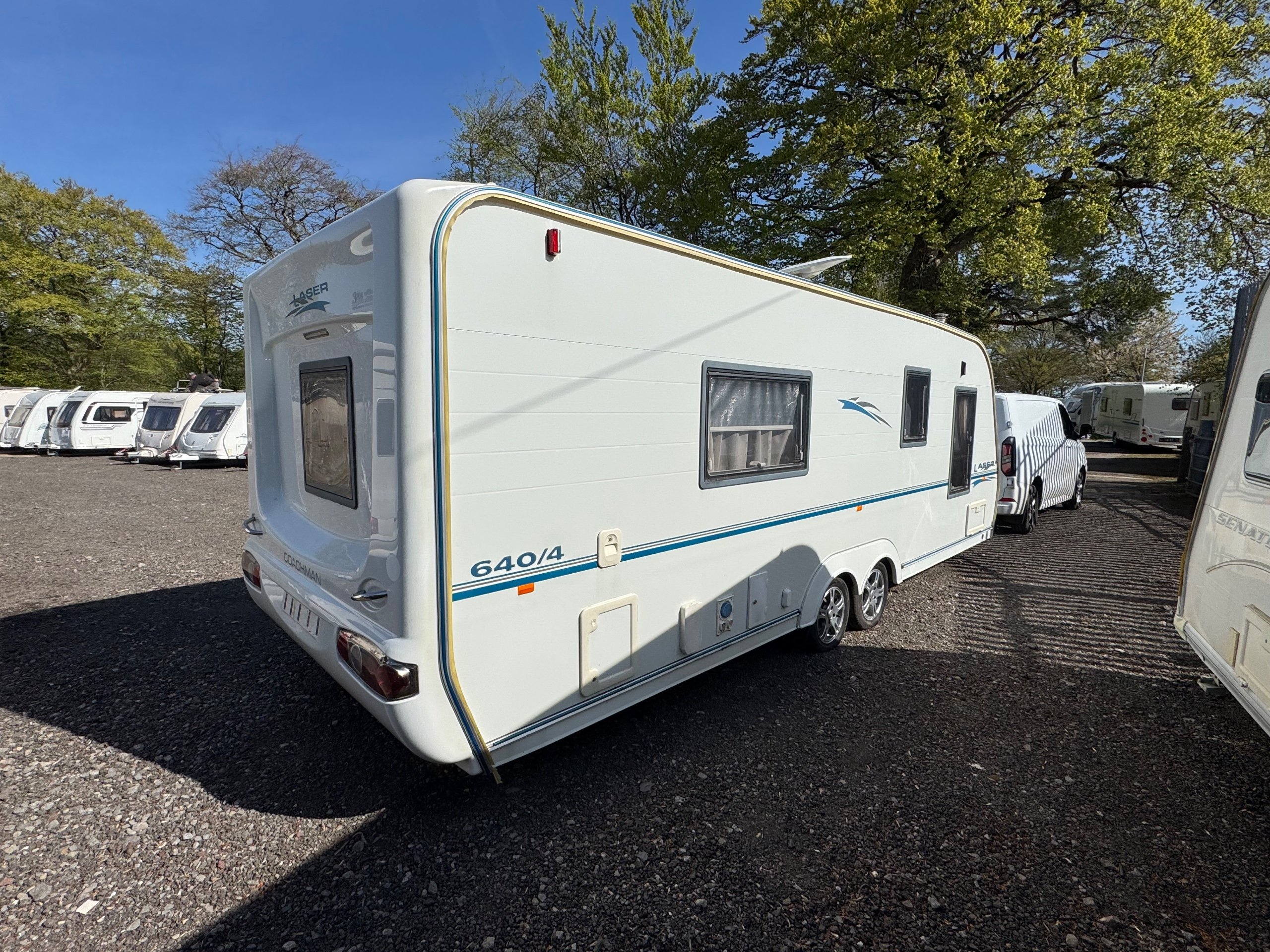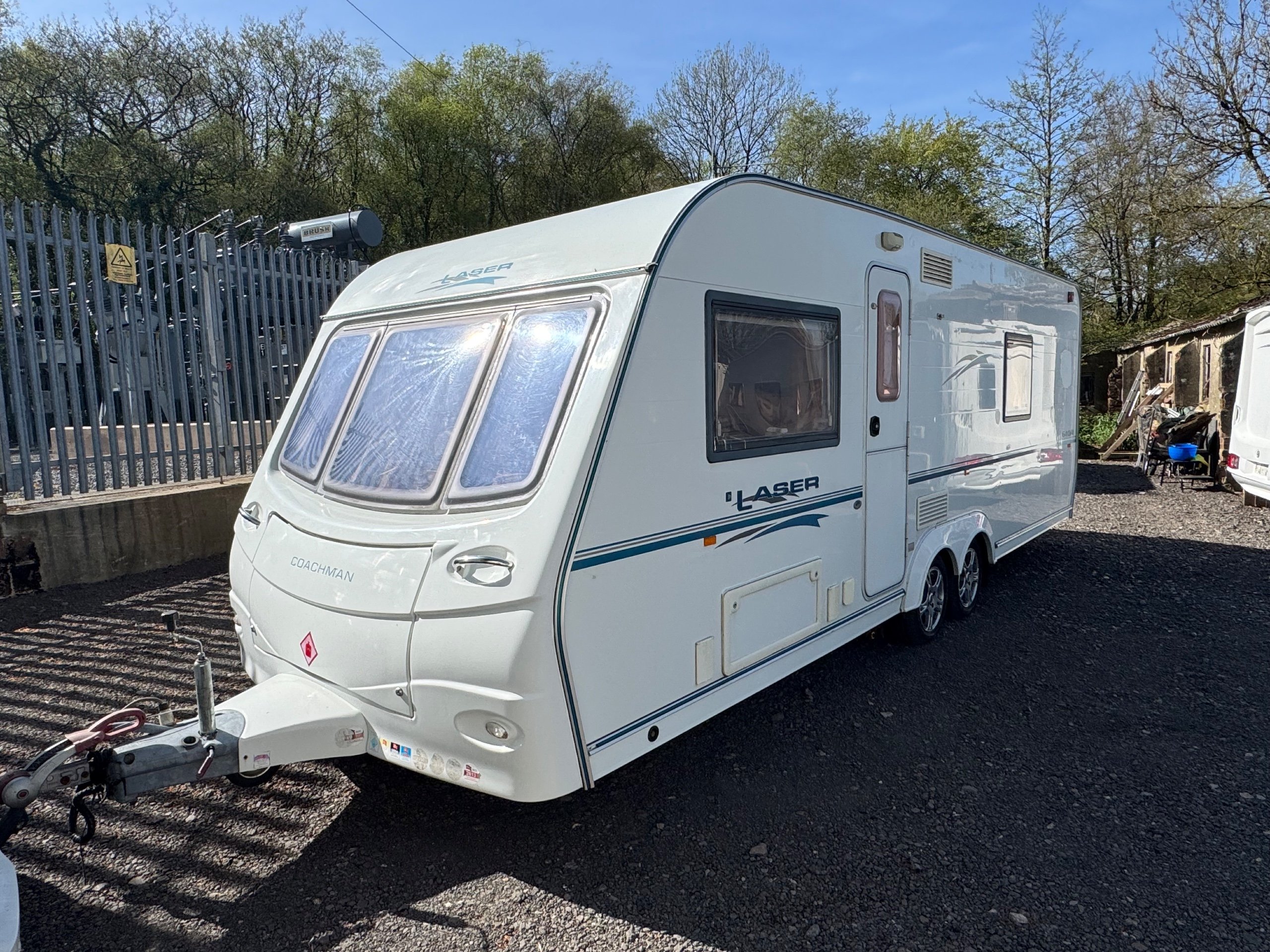 Coachman Laser 640-4 2006 4 berth caravan,in good Condition inside and out. This caravan is fully ready to take camping, it has lots of features and extras what you would expect from a high spec caravan such as this. It includes: hot and cold water, full central heating, full screens and blinds, full oven and grill, three-way fridge/freezer, 240–12 V electricity, HEKI rooflight, Alko Antisway towbar and much more.This caravan comes with a full