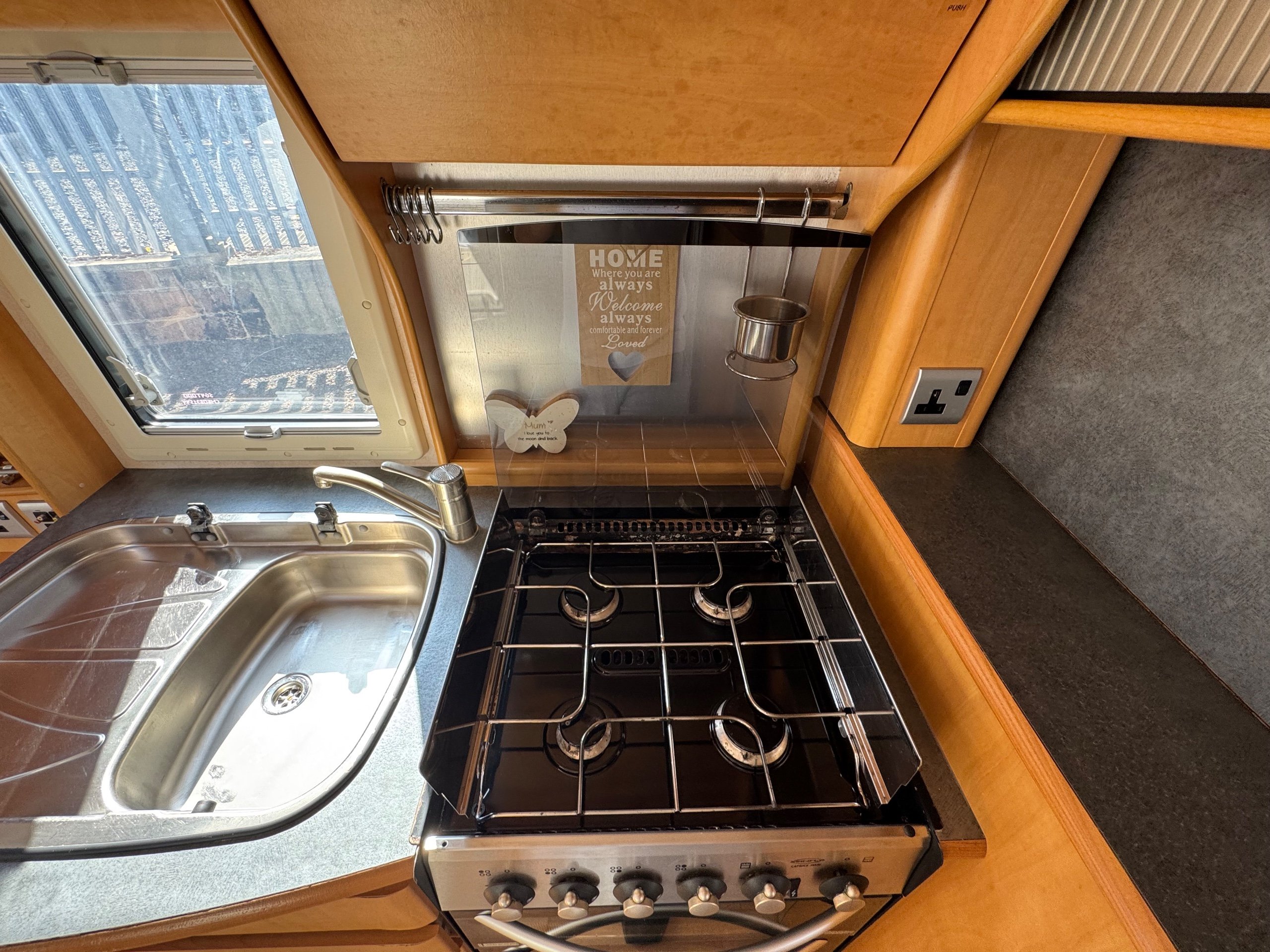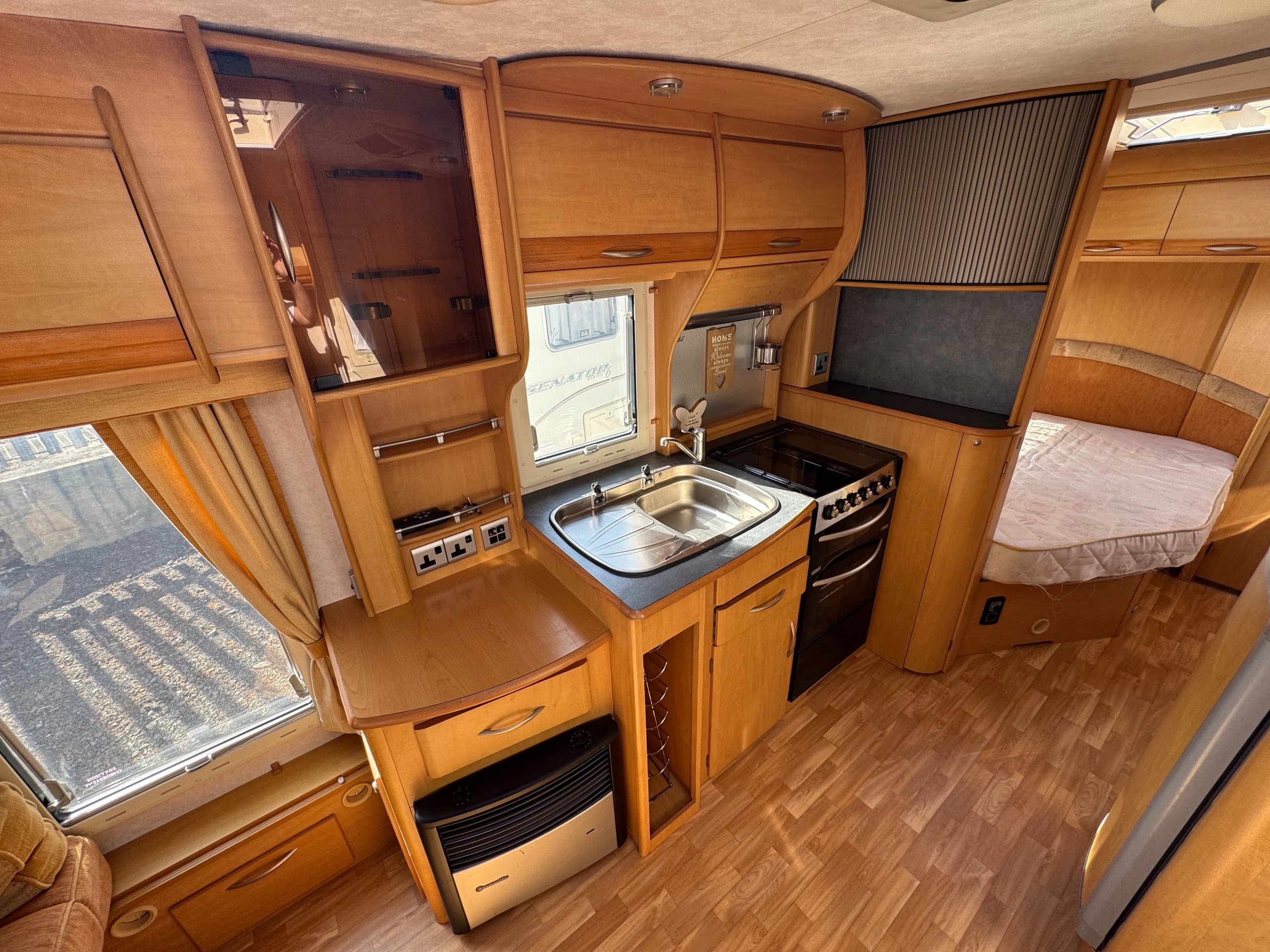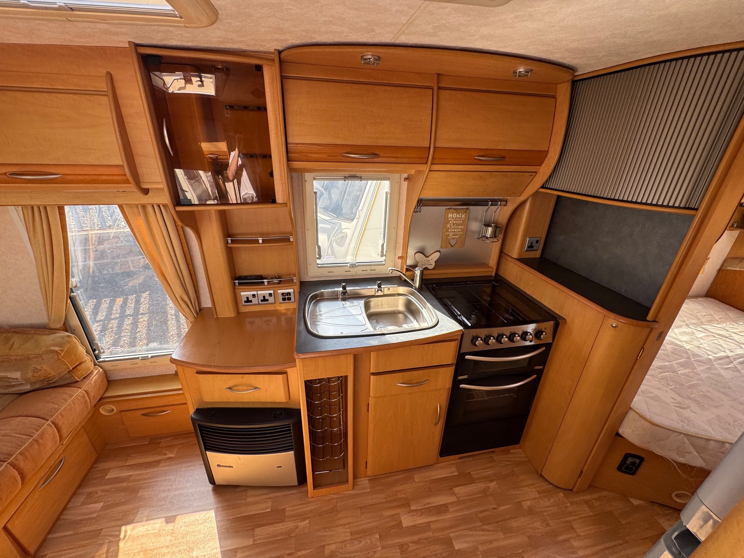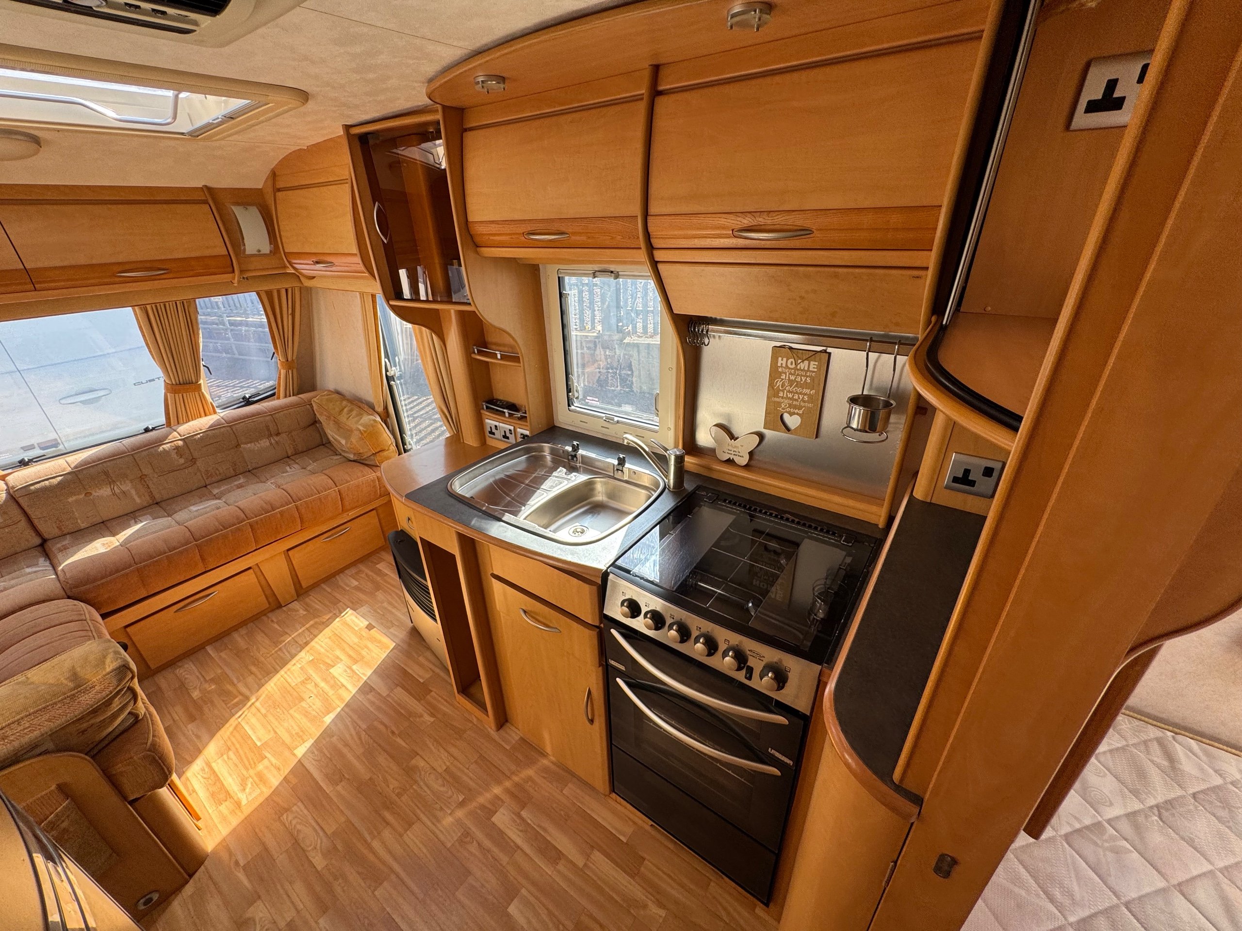 Coachman Laser 640-4 2006 4 berth caravan,in good Condition inside and out. This caravan is fully ready to take camping, it has lots of features and extras what you would expect from a high spec caravan such as this. It includes: hot and cold water, full central heating, full screens and blinds, full oven and grill, three-way fridge/freezer, 240–12 V electricity, HEKI rooflight, Alko Antisway towbar and much more.This caravan comes with a full