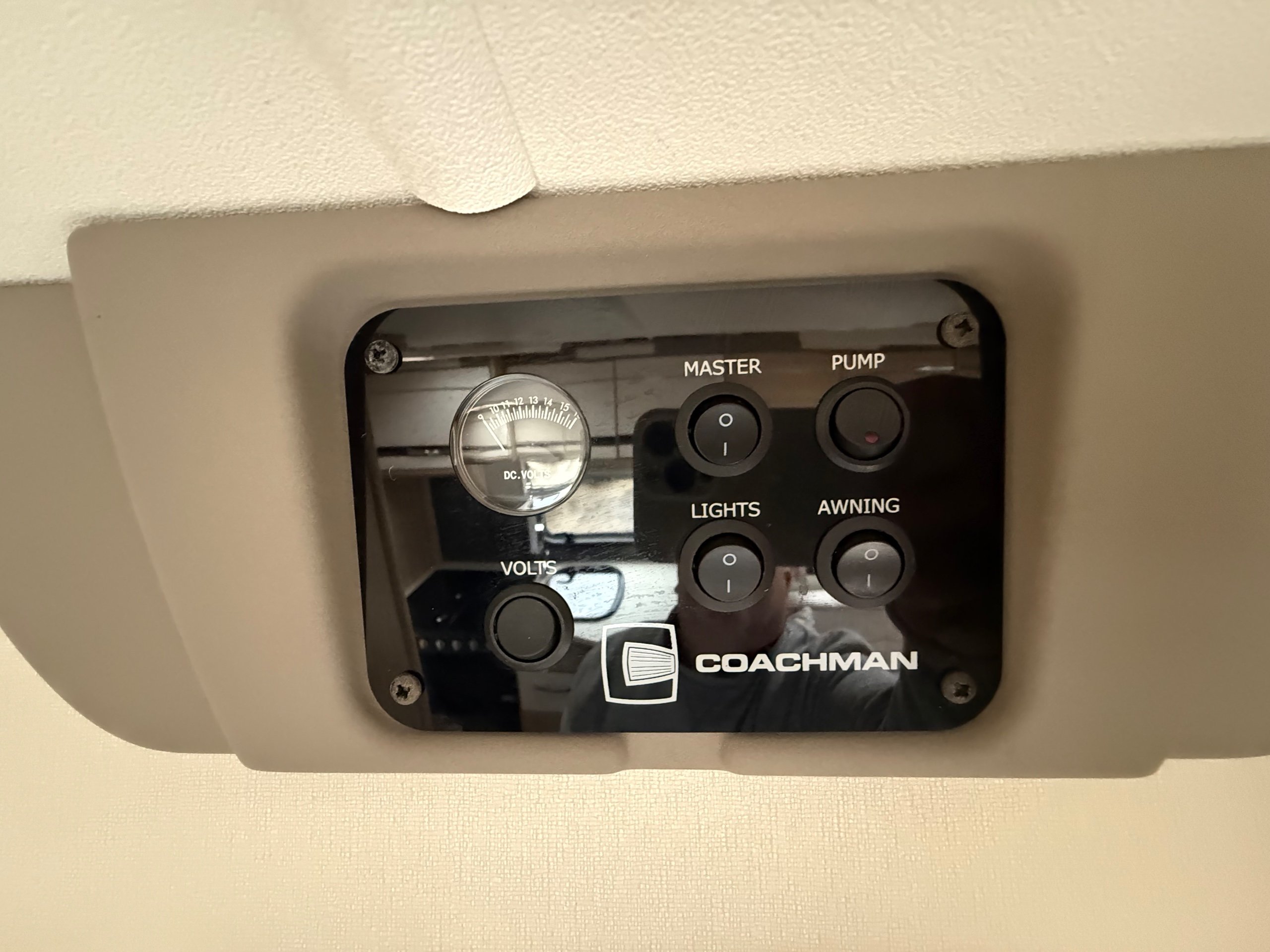 starter pack which includes: leg winder, step, gas bottle, power cable, water pump and waste/fresh water containers.