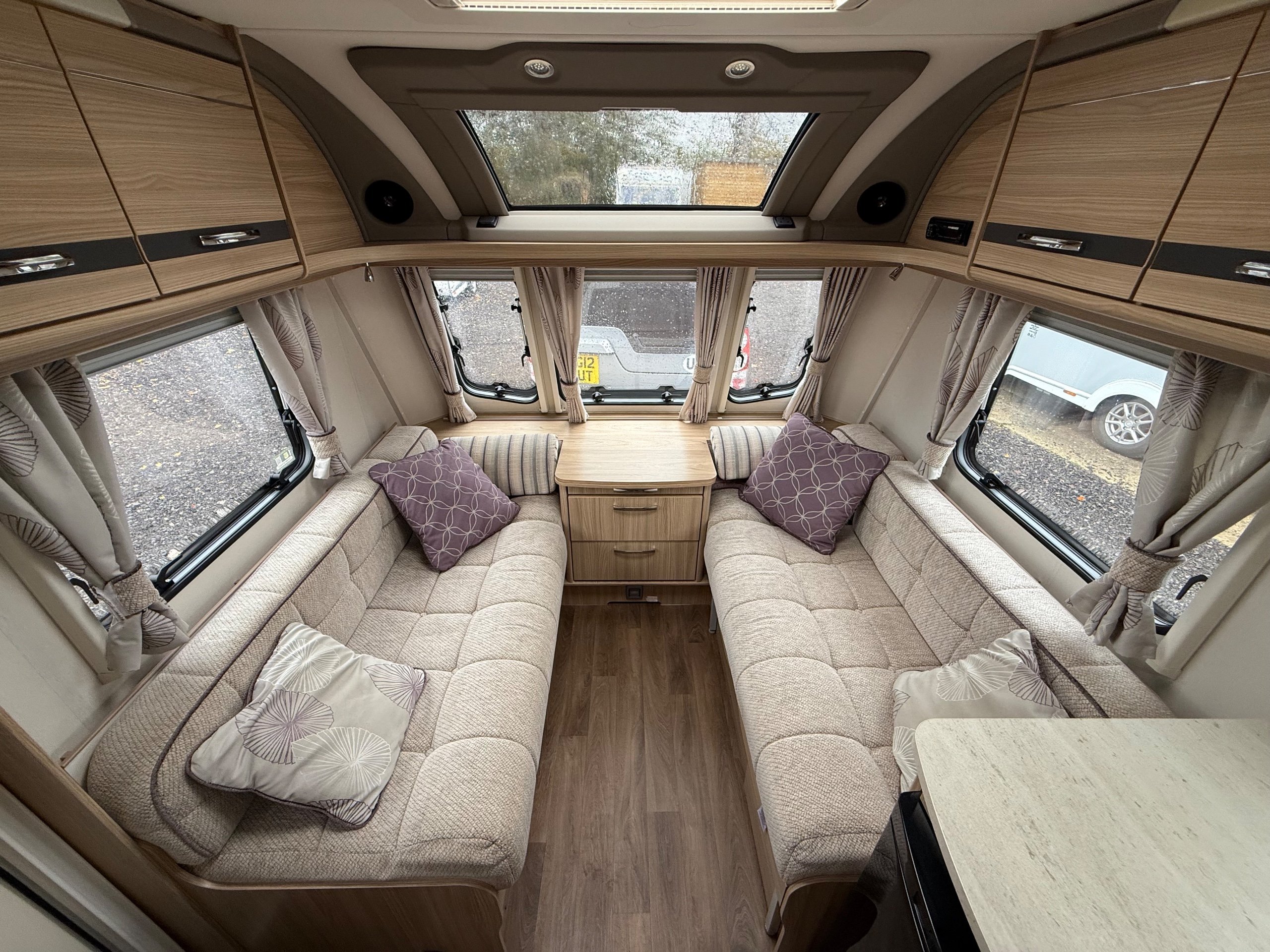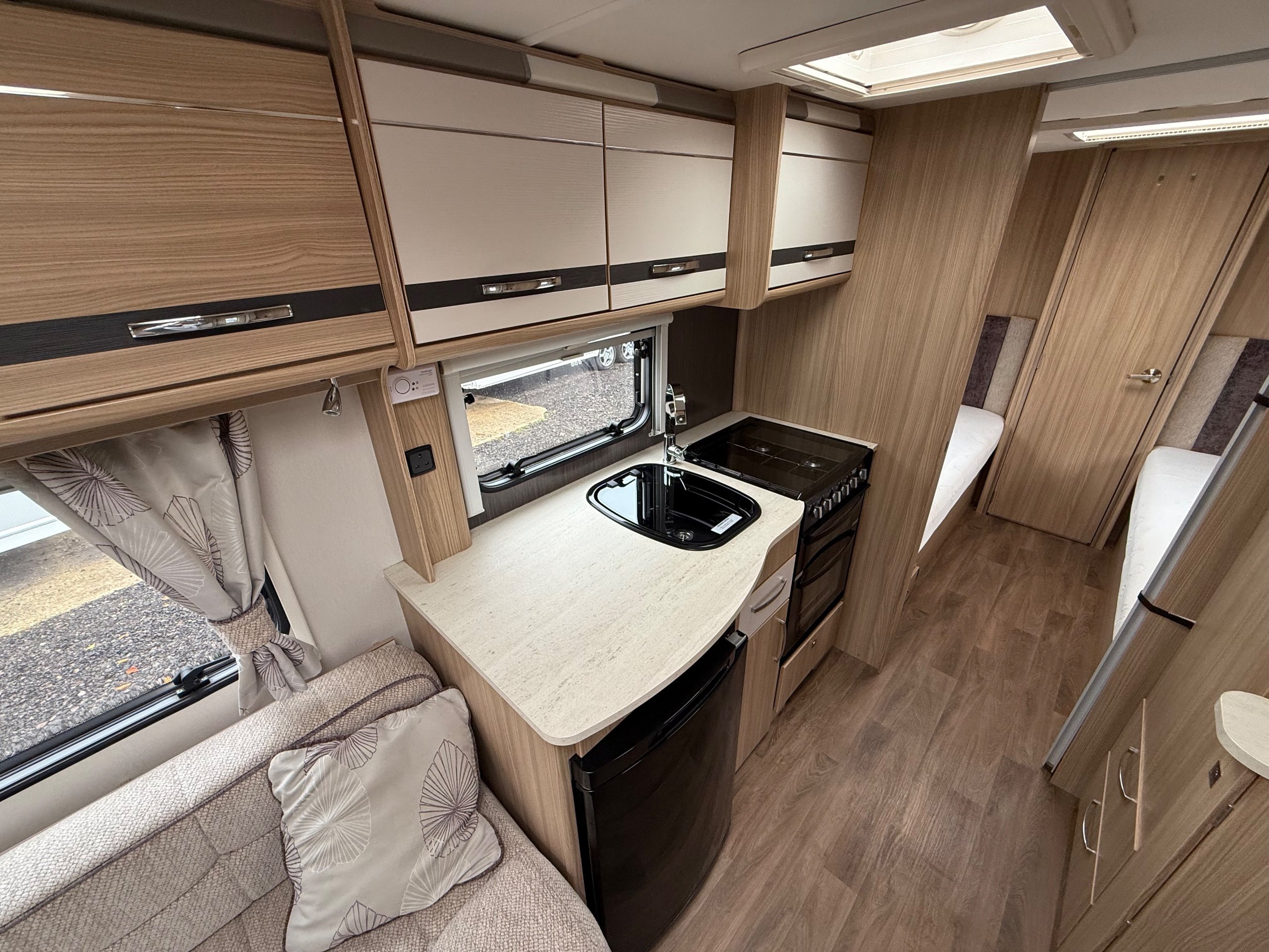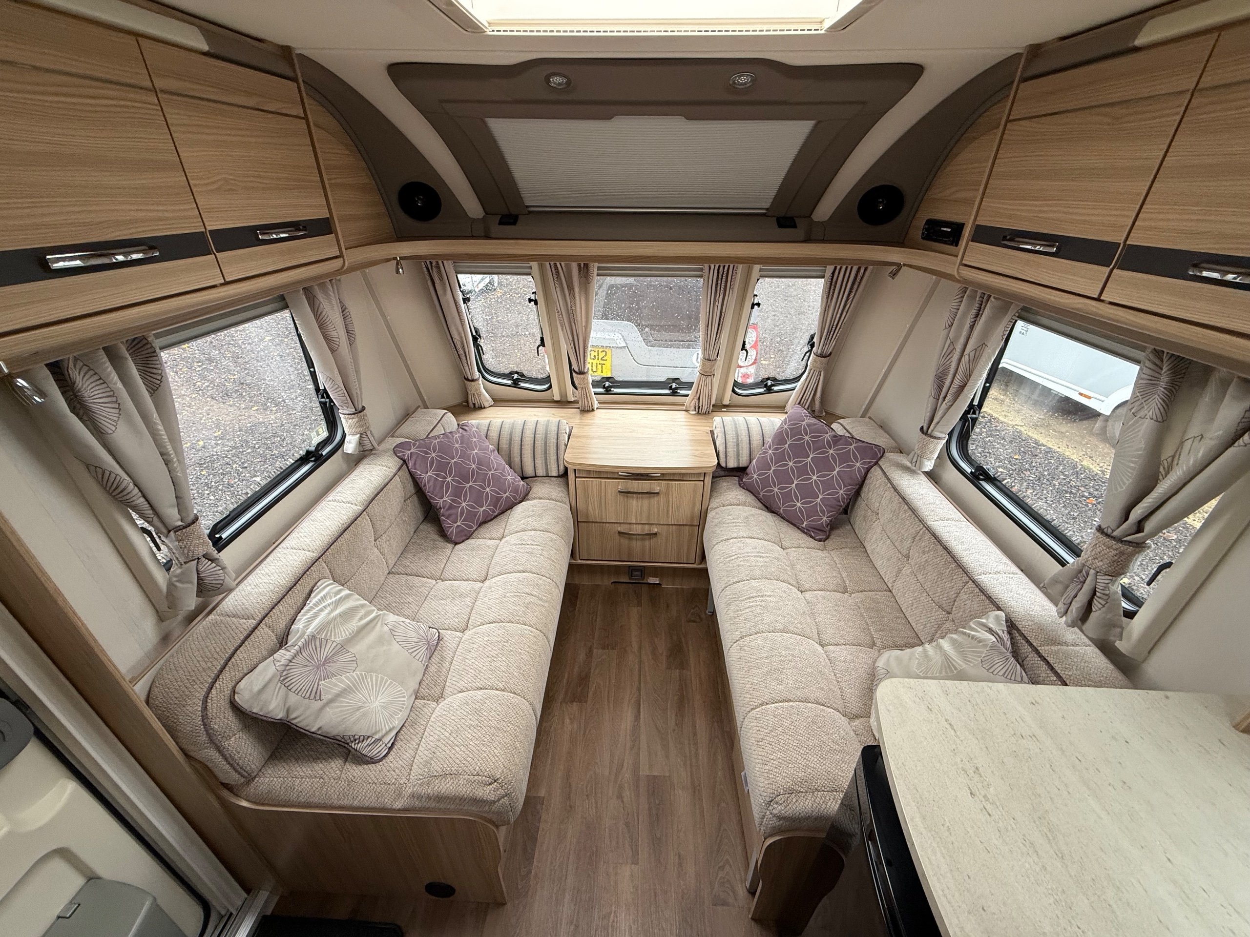 Coachman Pastiche 565, 4 berth caravan, 2016, in good Condition inside and out. This caravan is fully ready to take camping, it has lots of features and extras what you would expect from a high spec caravan such as this. It includes: hot and cold water, full central heating, full screens and blinds, full oven and grill, three-way fridge/freezer, 240–12 V electricity, HEKI rooflight, Alko Antisway towbar and much more.This caravan comes with a full