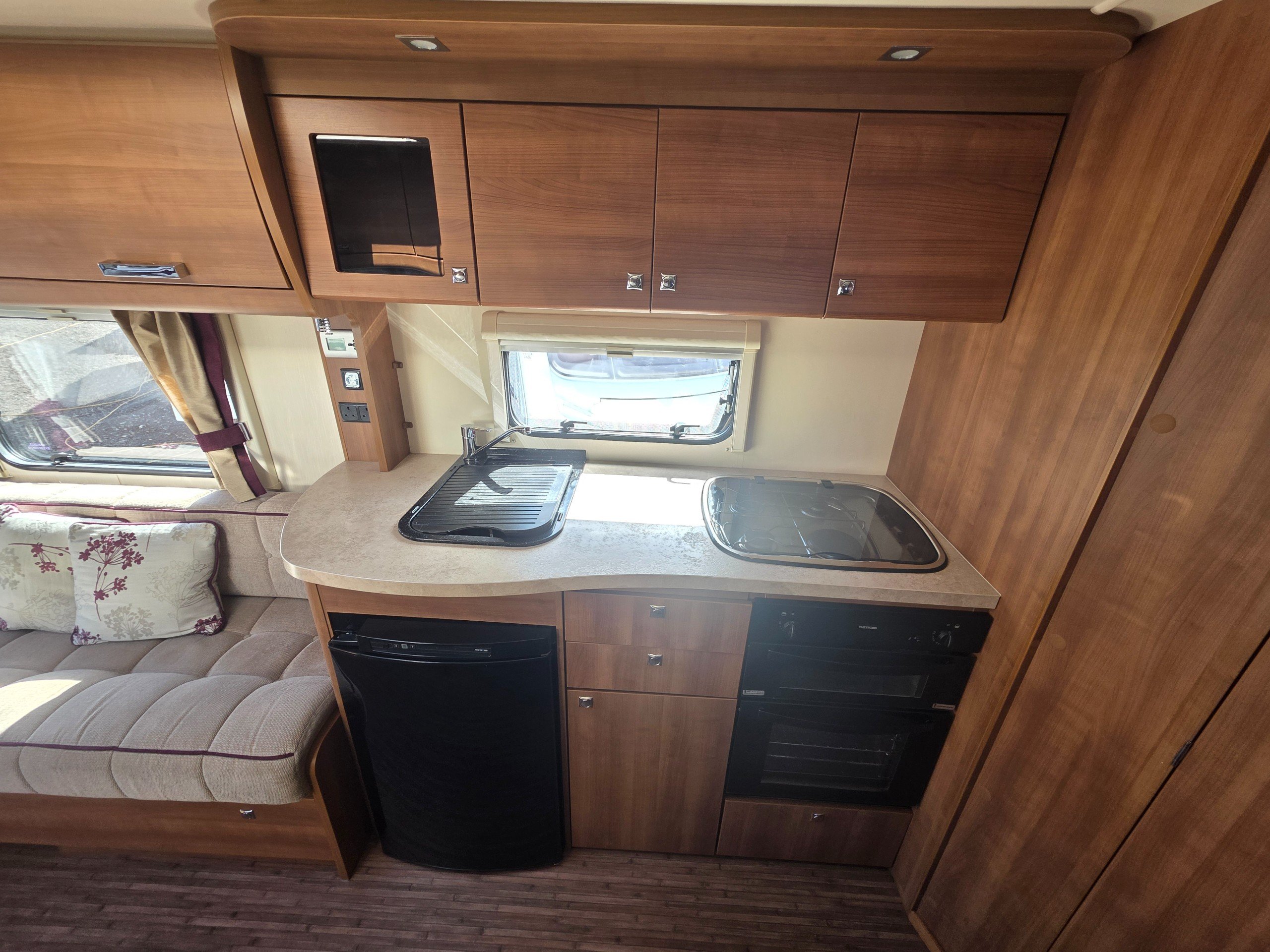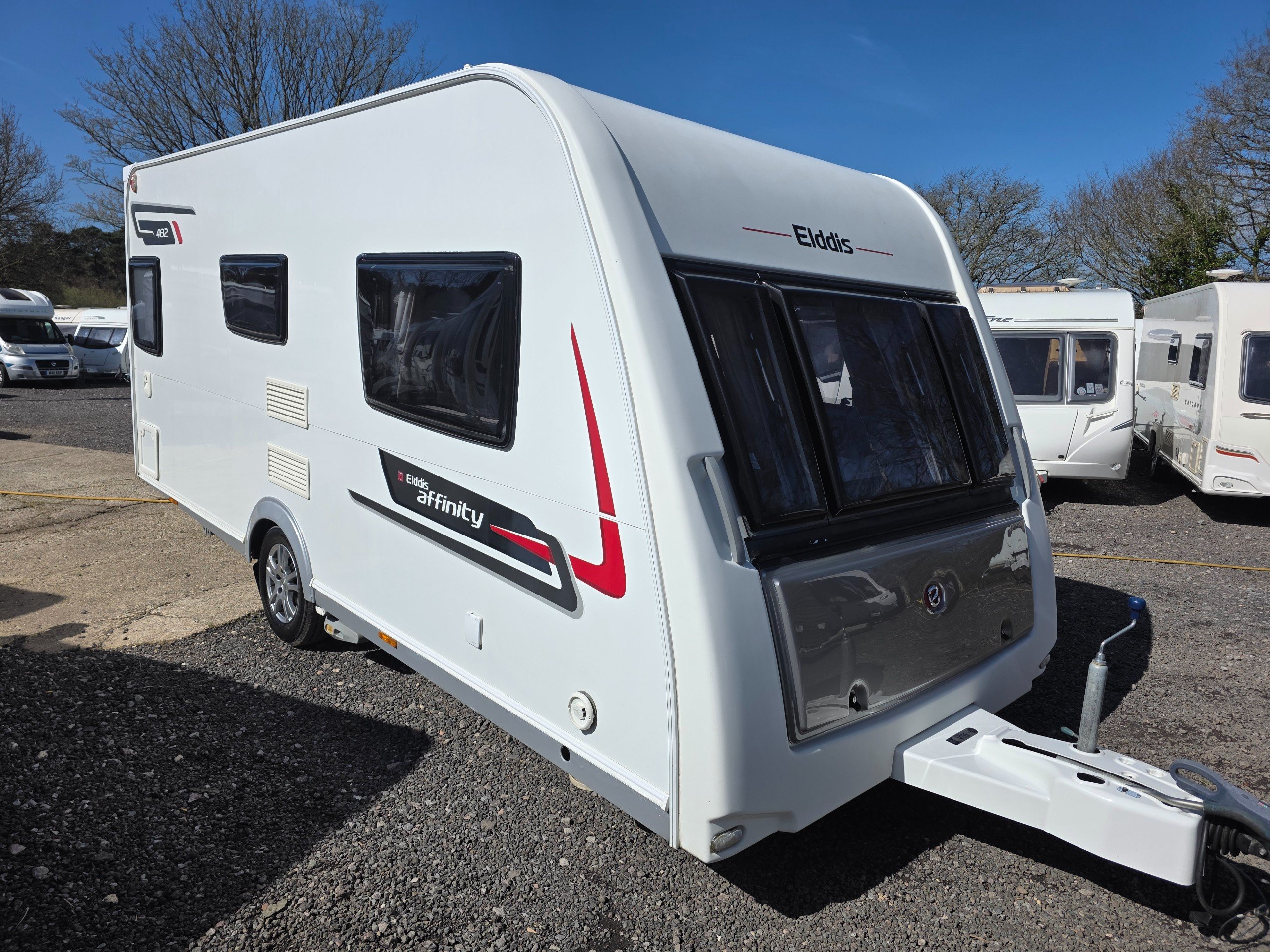 Elddis Affinity 482, 2 berth 2013 caravan, in good Condition inside and out. This caravan is fully ready to take camping, it has lots of features and extras what you would expect from a high spec caravan such as this. It includes: hot and cold water, full central heating, full screens and blinds, full oven and grill, three-way fridge/freezer, 240–12 V electricity, HEKI rooflight, Alko Antisway towbar and much more.This caravan comes with a full