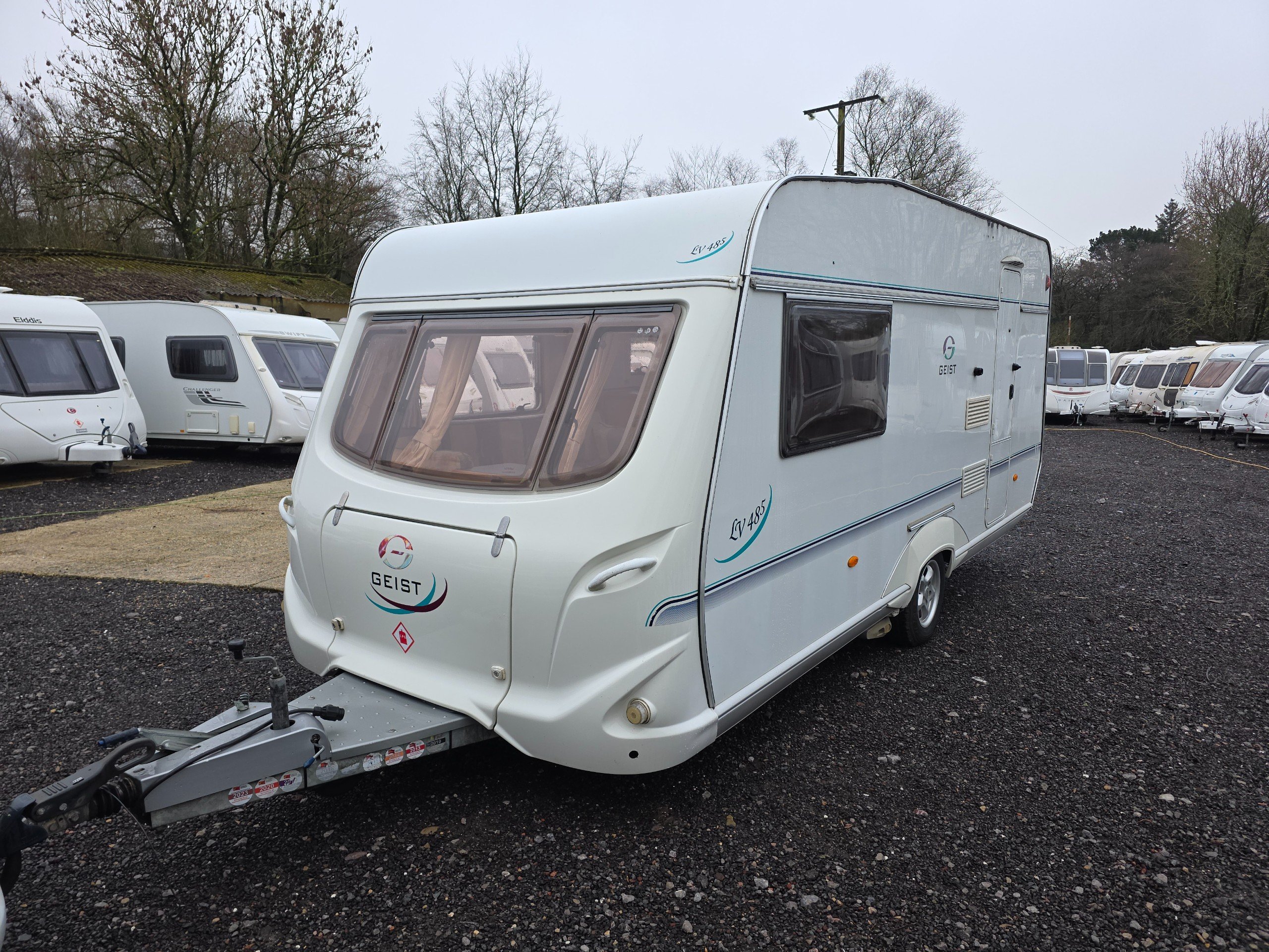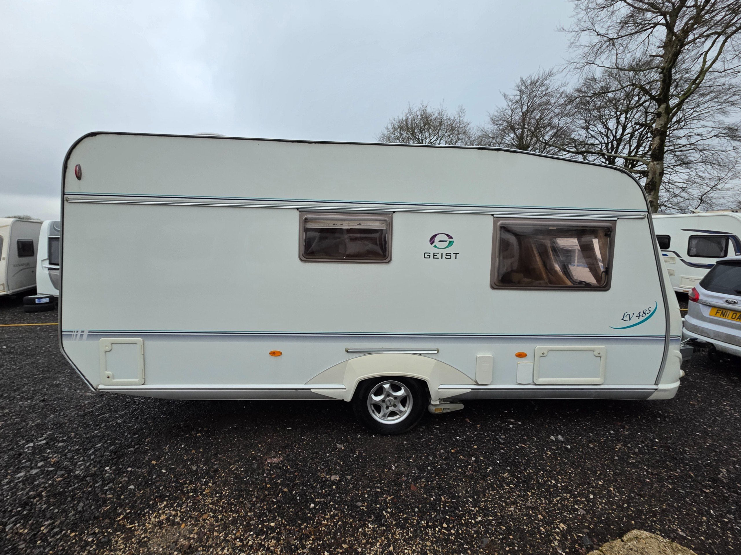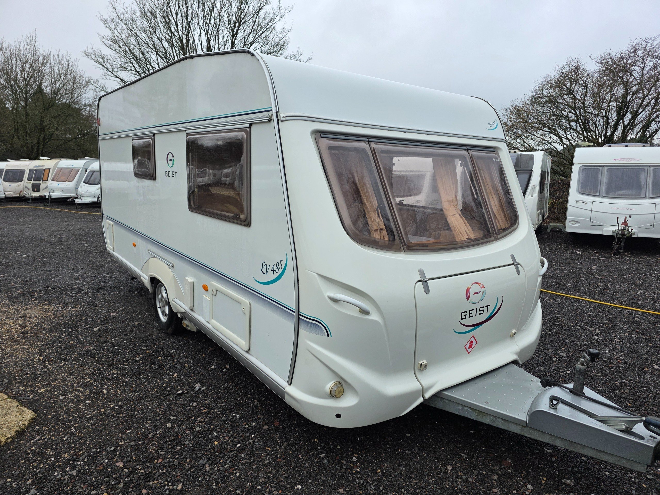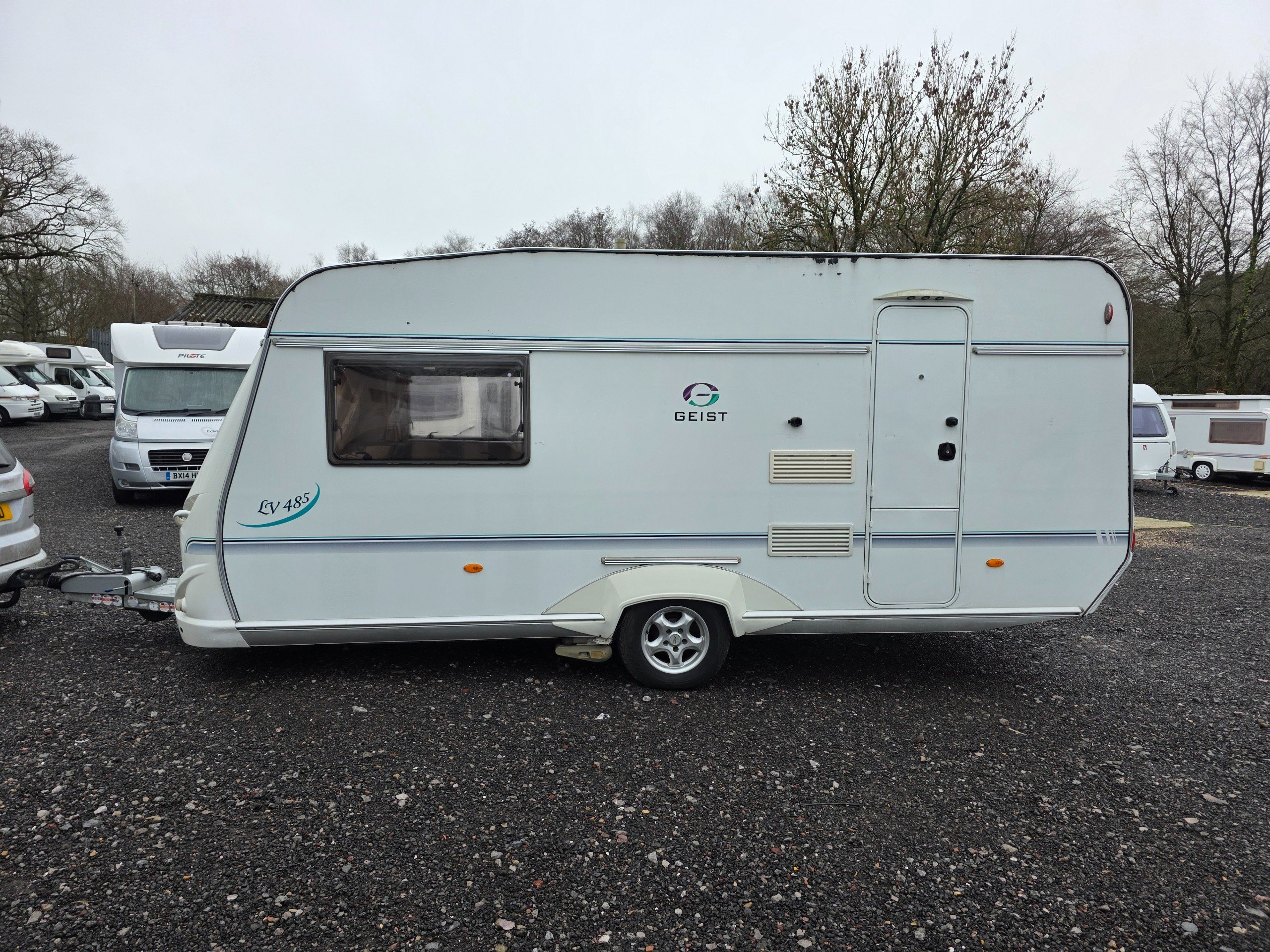 Geist LV485, 2 berth 2005 caravan, in good Condition inside and out. This caravan is fully ready to take camping, it has lots of features and extras what you would expect from a high spec caravan such as this. It includes: hot and cold water, full central heating, full screens and blinds, full oven and grill, three-way fridge/freezer, 240–12 V electricity, HEKI rooflight, Alko Antisway towbar and much more.This caravan comes with a full