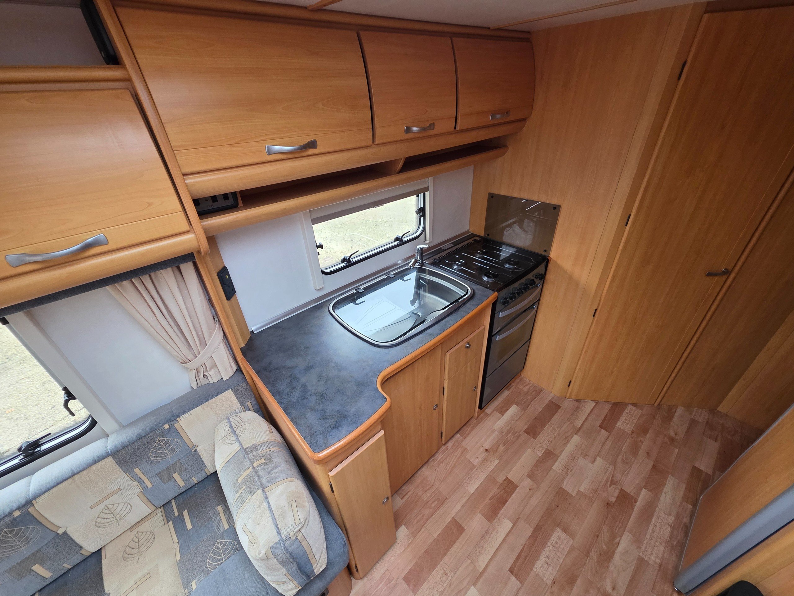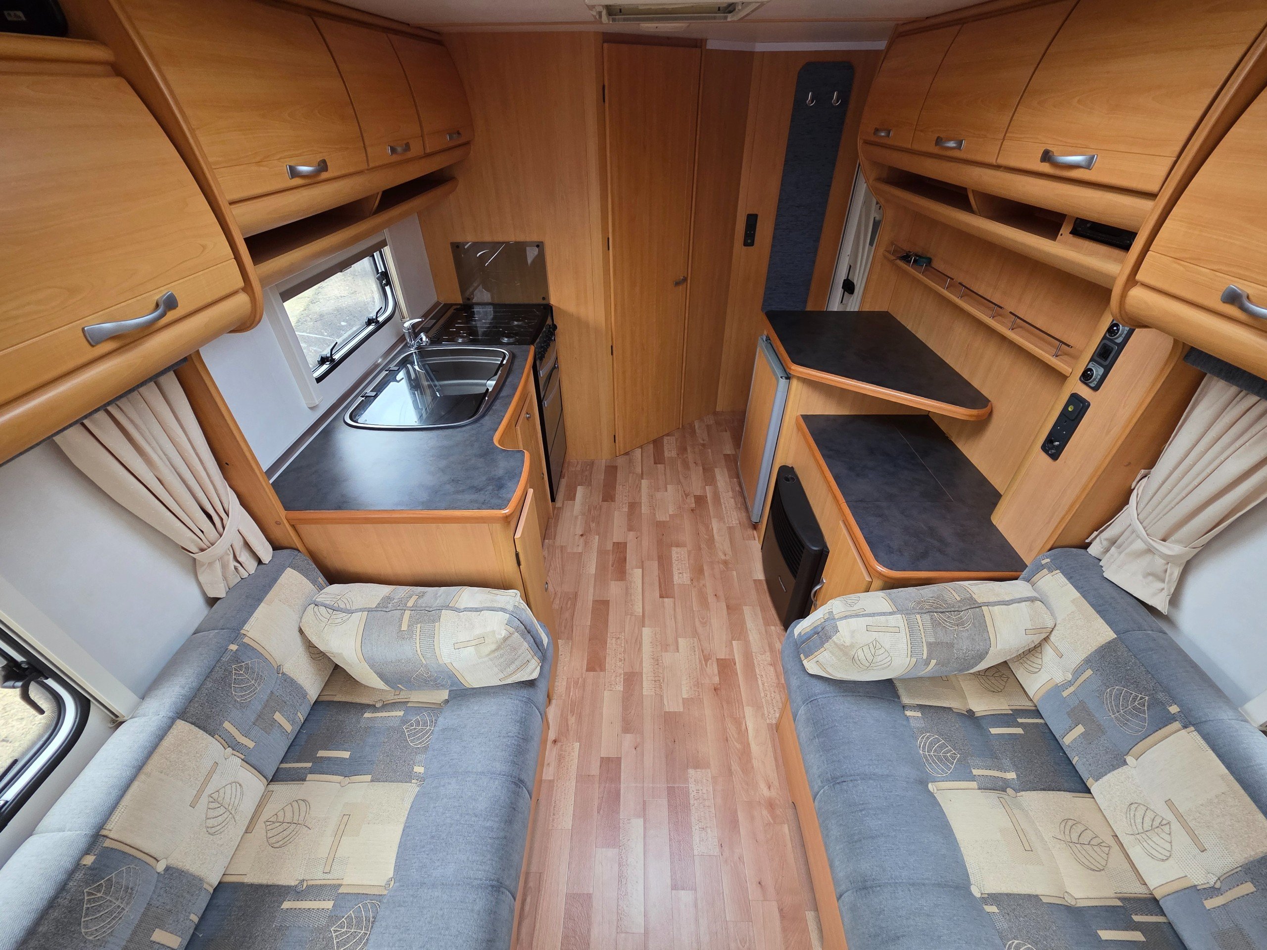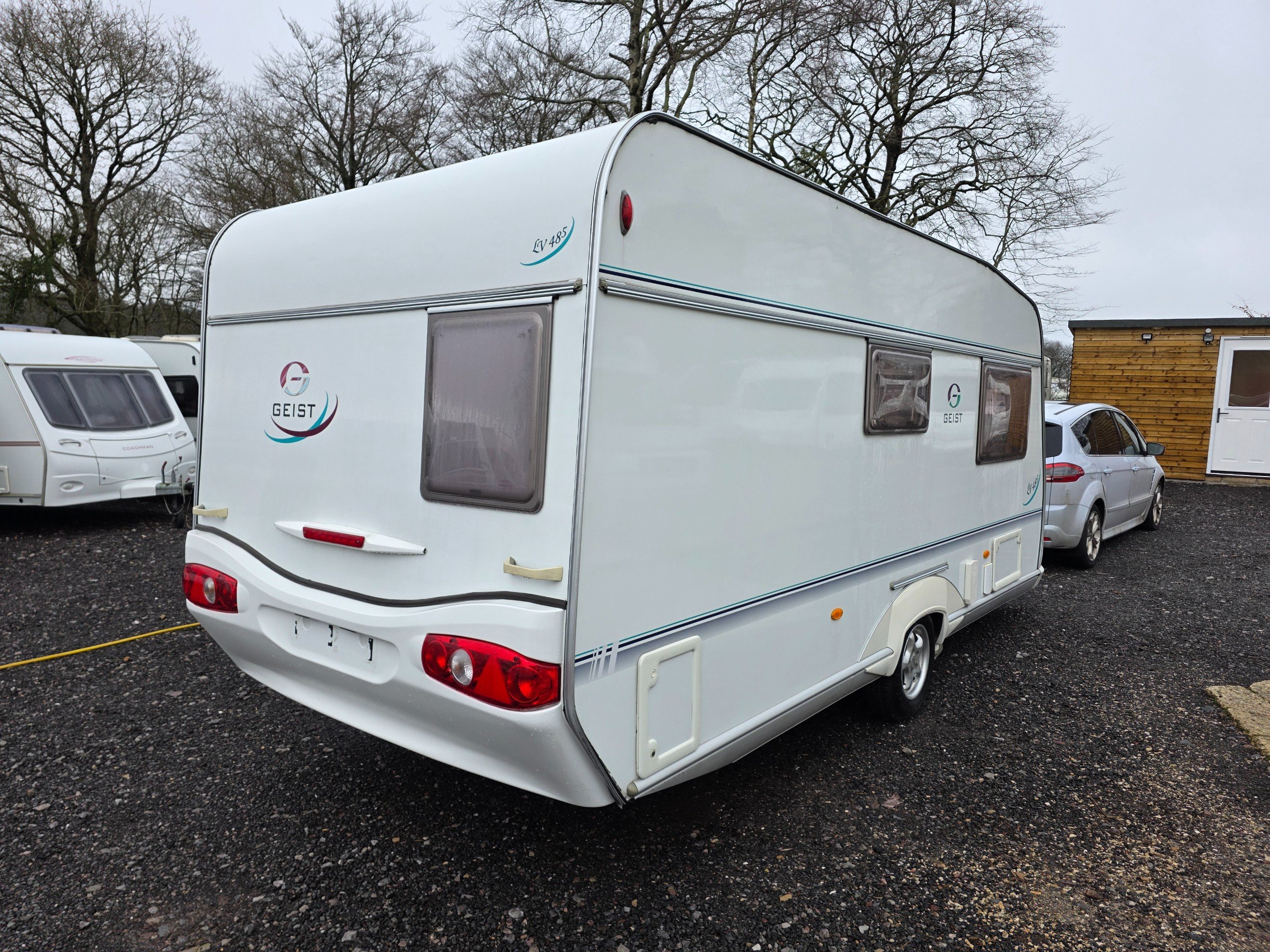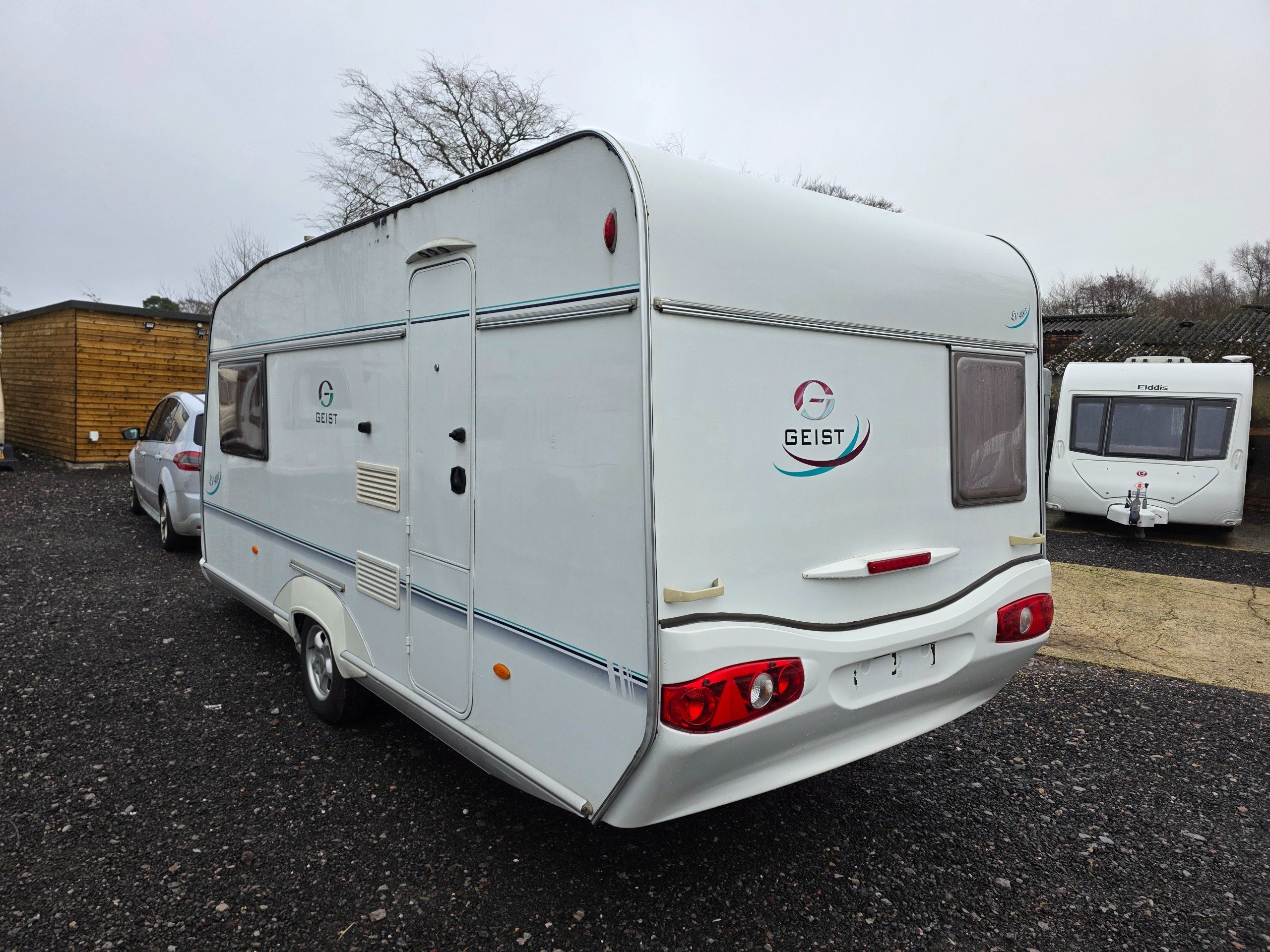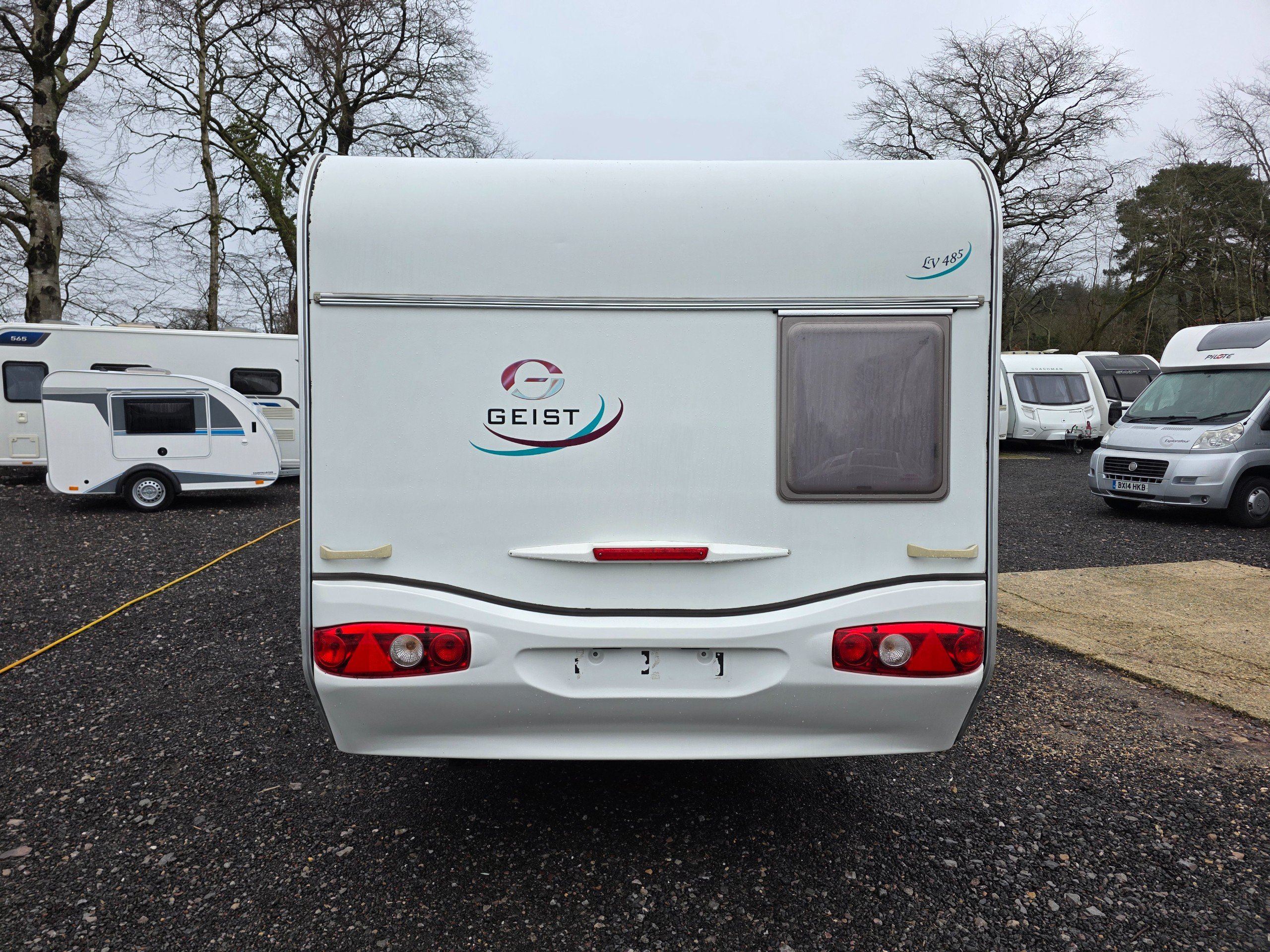 Geist LV485, 2 berth 2005 caravan, in good Condition inside and out. This caravan is fully ready to take camping, it has lots of features and extras what you would expect from a high spec caravan such as this. It includes: hot and cold water, full central heating, full screens and blinds, full oven and grill, three-way fridge/freezer, 240–12 V electricity, HEKI rooflight, Alko Antisway towbar and much more.This caravan comes with a full