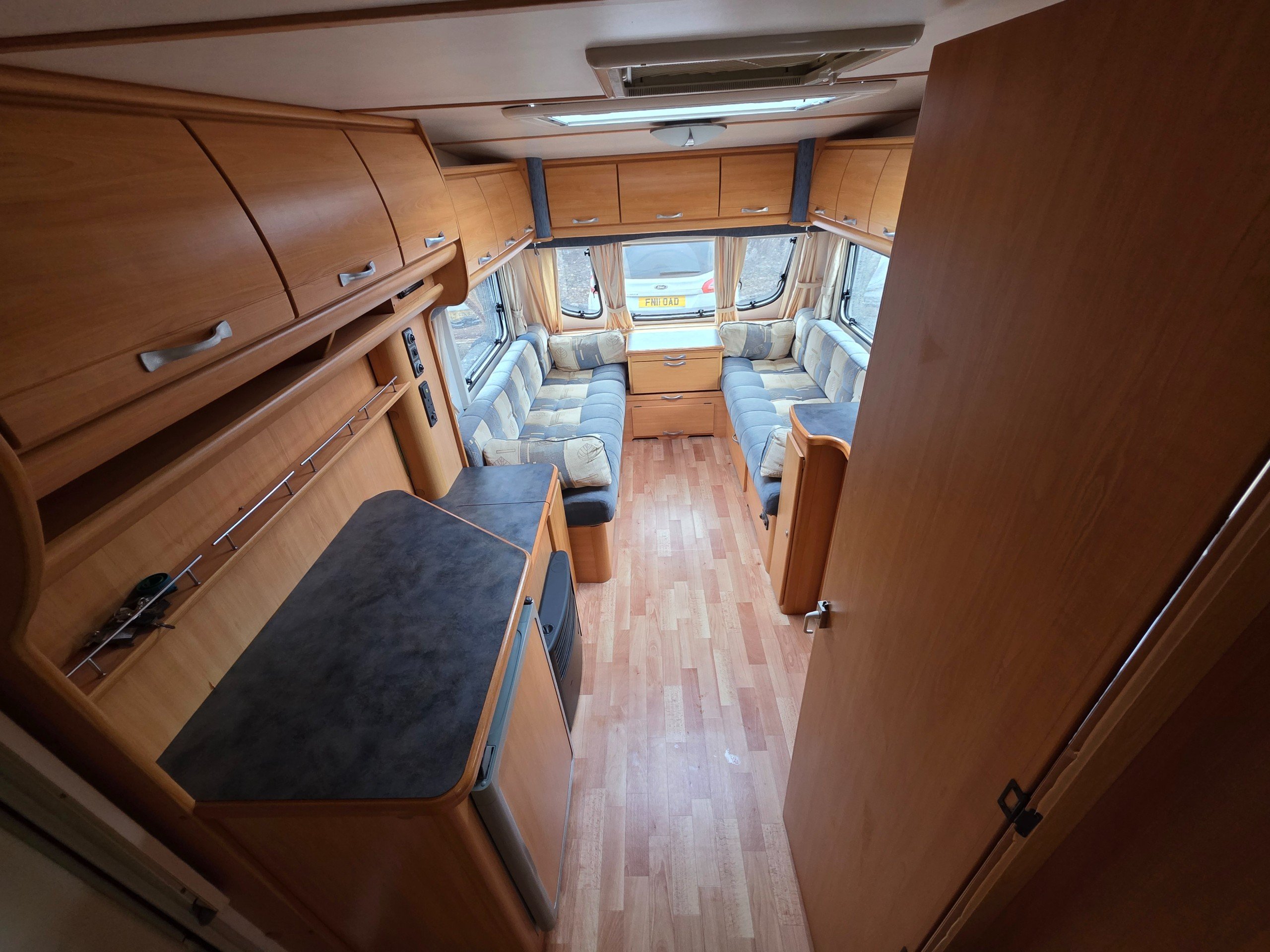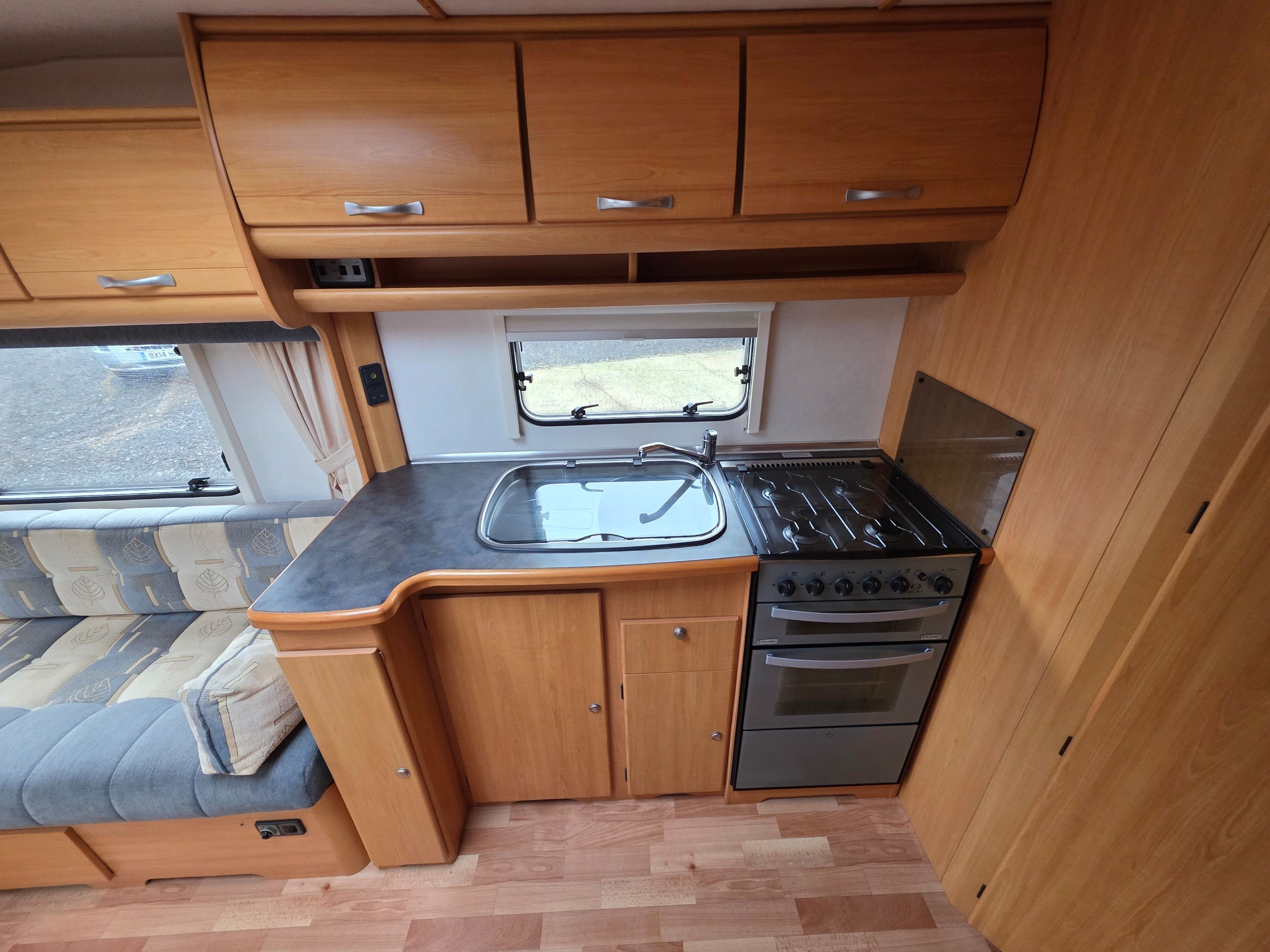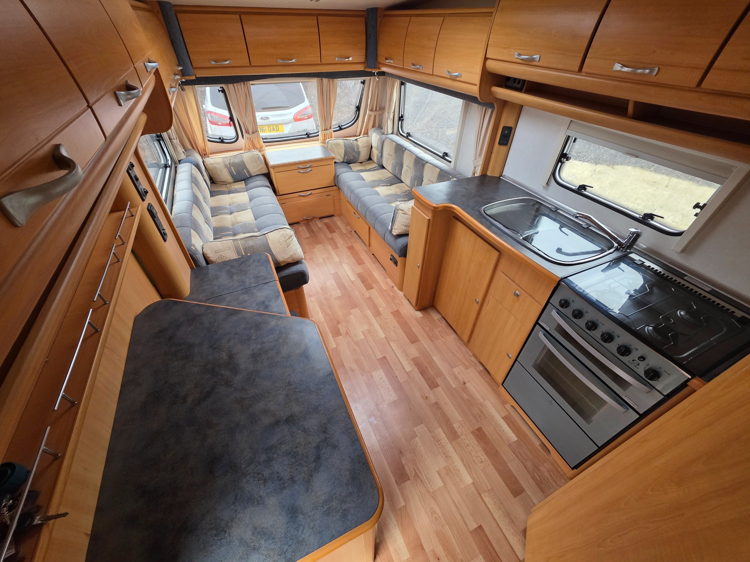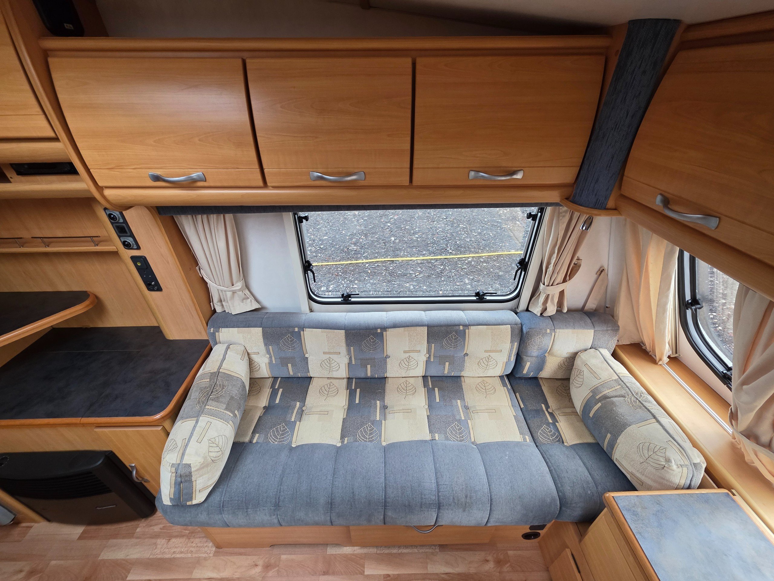 Geist LV485, 2 berth 2005 caravan, in good Condition inside and out. This caravan is fully ready to take camping, it has lots of features and extras what you would expect from a high spec caravan such as this. It includes: hot and cold water, full central heating, full screens and blinds, full oven and grill, three-way fridge/freezer, 240–12 V electricity, HEKI rooflight, Alko Antisway towbar and much more.This caravan comes with a full