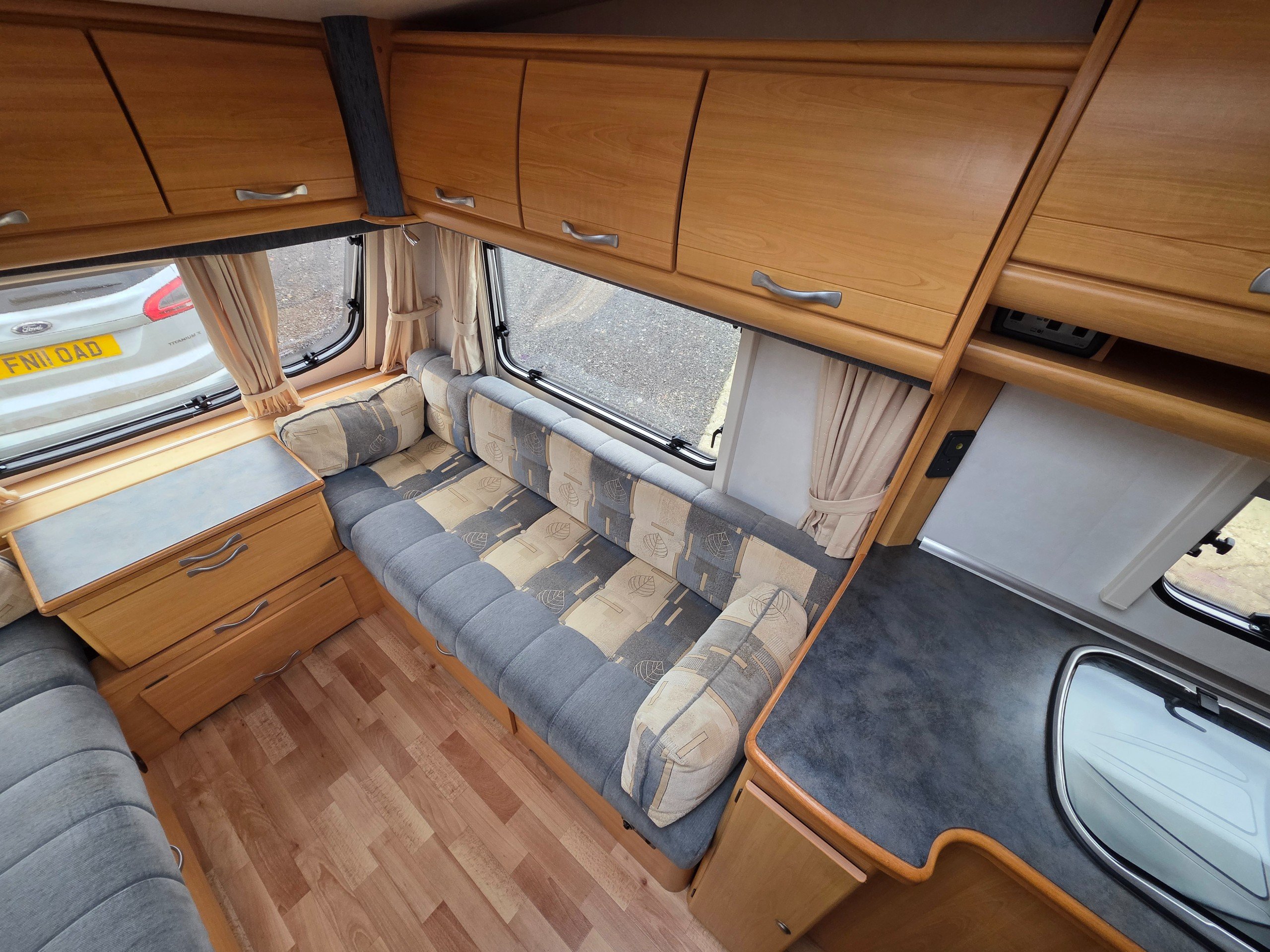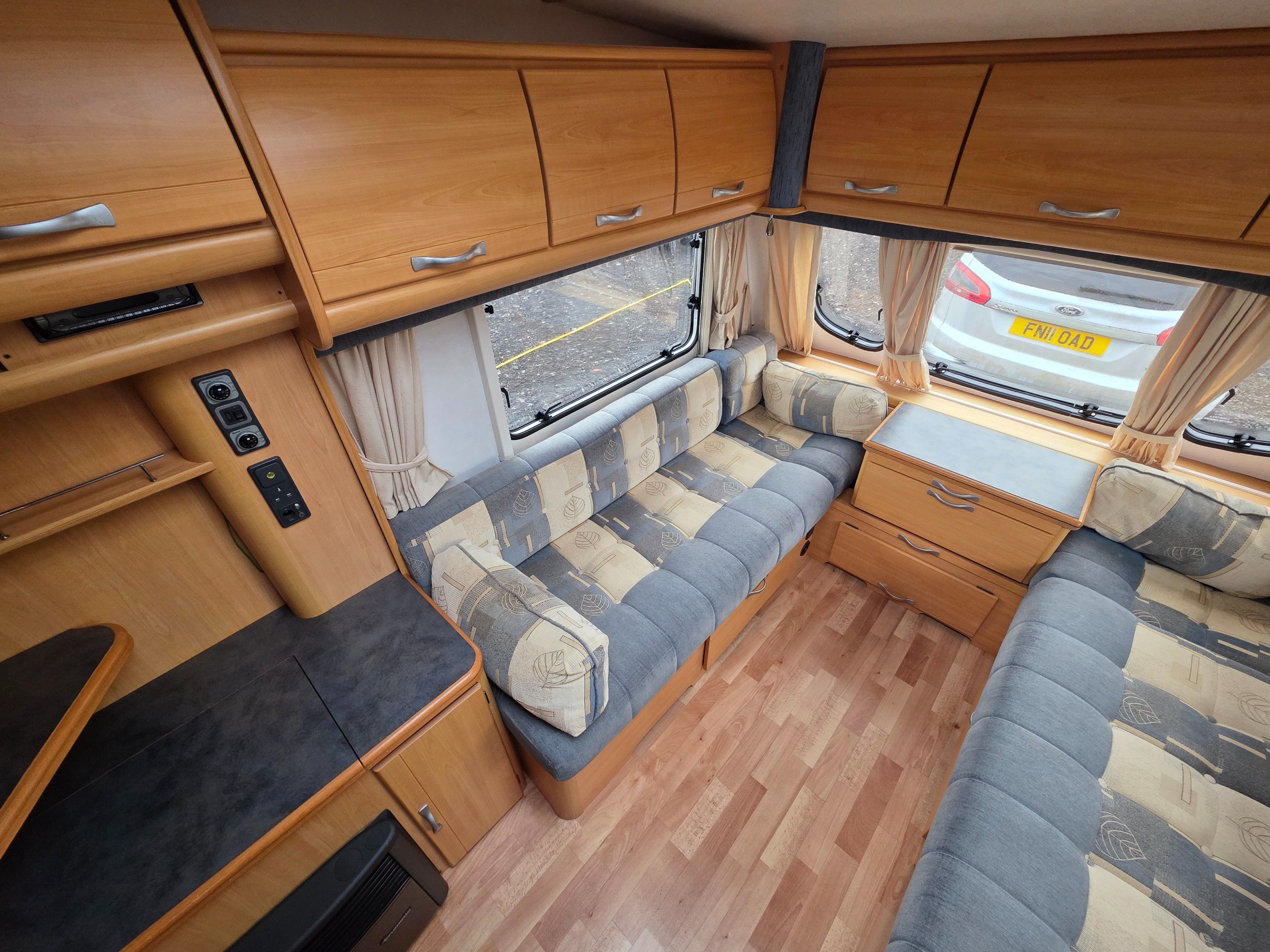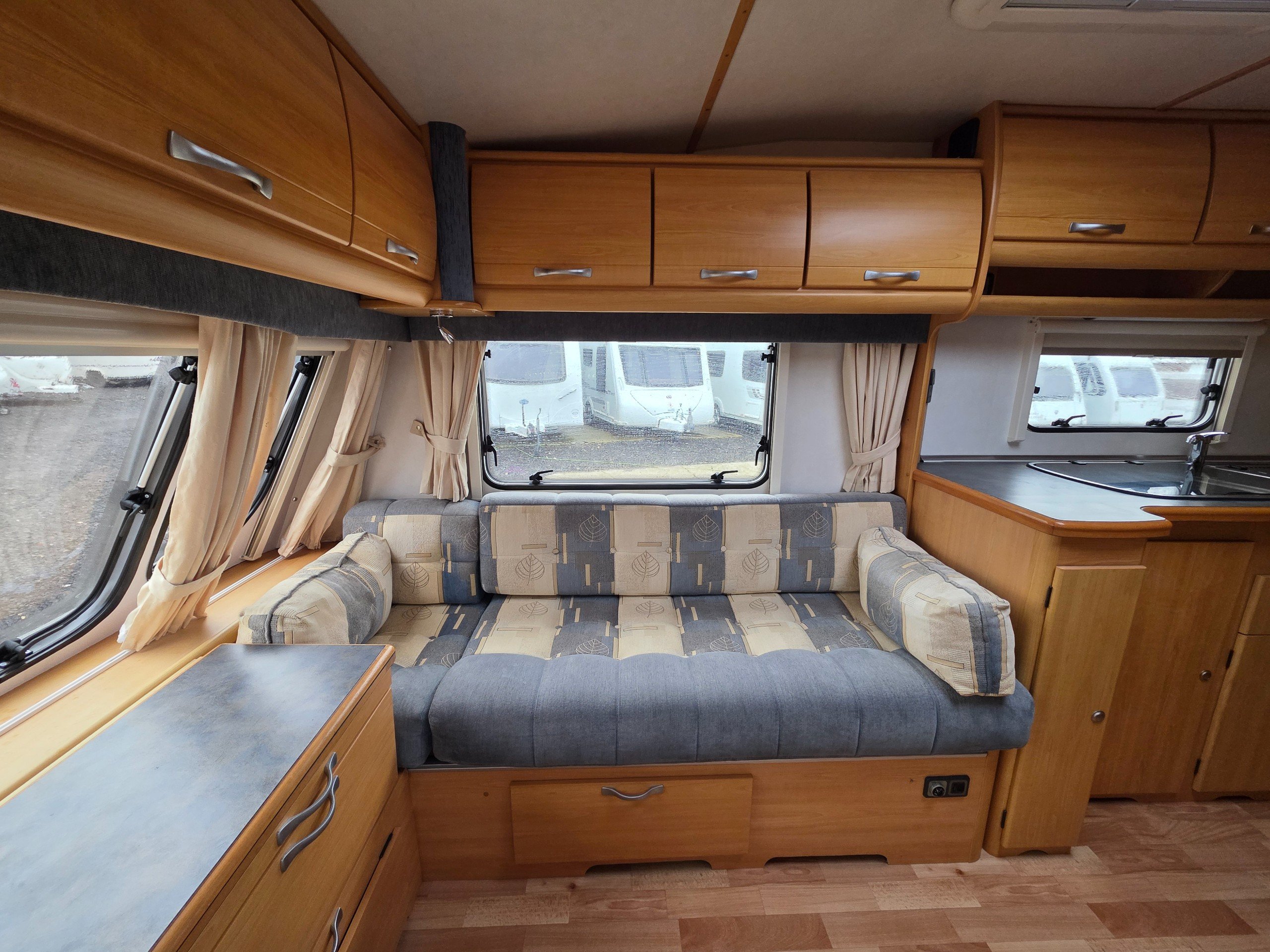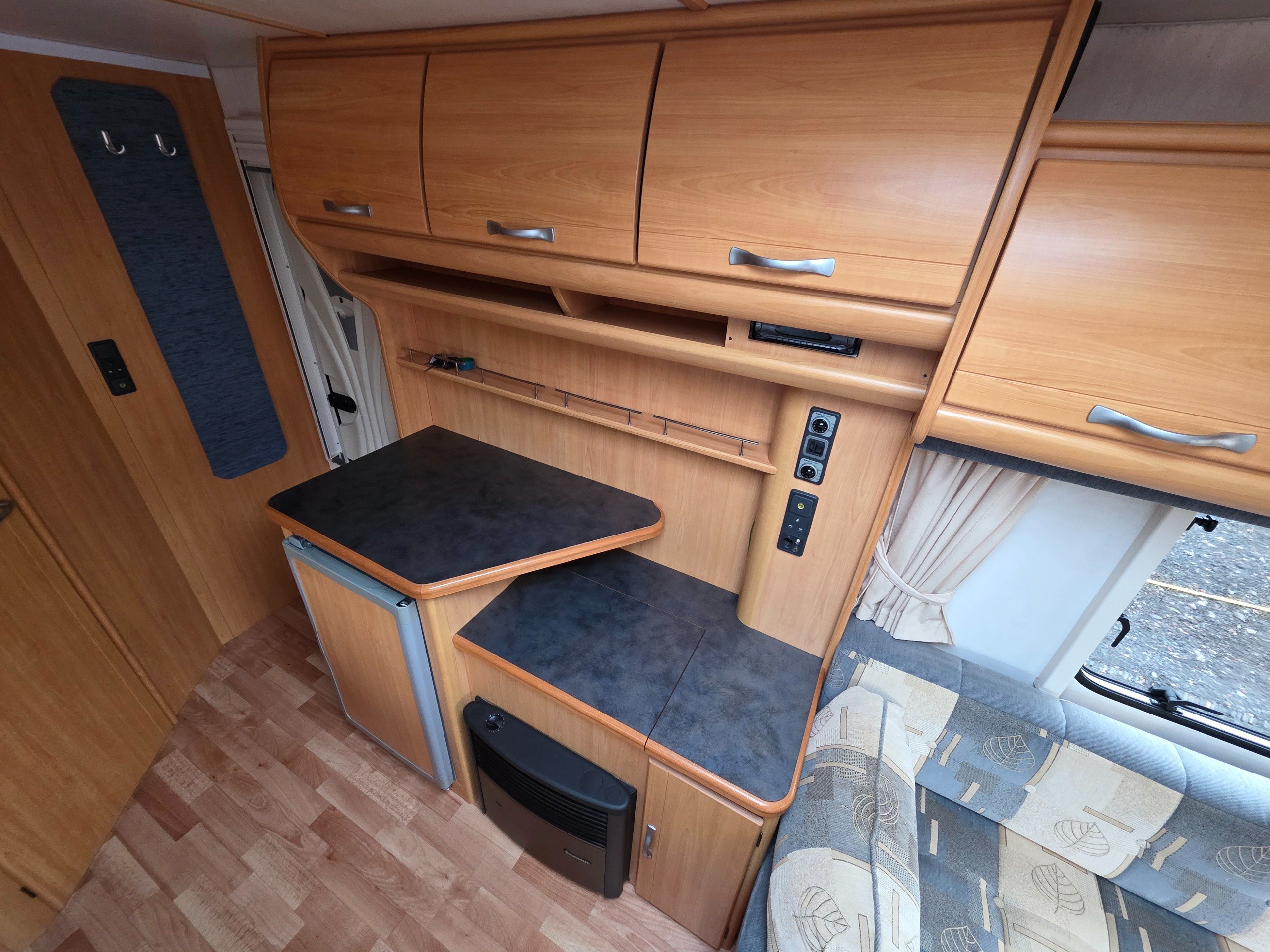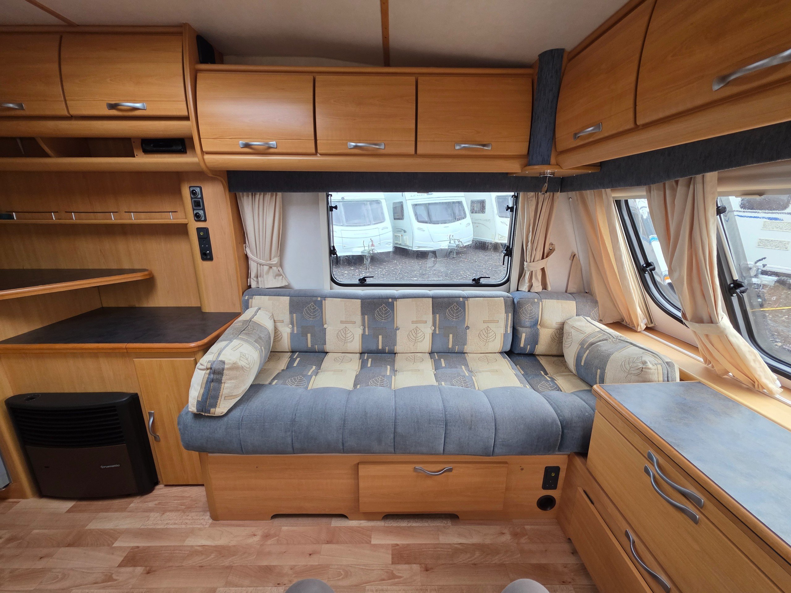 Geist LV485, 2 berth 2005 caravan, in good Condition inside and out. This caravan is fully ready to take camping, it has lots of features and extras what you would expect from a high spec caravan such as this. It includes: hot and cold water, full central heating, full screens and blinds, full oven and grill, three-way fridge/freezer, 240–12 V electricity, HEKI rooflight, Alko Antisway towbar and much more.This caravan comes with a full