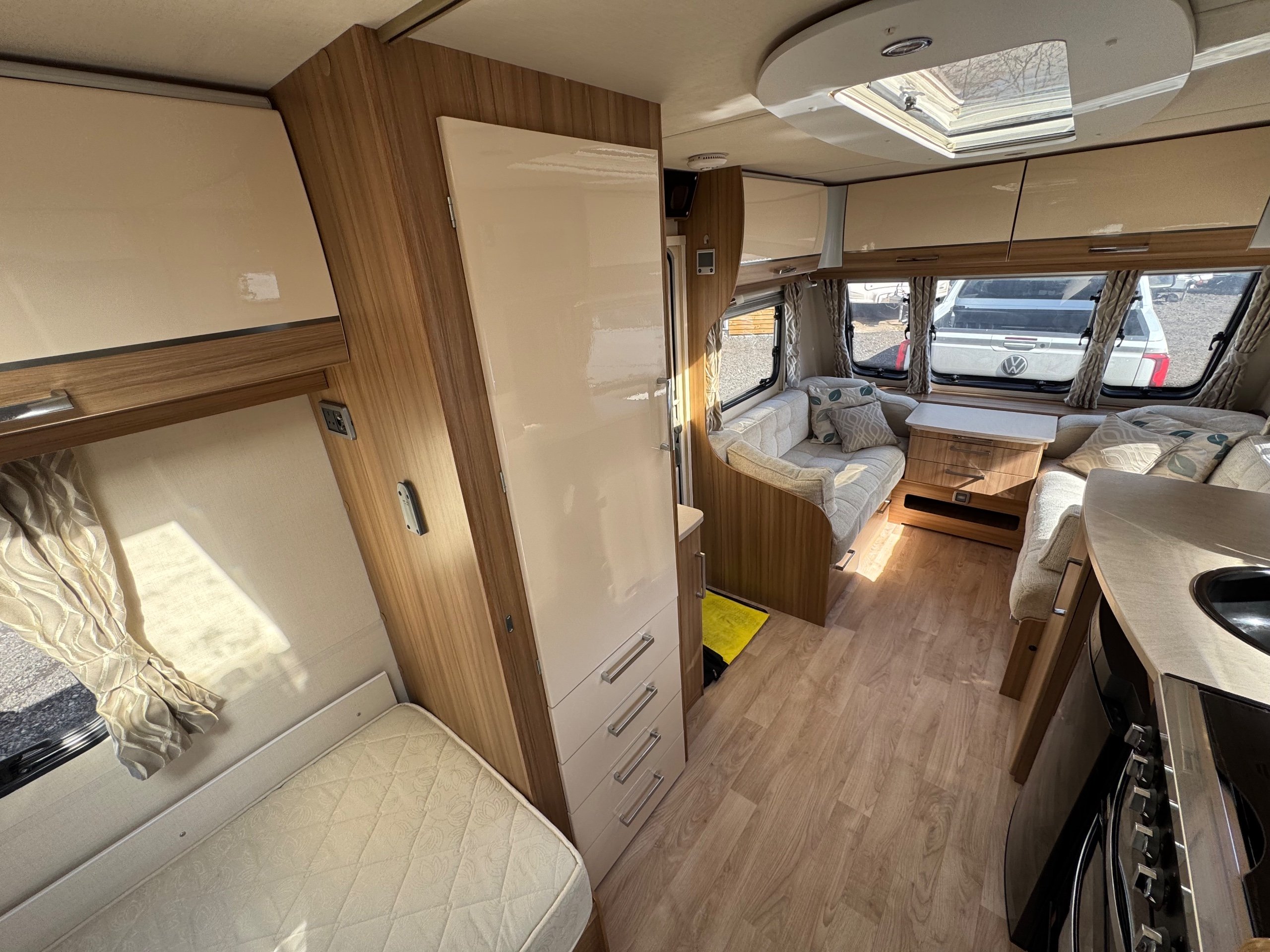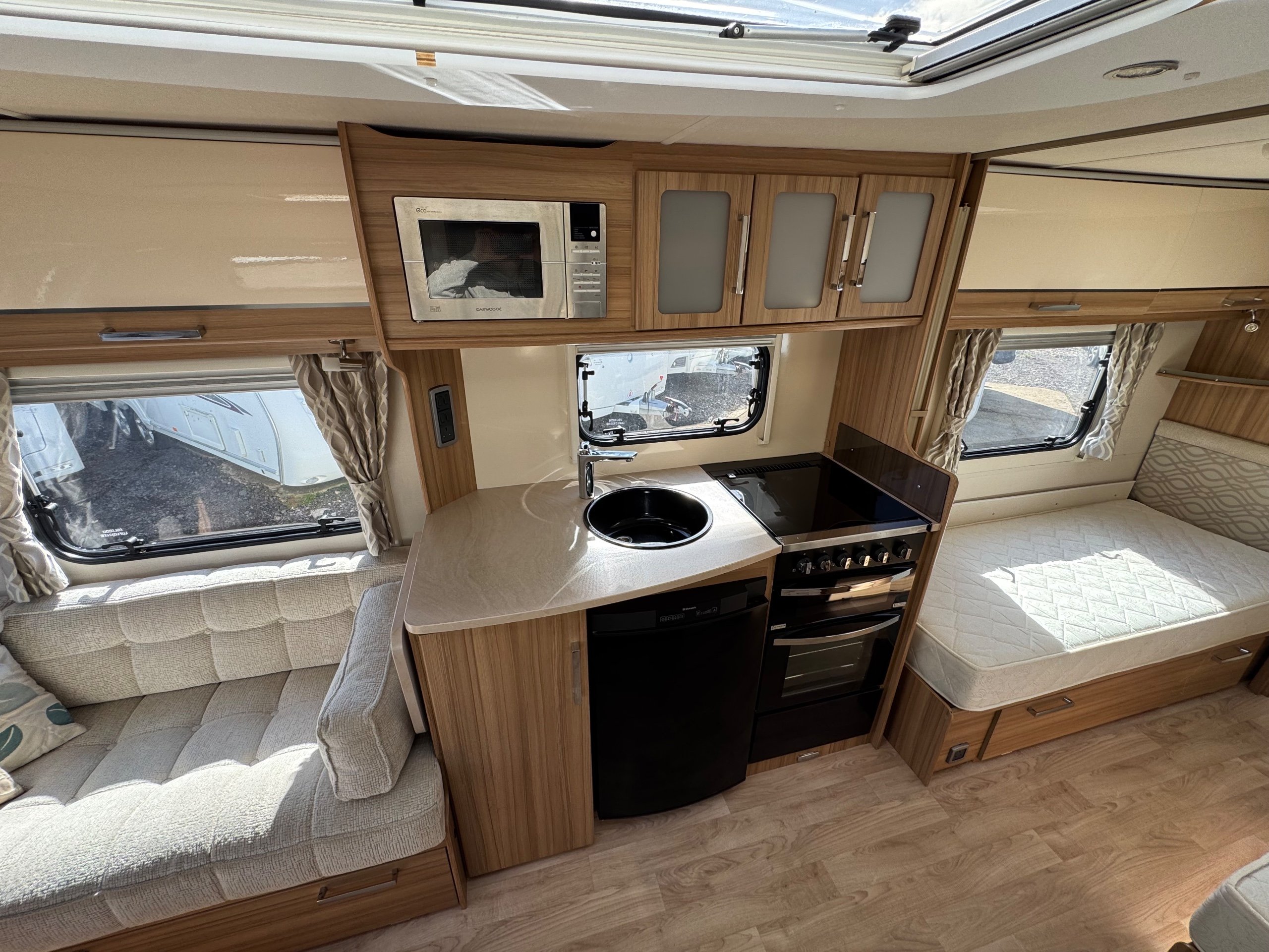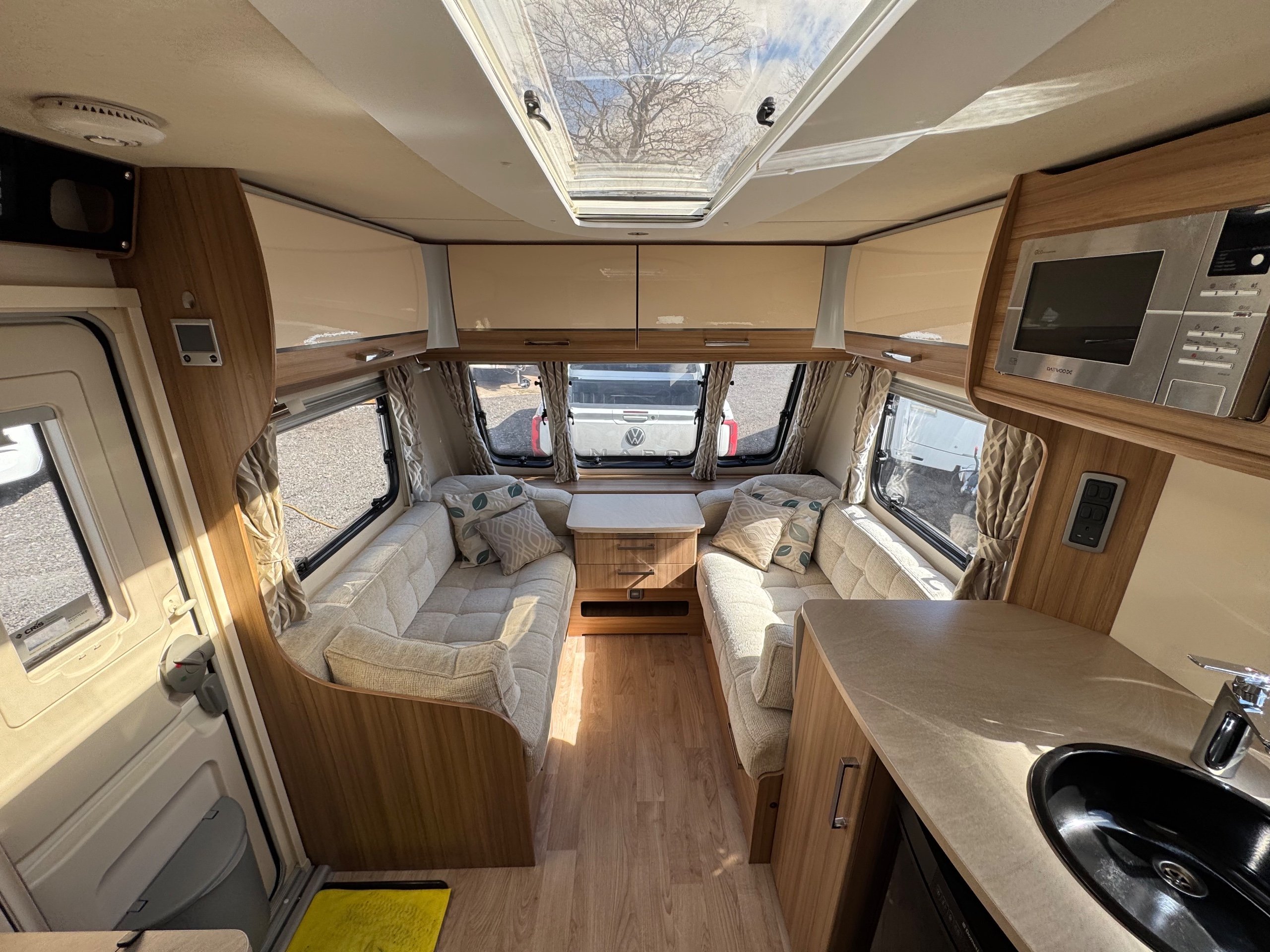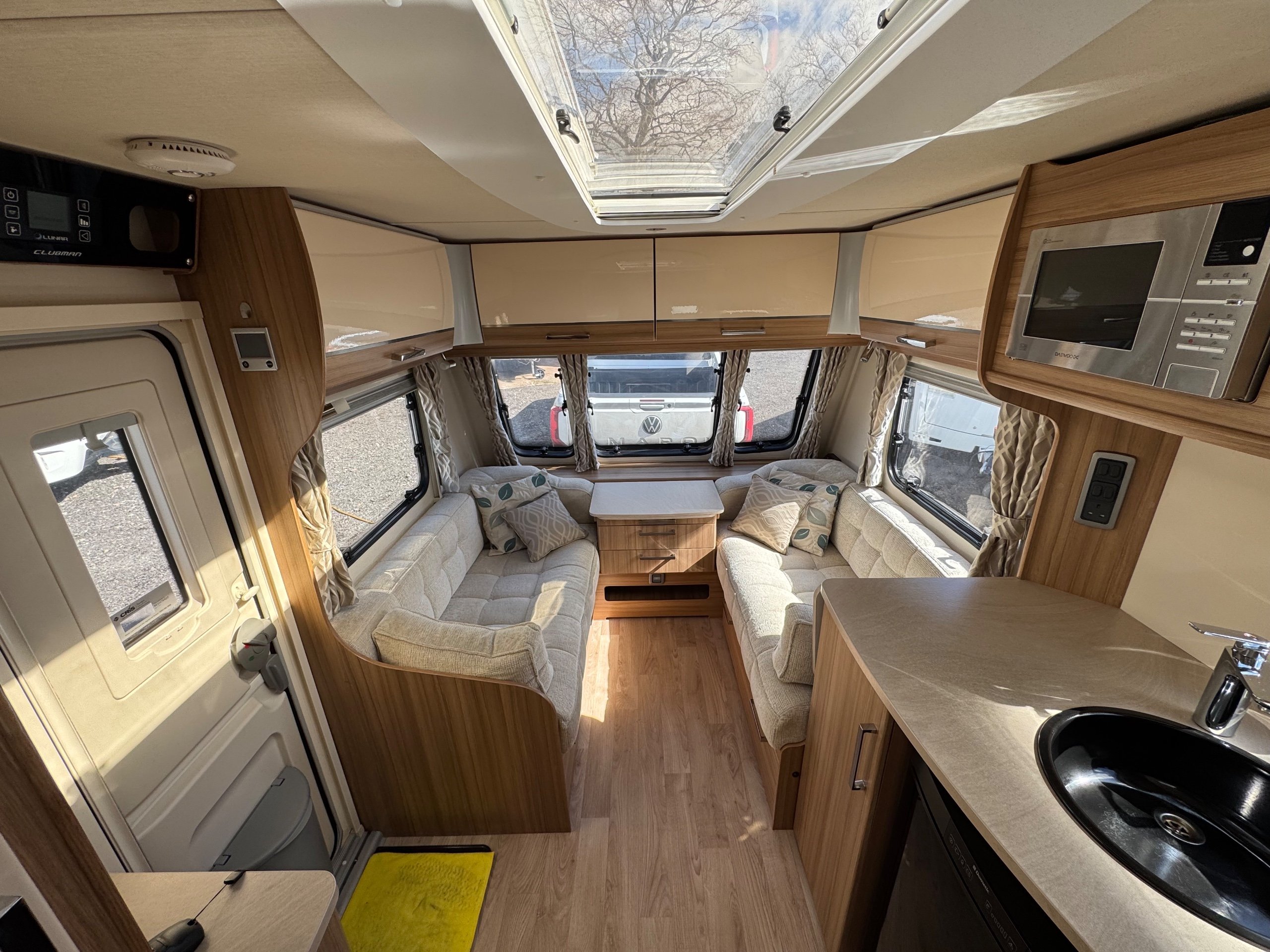 Lunar Clubman 2015 SB 4 berth caravan,in good Condition inside and out. This caravan is fully ready to take camping, it has lots of features and extras what you would expect from a high spec caravan such as this. It includes: hot and cold water, full central heating, full screens and blinds, full oven and grill, three-way fridge/freezer, 240–12 V electricity, HEKI rooflight, Alko Antisway towbar and much more.This caravan comes with a full