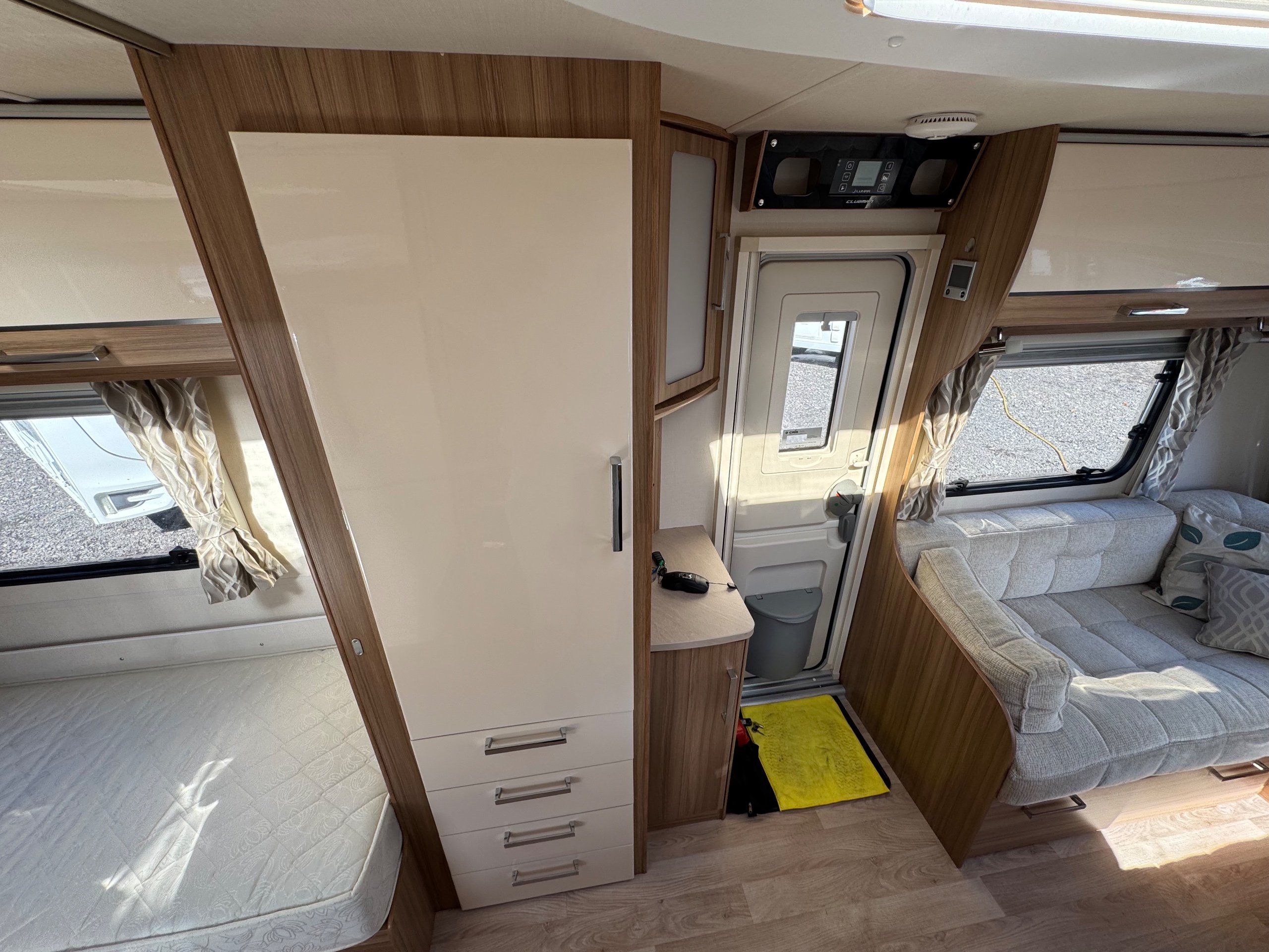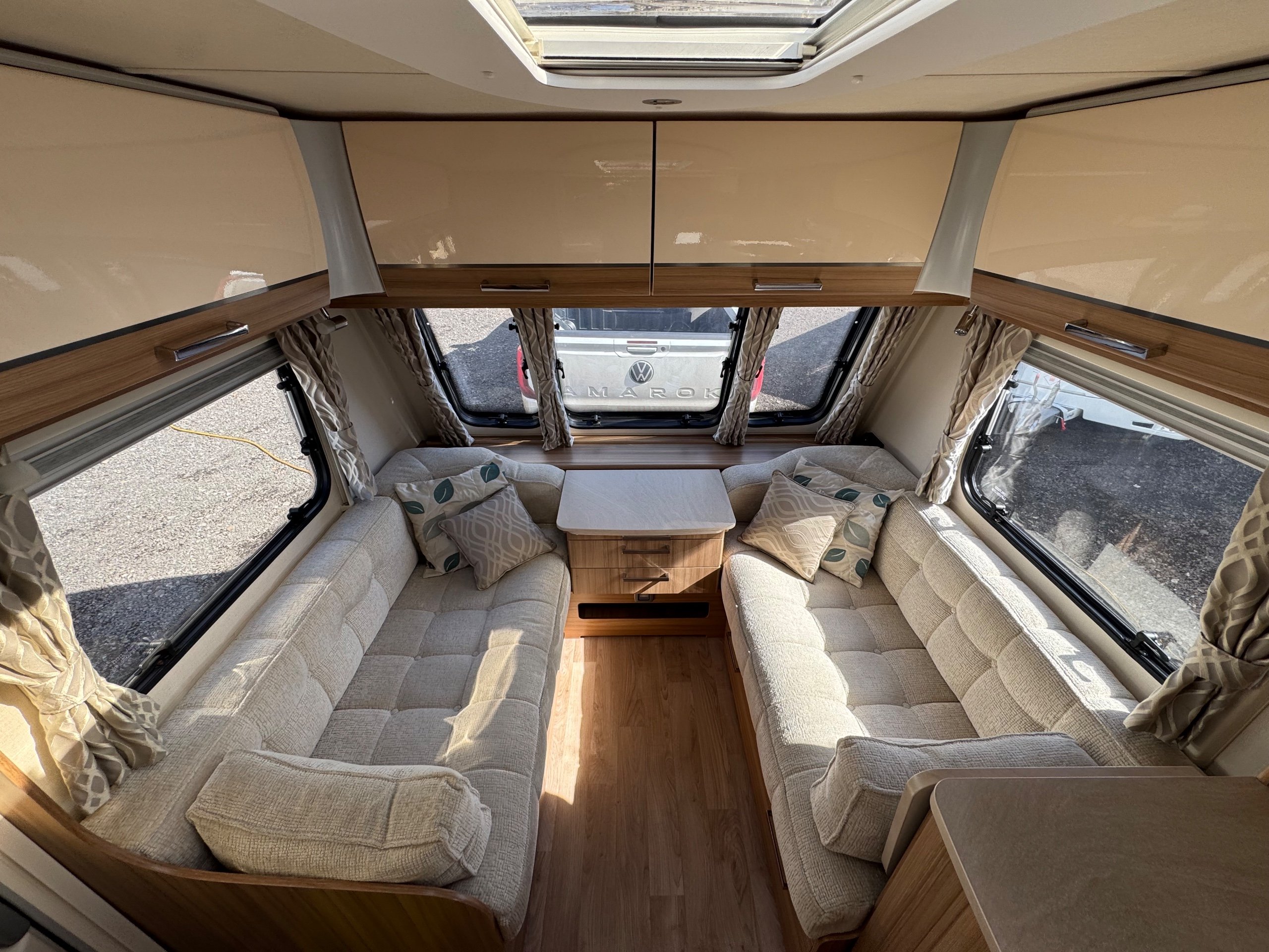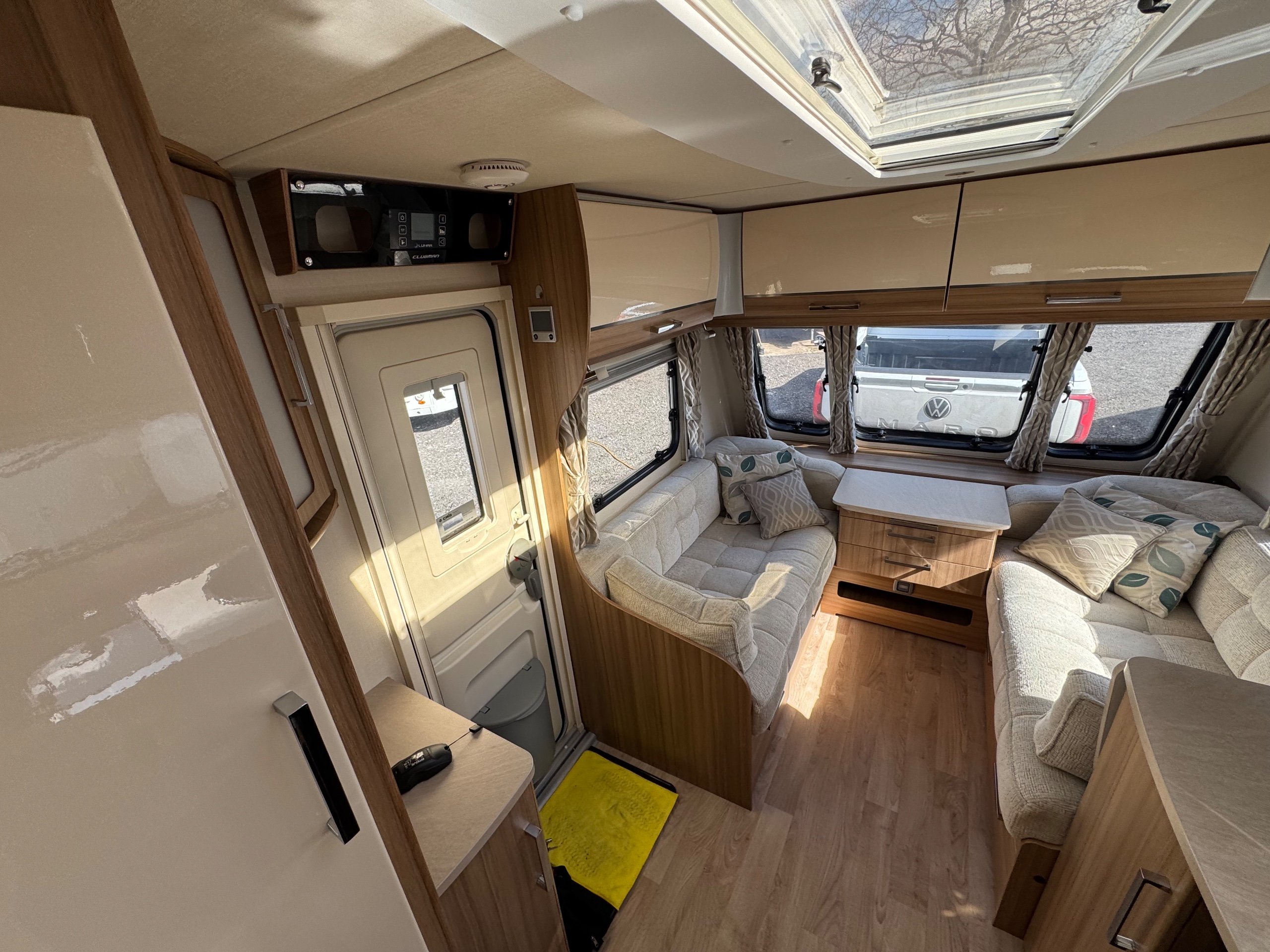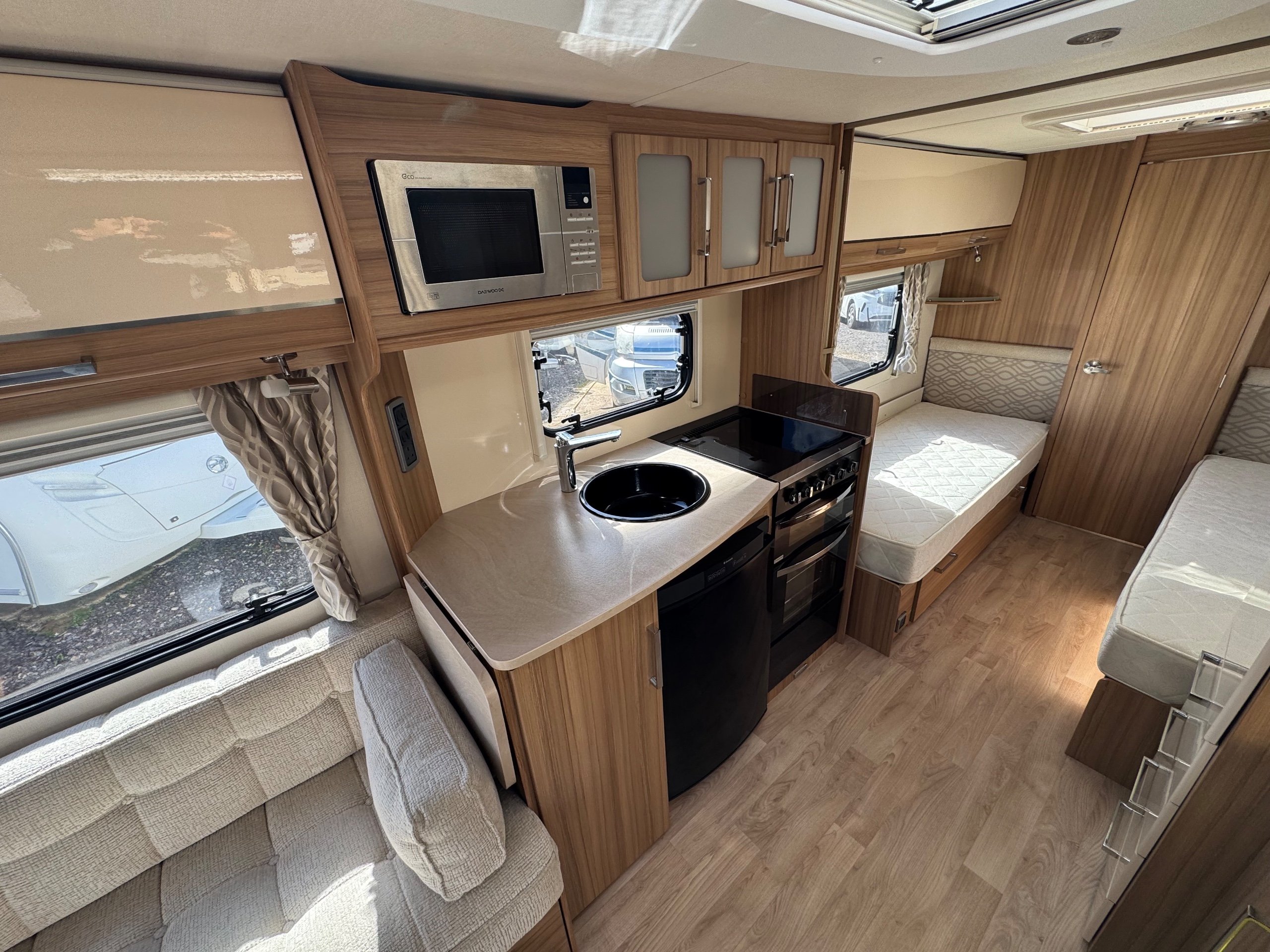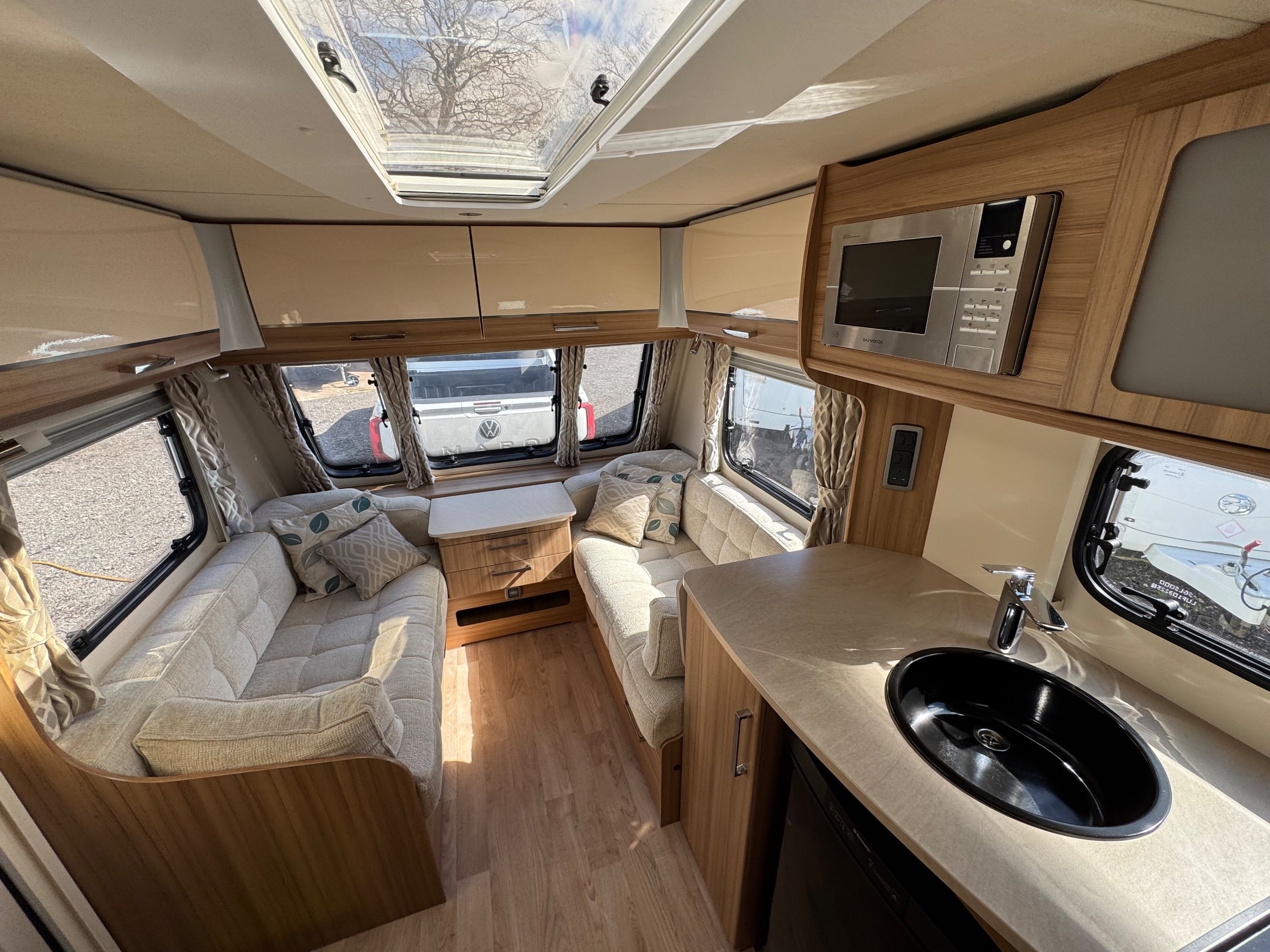 Lunar Clubman 2015 SB 4 berth caravan,in good Condition inside and out. This caravan is fully ready to take camping, it has lots of features and extras what you would expect from a high spec caravan such as this. It includes: hot and cold water, full central heating, full screens and blinds, full oven and grill, three-way fridge/freezer, 240–12 V electricity, HEKI rooflight, Alko Antisway towbar and much more.This caravan comes with a full