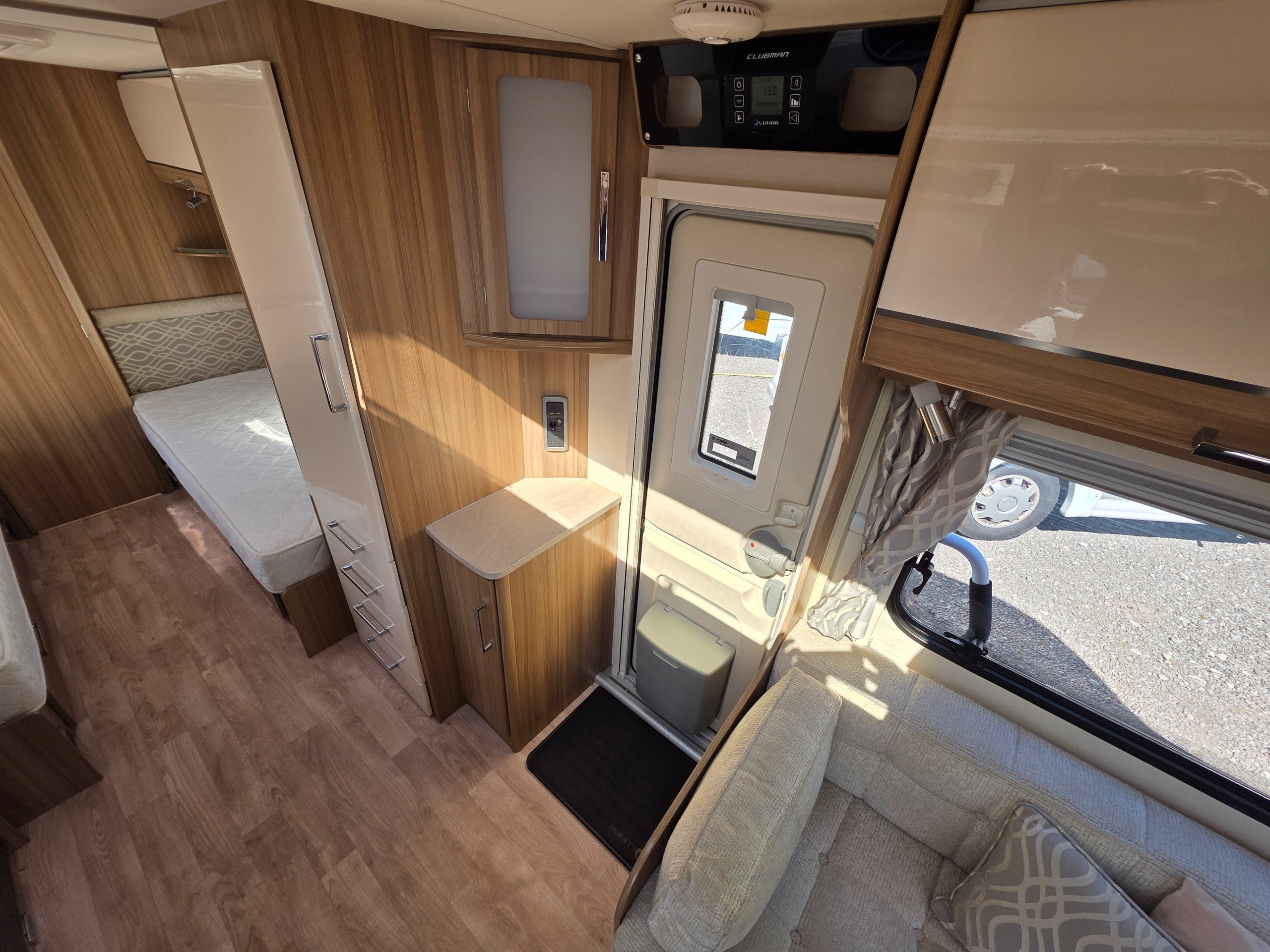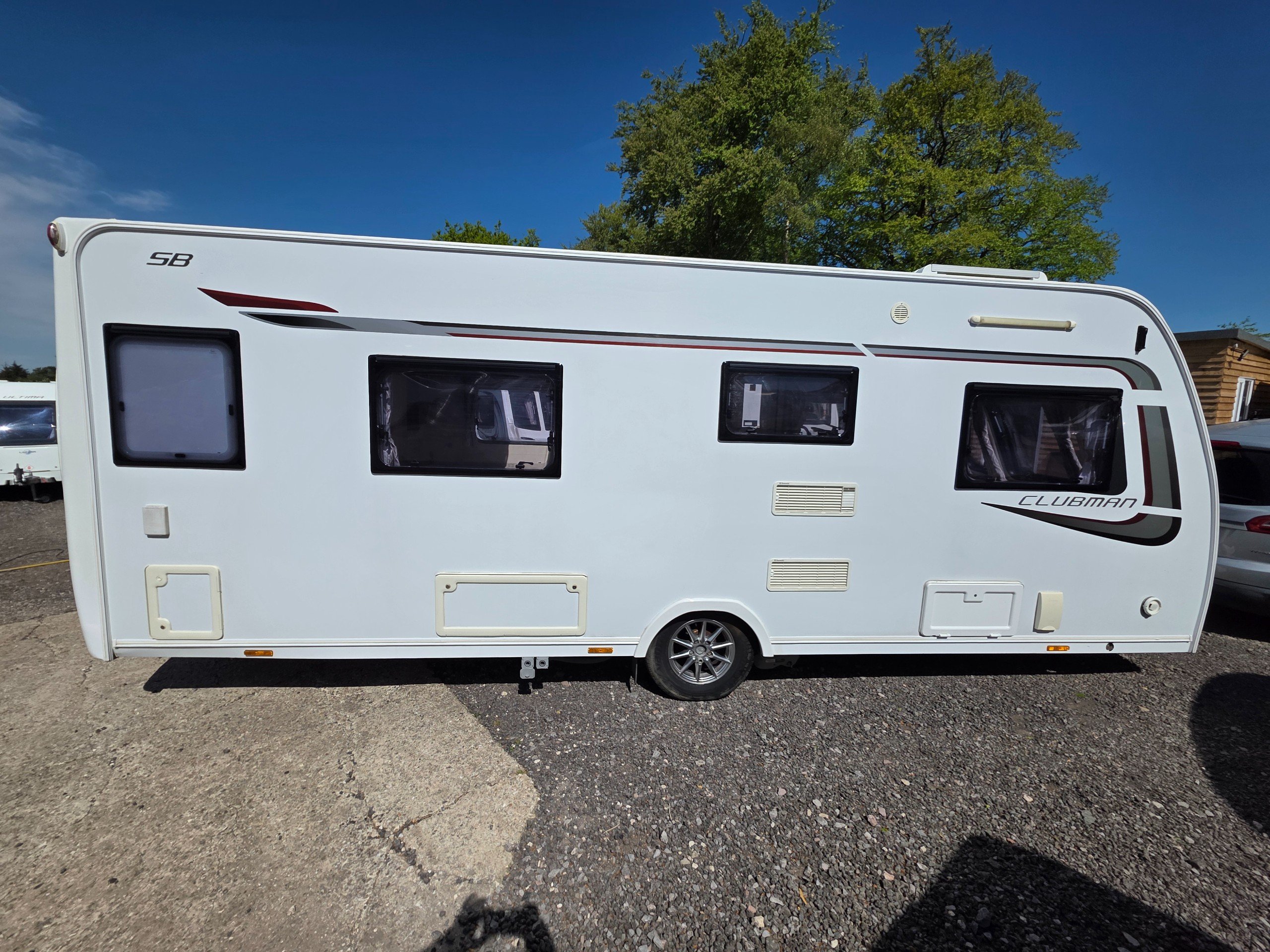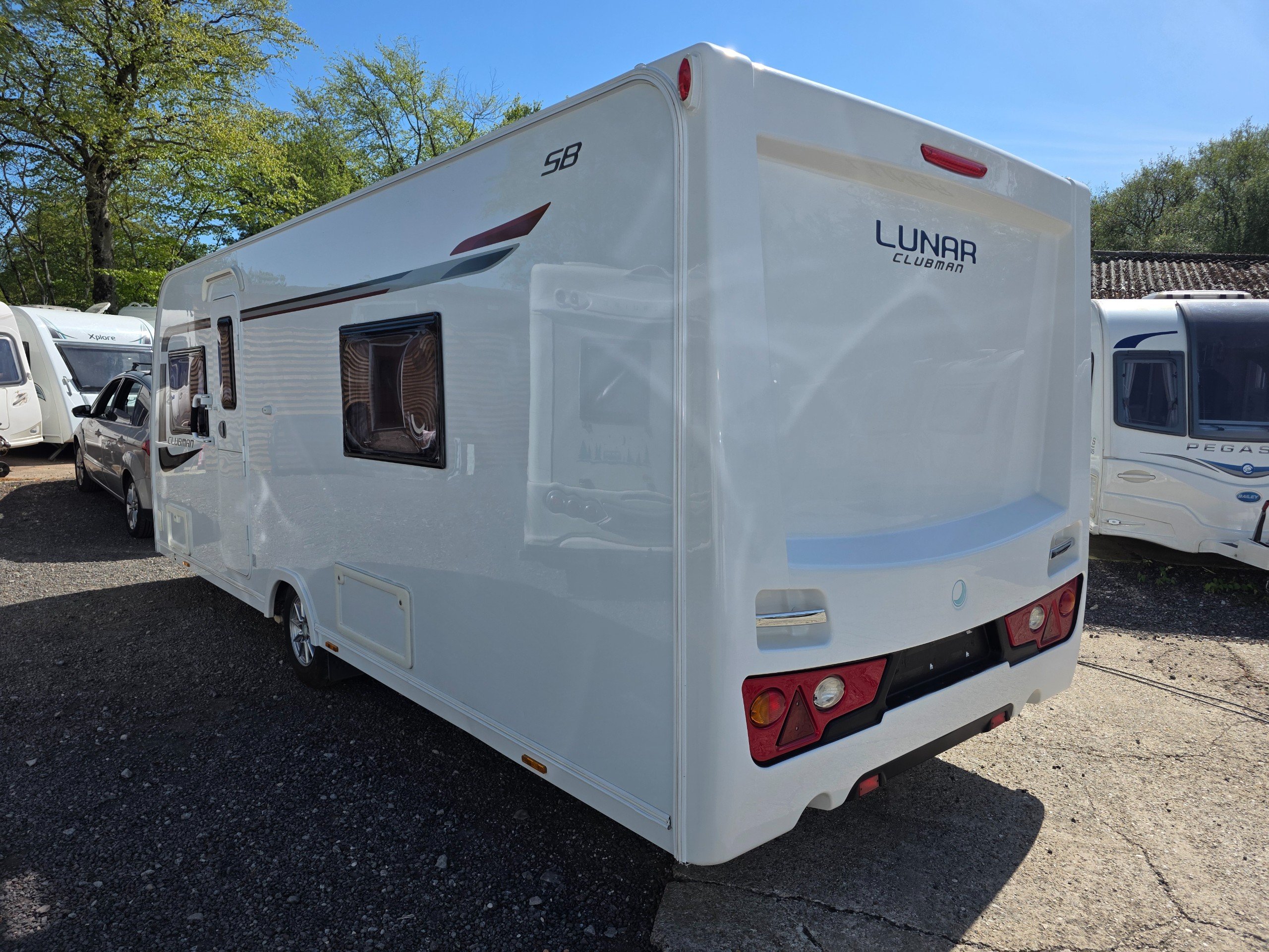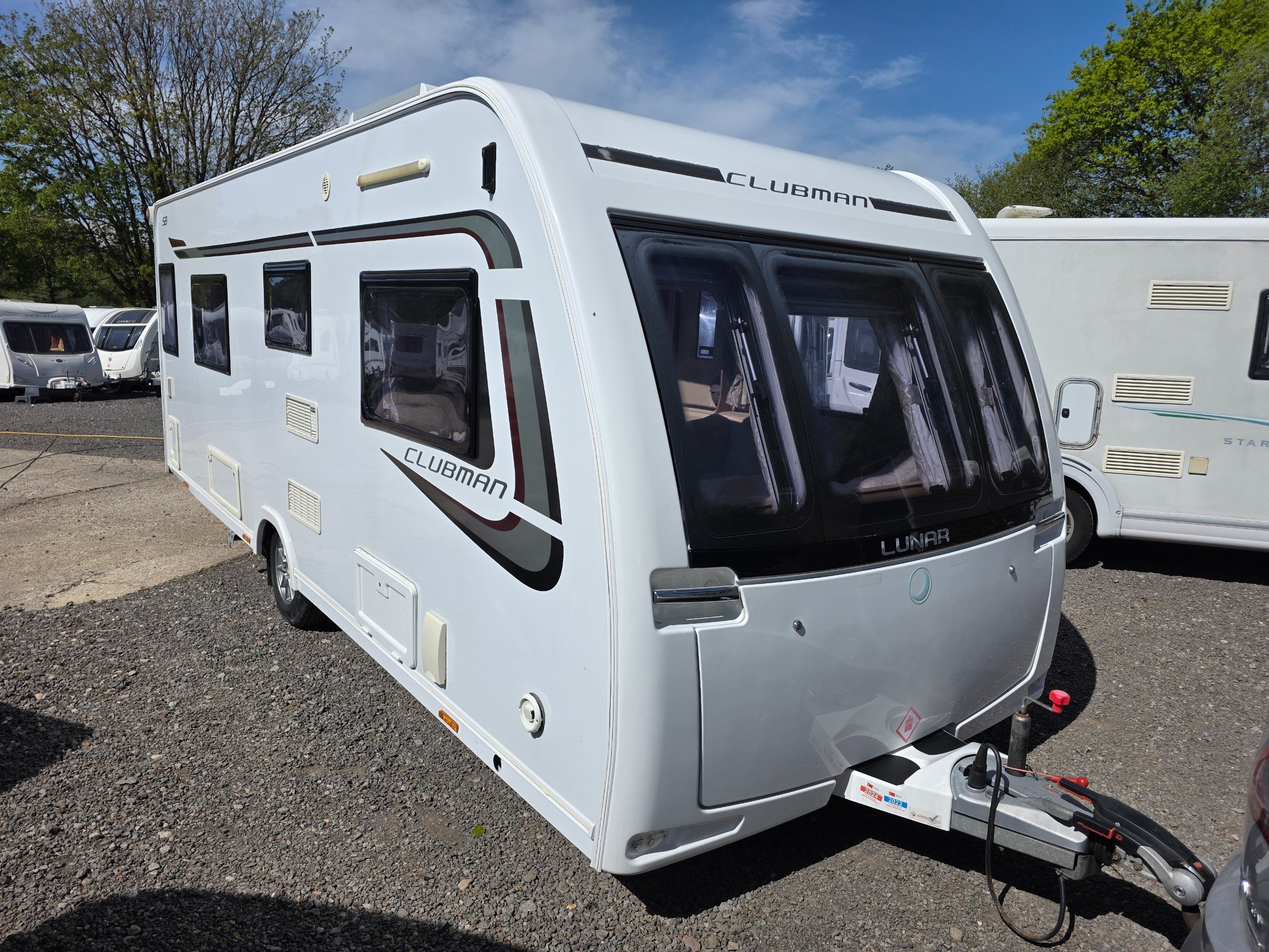 Lunar Clubman SB 2 berth 2015 caravan, in superb condition inside and out. This caravan is fully ready to take camping, it has lots of features and extras what you would expect from a high spec caravan such as this. It includes: hot and cold water, full central heating, full screens and blinds, full oven and grill, three-way fridge/freezer, 240–12 V electricity, HEKI rooflight, Alko Antisway towbar and much more.This caravan comes with a full