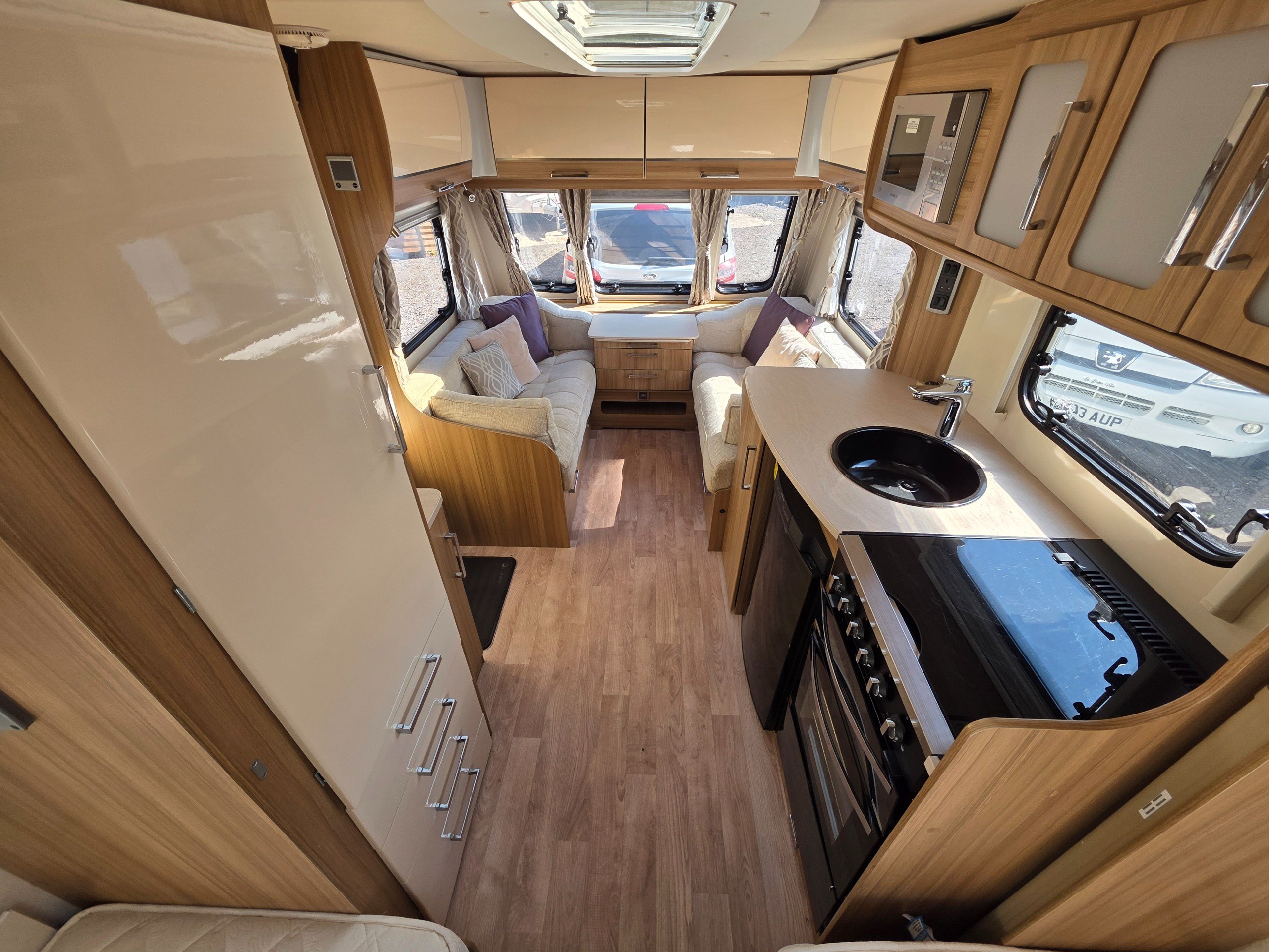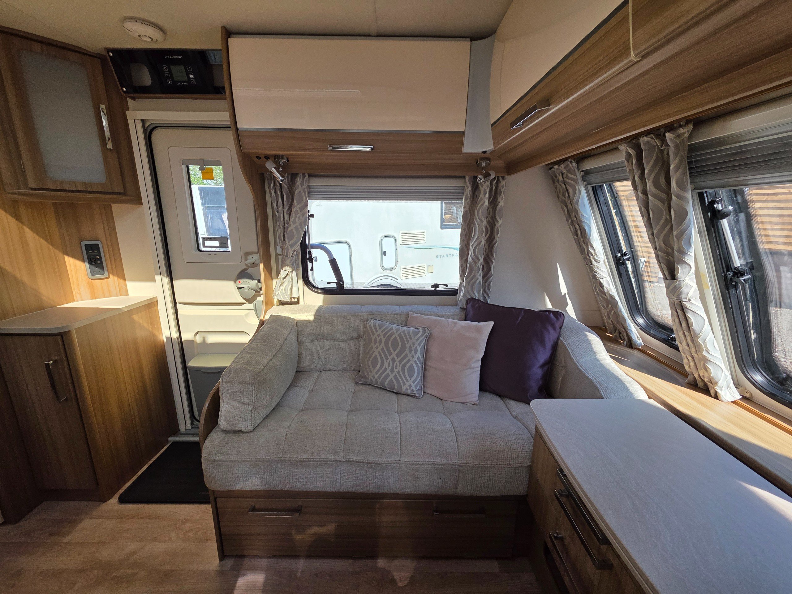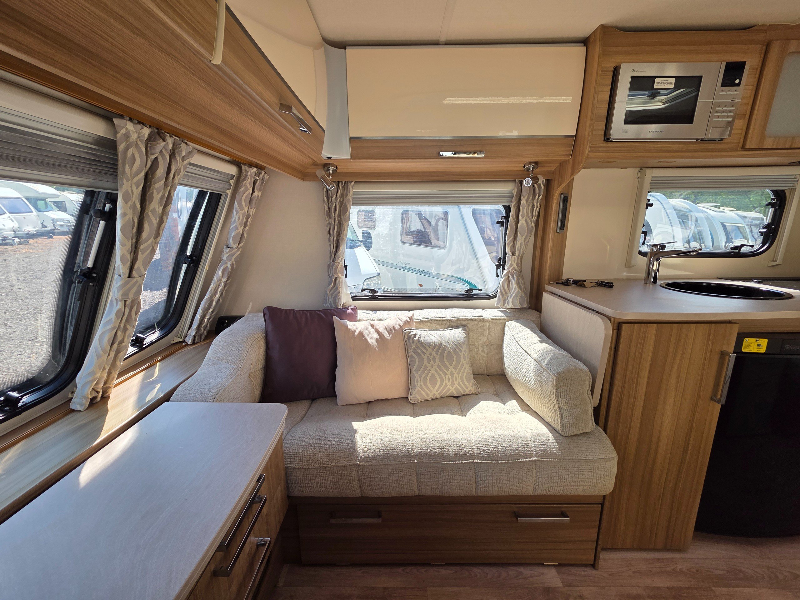 Lunar Clubman SB 2 berth 2015 caravan, in superb condition inside and out. This caravan is fully ready to take camping, it has lots of features and extras what you would expect from a high spec caravan such as this. It includes: hot and cold water, full central heating, full screens and blinds, full oven and grill, three-way fridge/freezer, 240–12 V electricity, HEKI rooflight, Alko Antisway towbar and much more.This caravan comes with a full