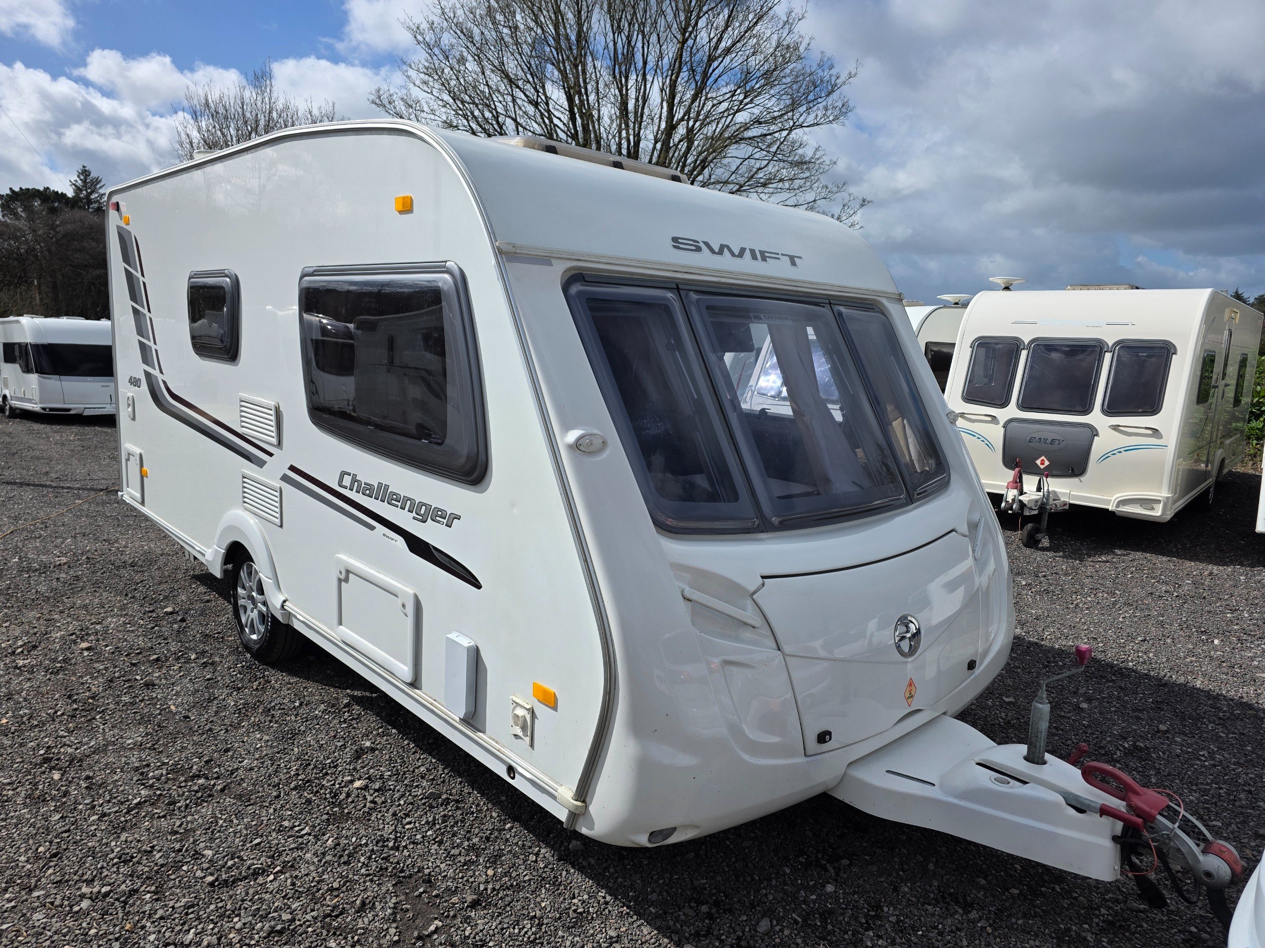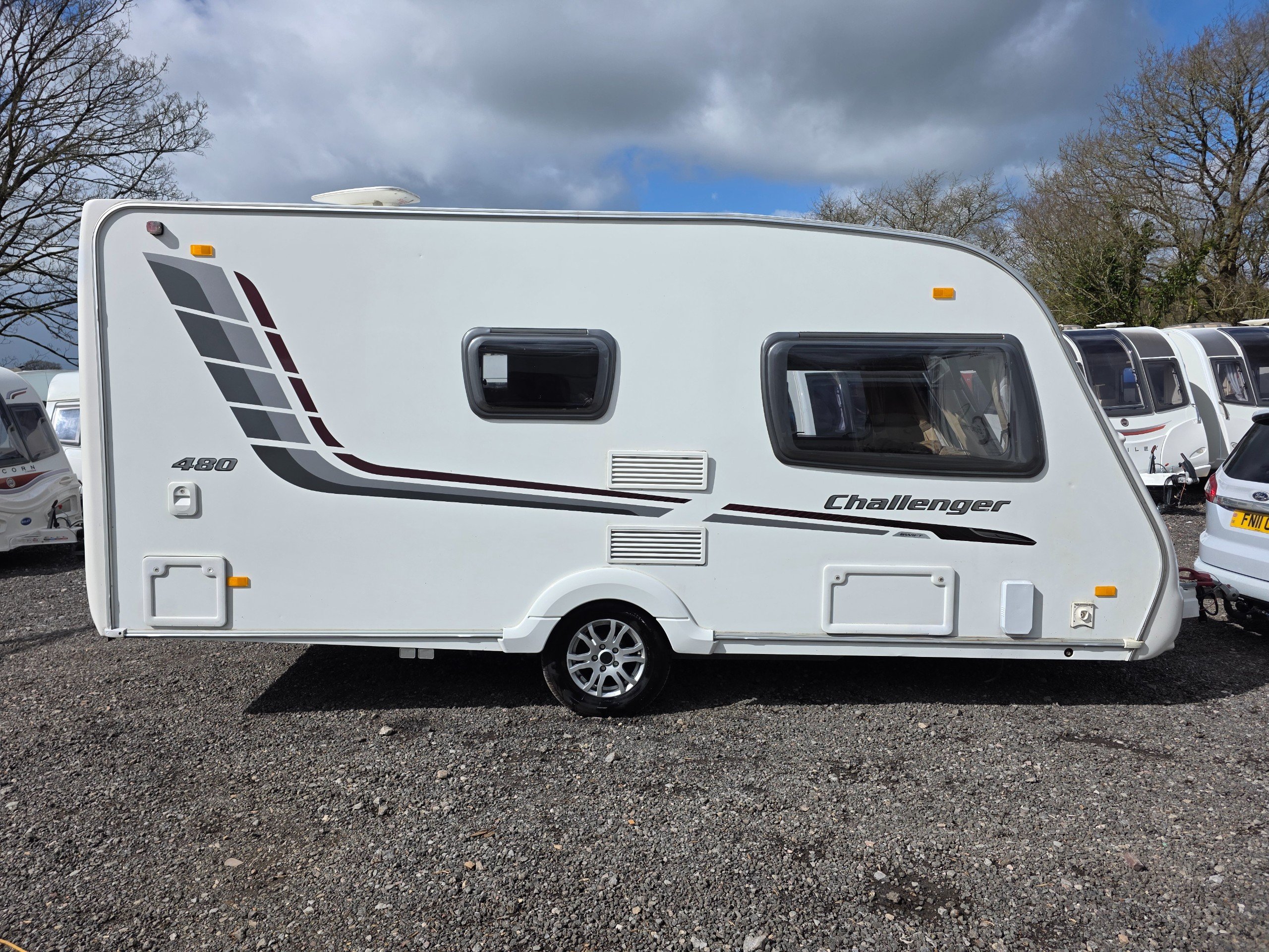 Swift Challenger 480, 2 berth 2010 caravan, in good Condition inside and out. This caravan is fully ready to take camping, it has lots of features and extras what you would expect from a high spec caravan such as this. It includes: hot and cold water, full central heating, full screens and blinds, full oven and grill, three-way fridge/freezer, 240–12 V electricity, HEKI rooflight, Alko Antisway towbar and much more.This caravan comes with a full