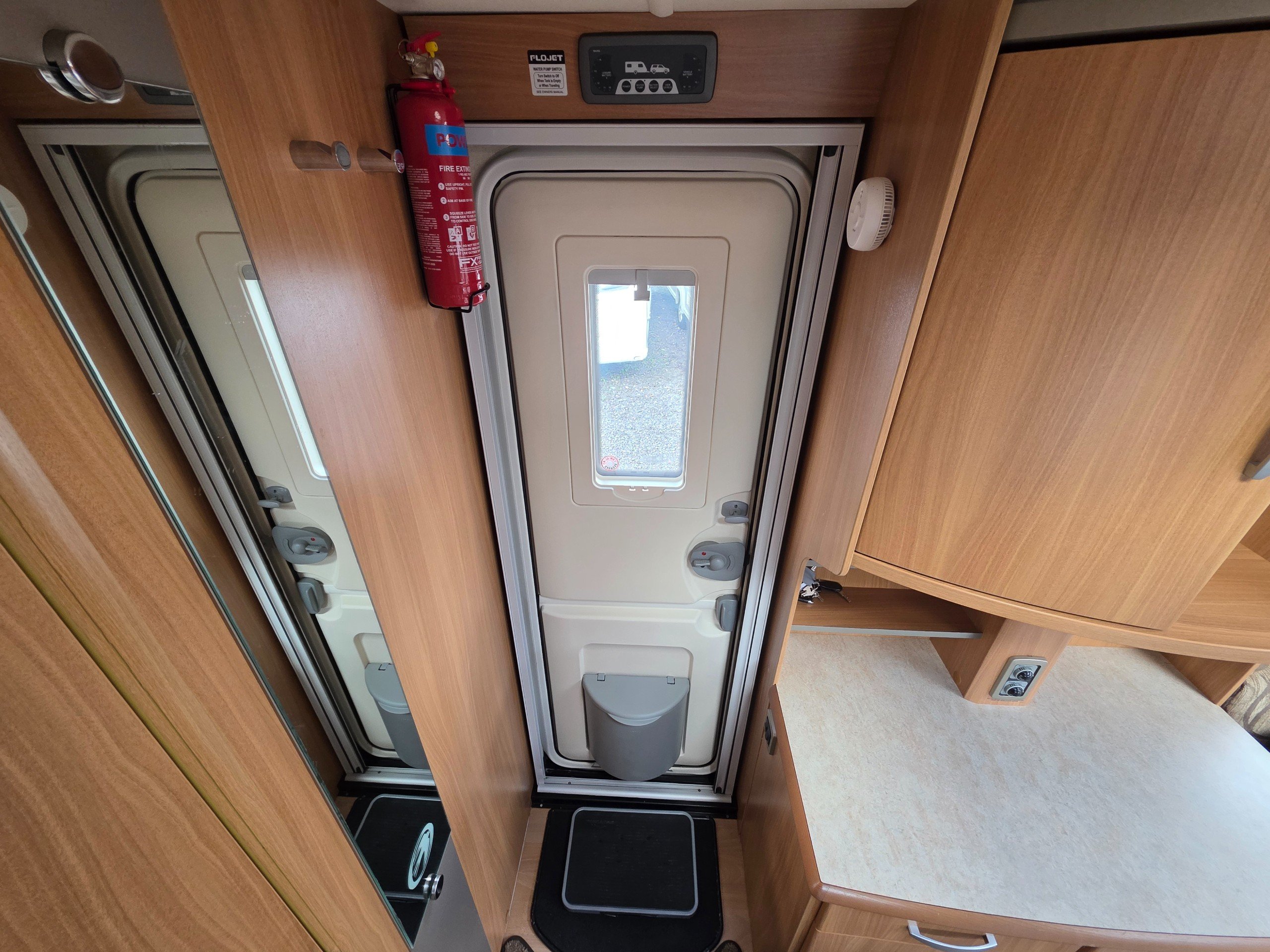 starter pack which includes: leg winder, step, gas bottle, power cable, water pump and waste/fresh water containers.