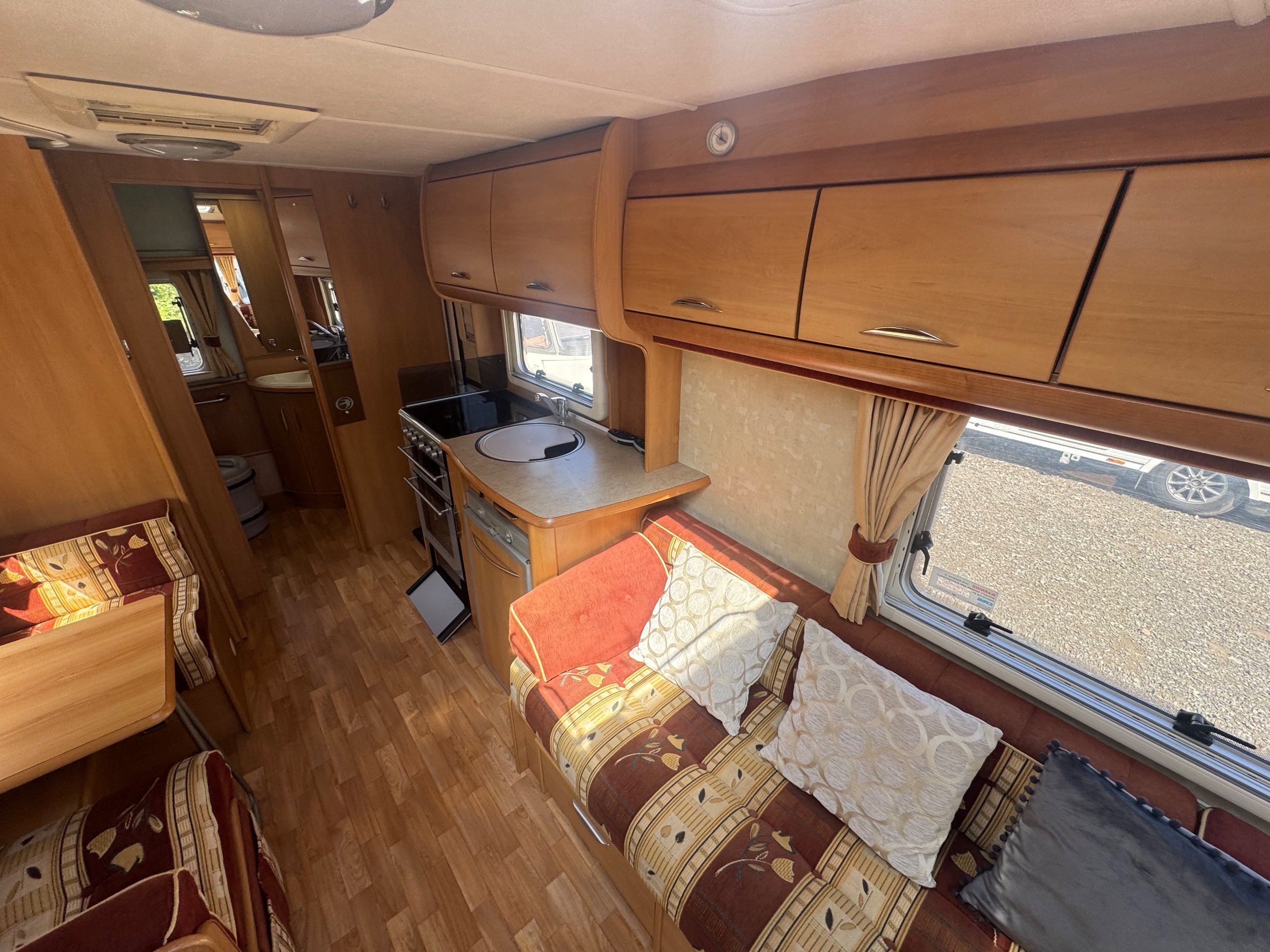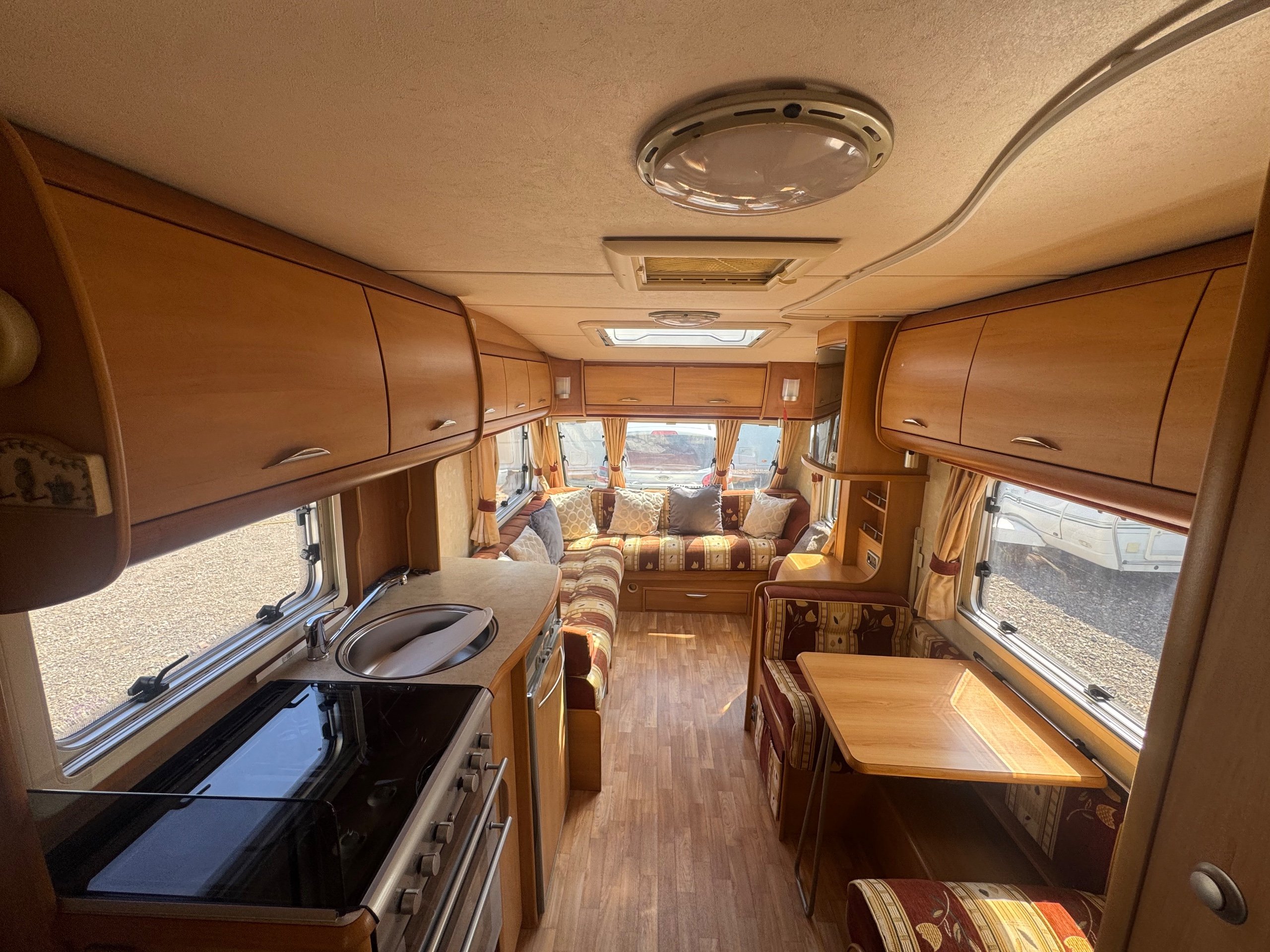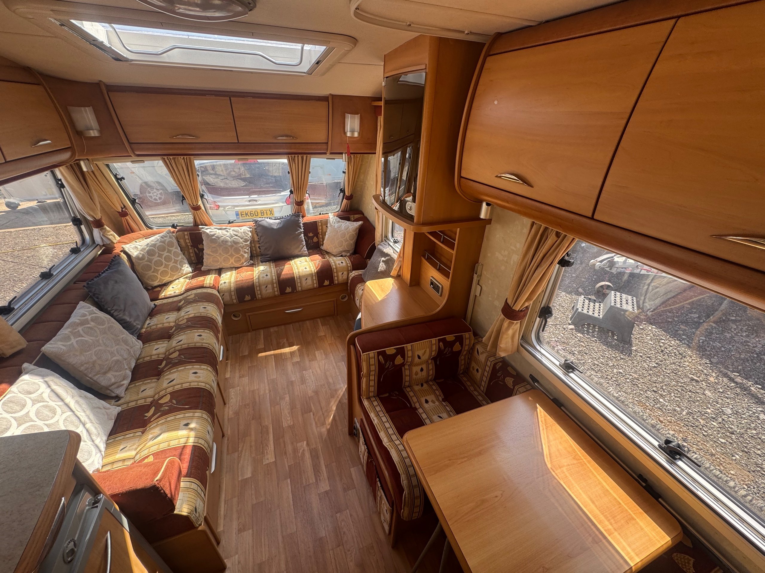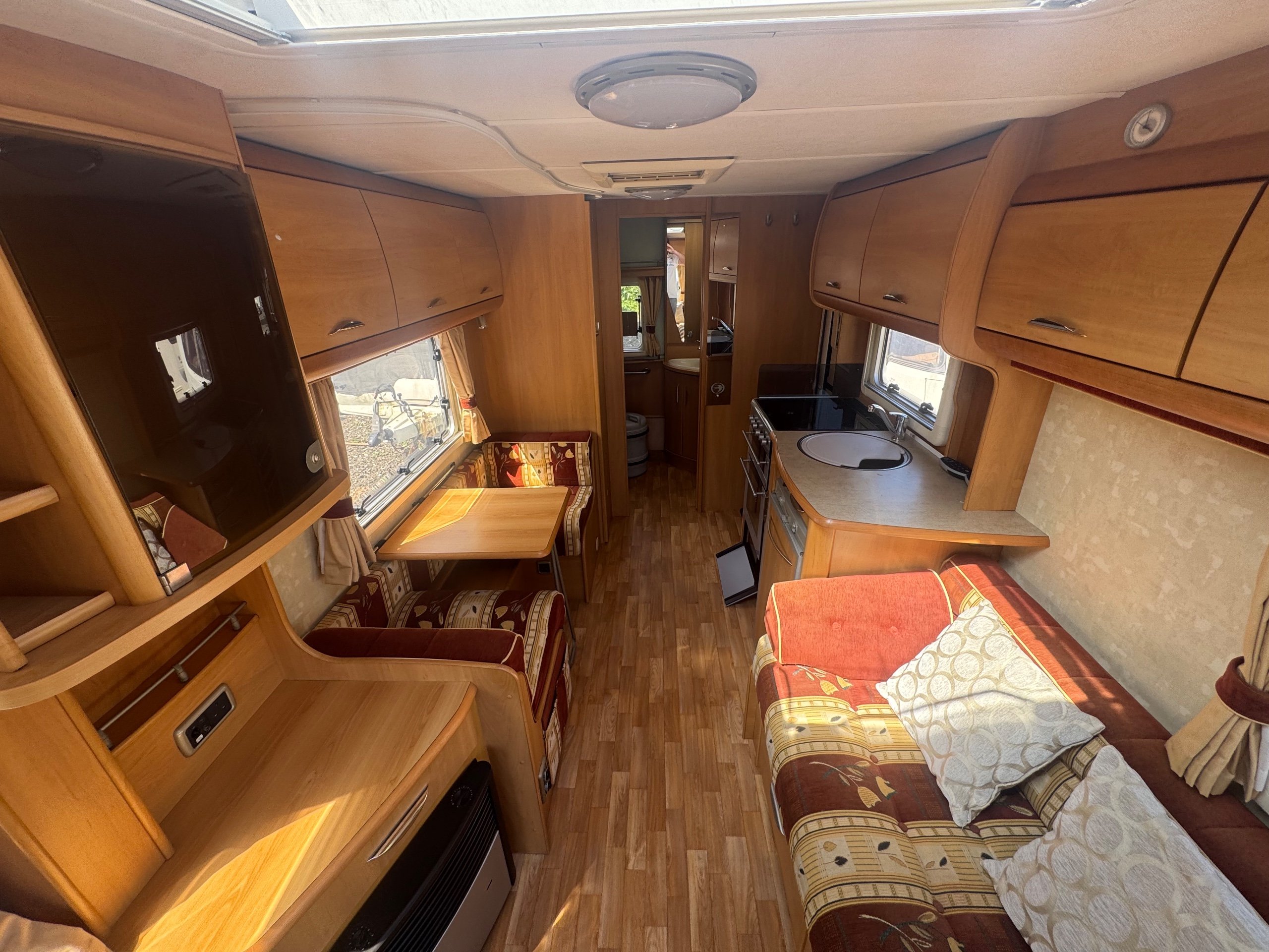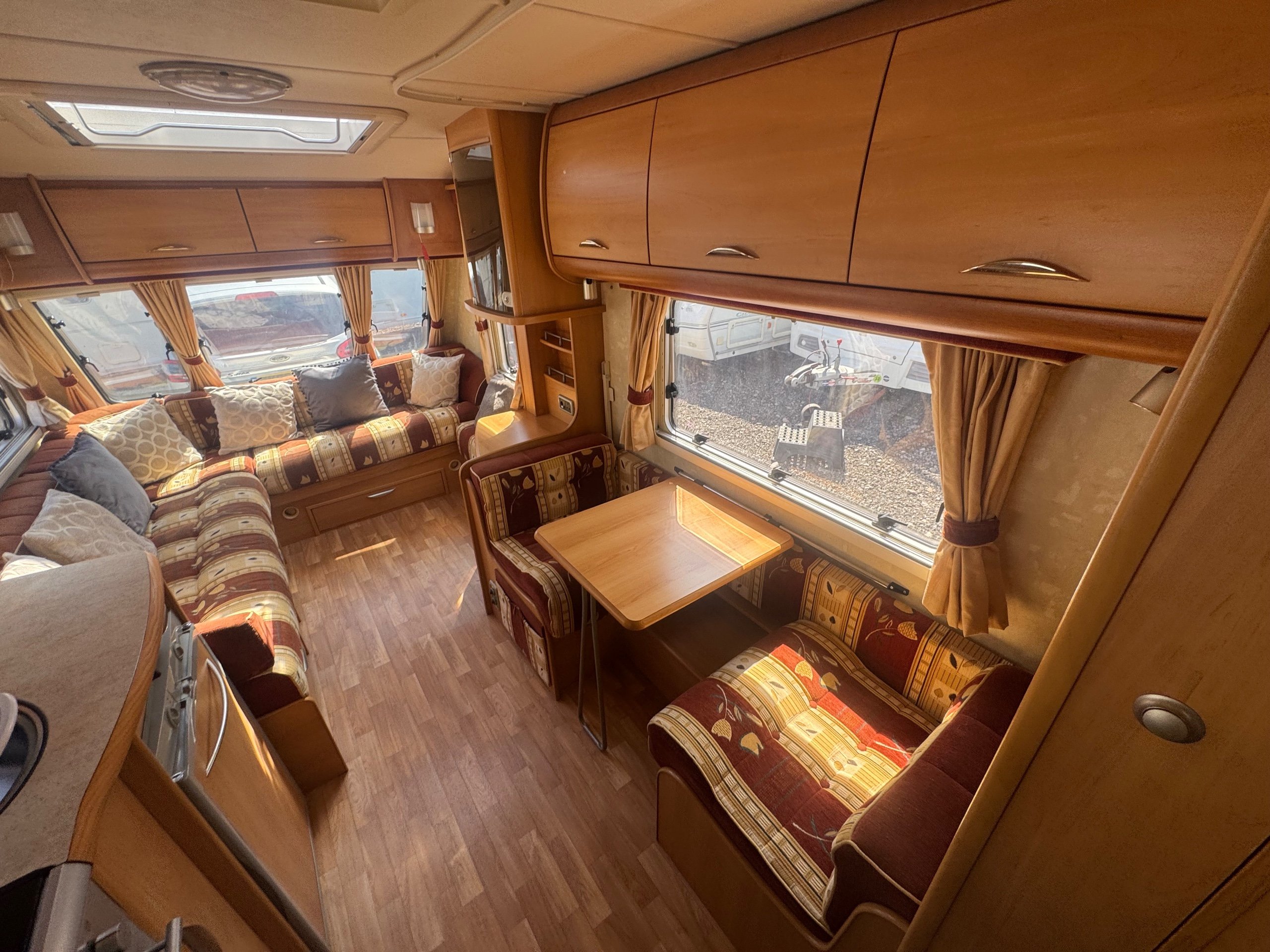 Swift Challenger 520 2005 4 berth caravan,in good Condition inside and out. This caravan is fully ready to take camping, it has lots of features and extras what you would expect from a high spec caravan such as this. It includes: hot and cold water, full central heating, full screens and blinds, full oven and grill, three-way fridge/freezer, 240–12 V electricity, HEKI rooflight, Alko Antisway towbar and much more.This caravan comes with a full