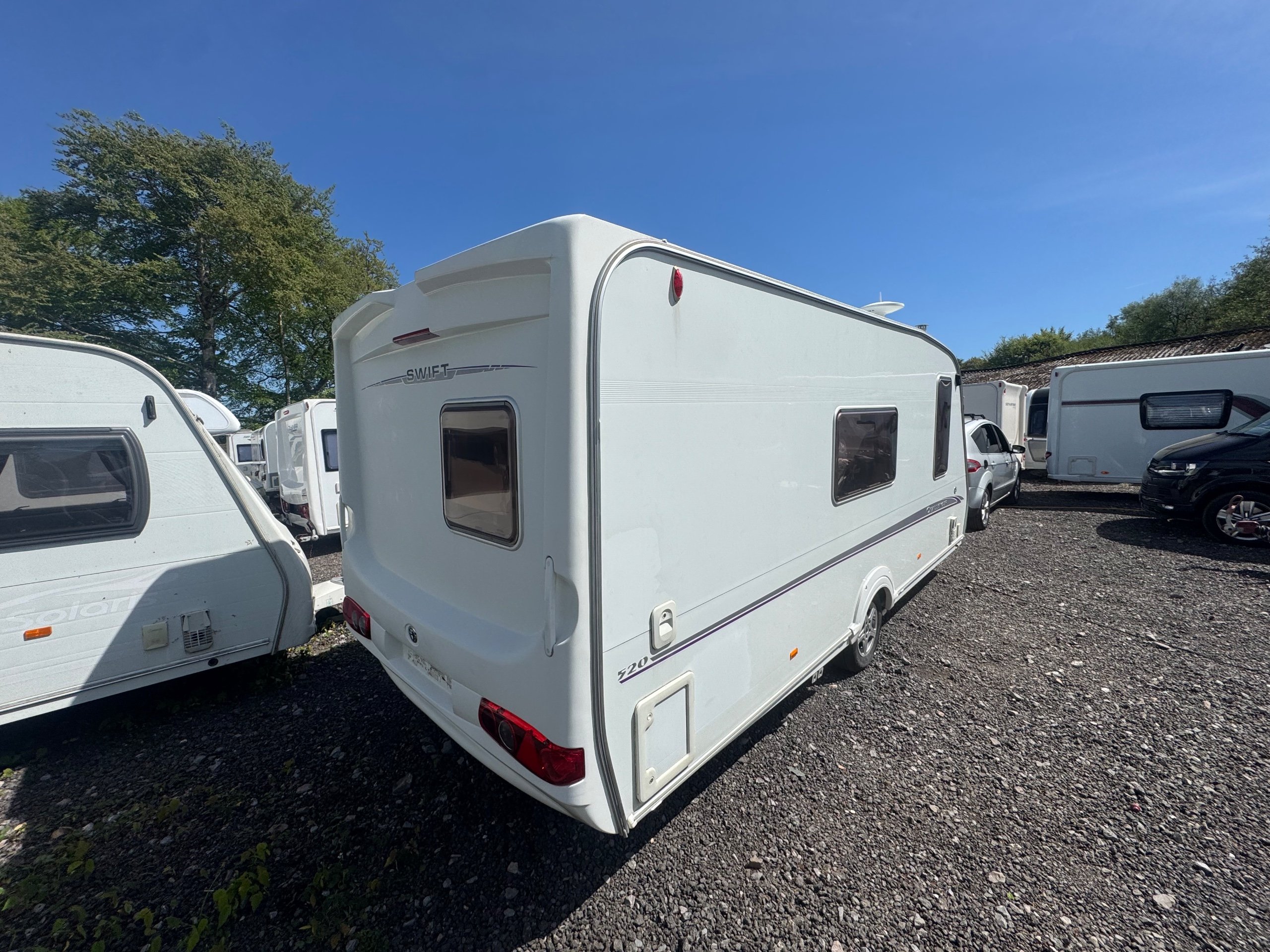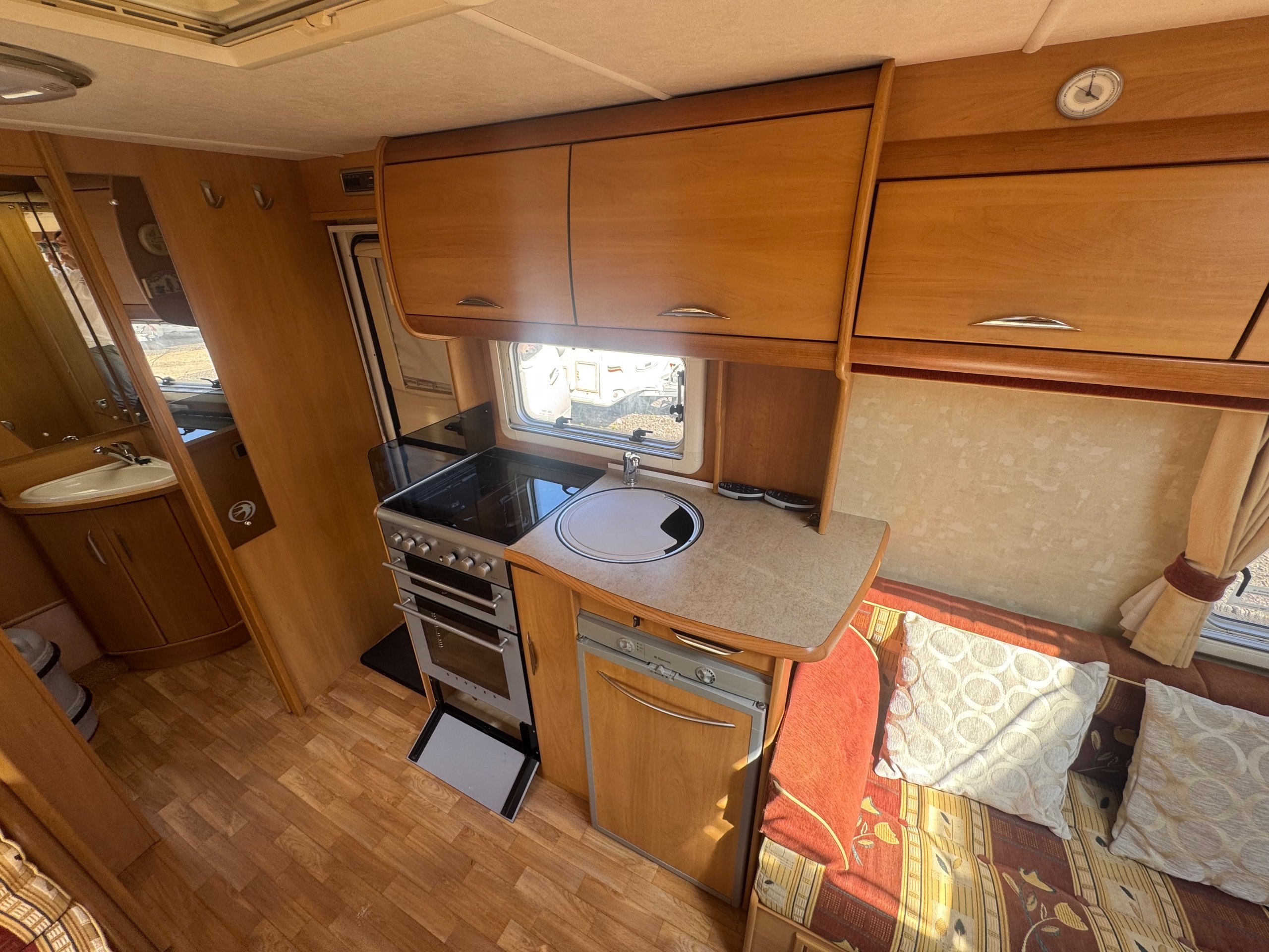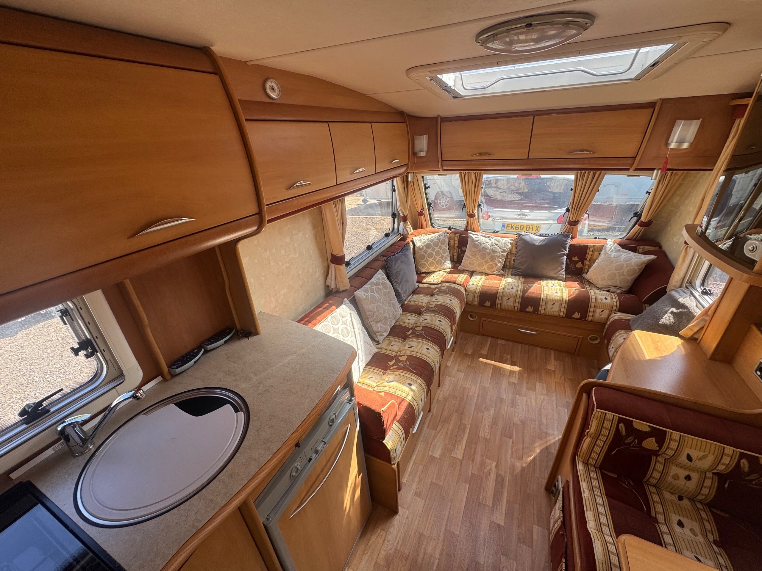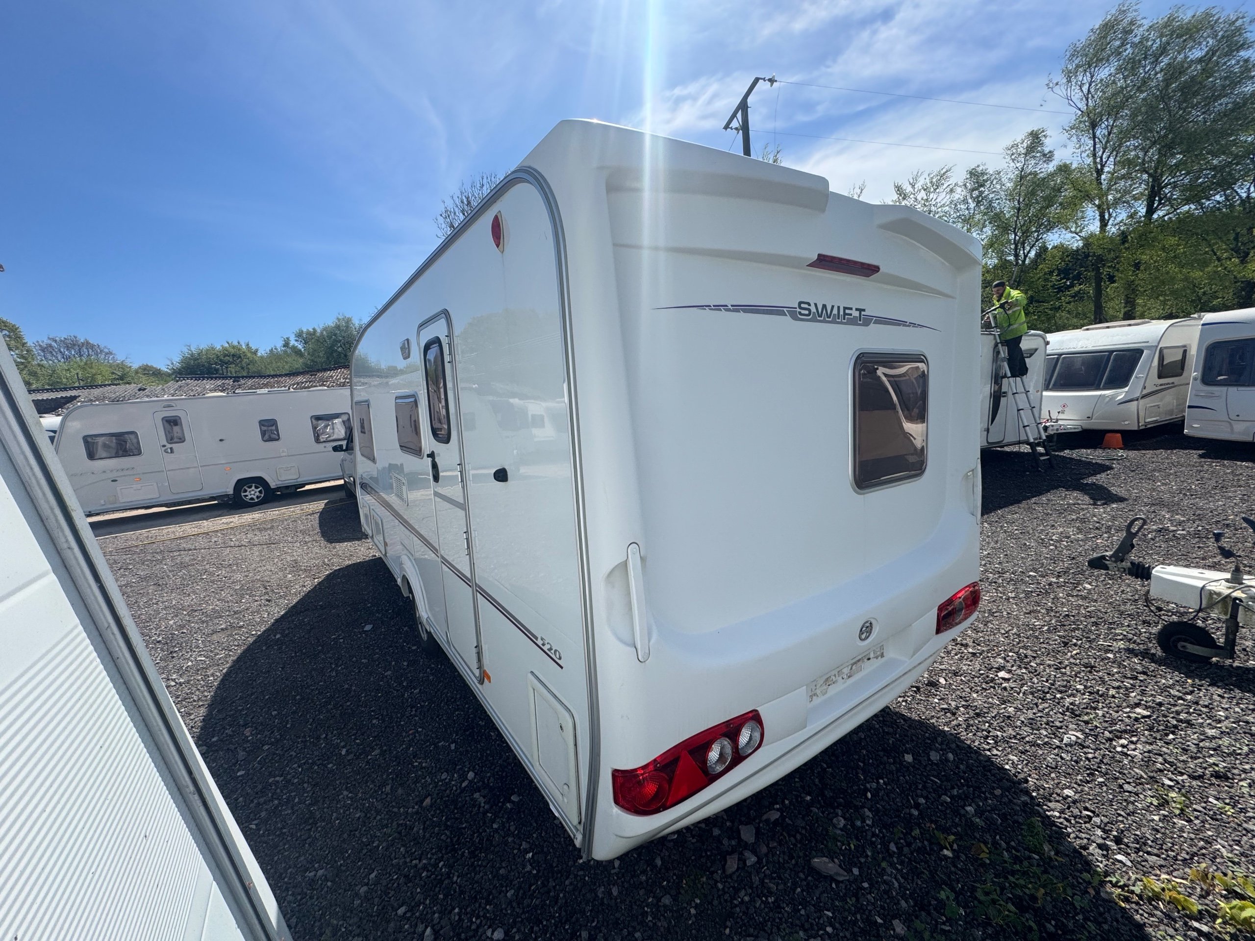 Swift Challenger 520 2005 4 berth caravan,in good Condition inside and out. This caravan is fully ready to take camping, it has lots of features and extras what you would expect from a high spec caravan such as this. It includes: hot and cold water, full central heating, full screens and blinds, full oven and grill, three-way fridge/freezer, 240–12 V electricity, HEKI rooflight, Alko Antisway towbar and much more.This caravan comes with a full