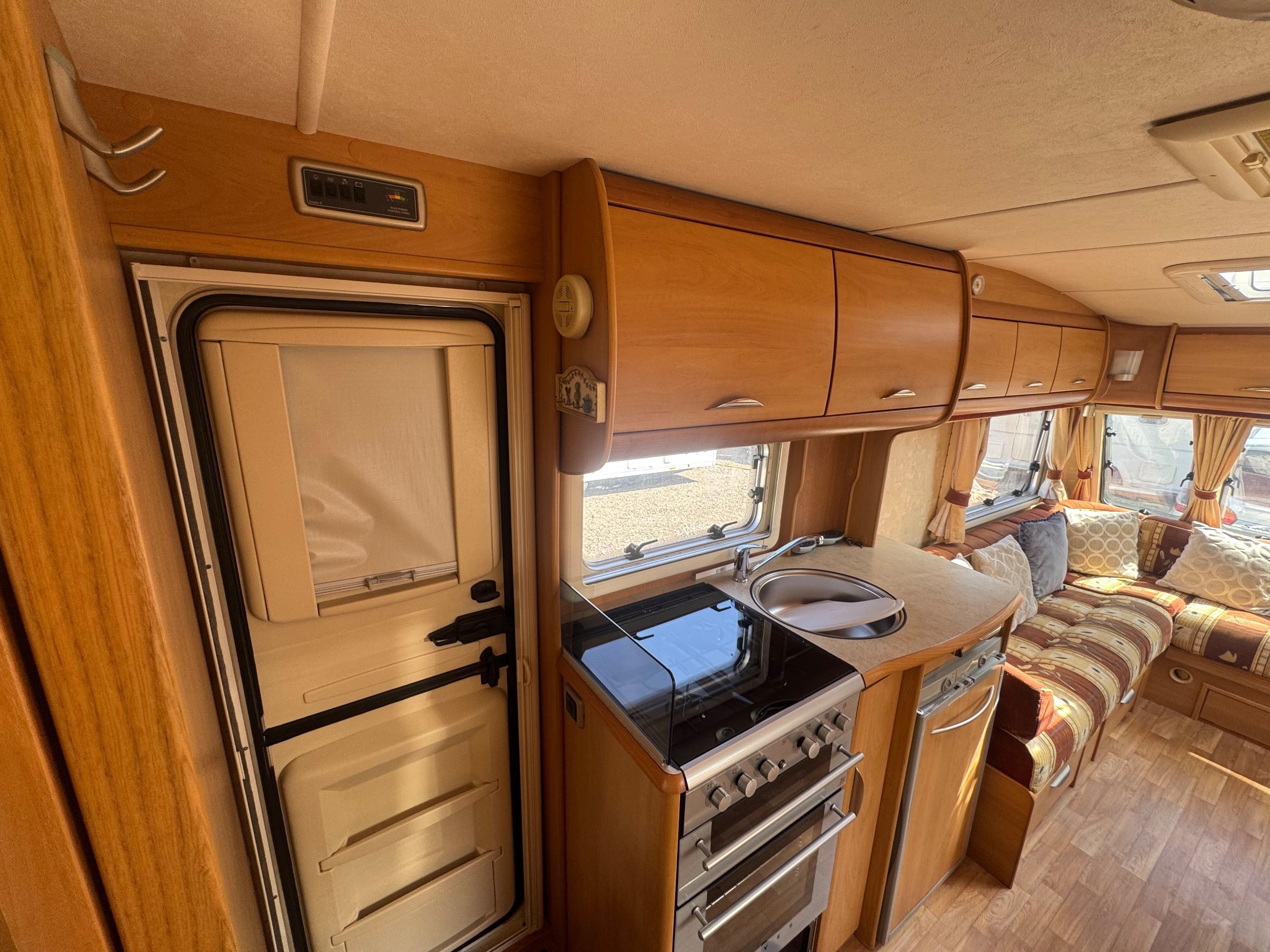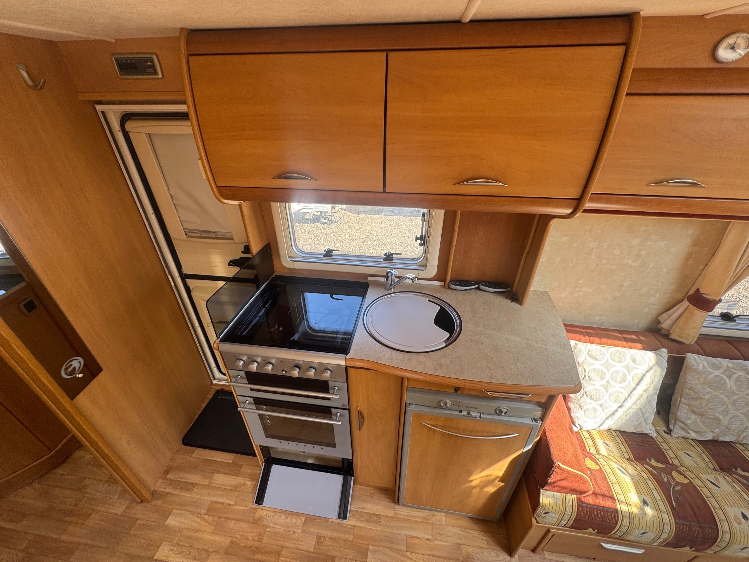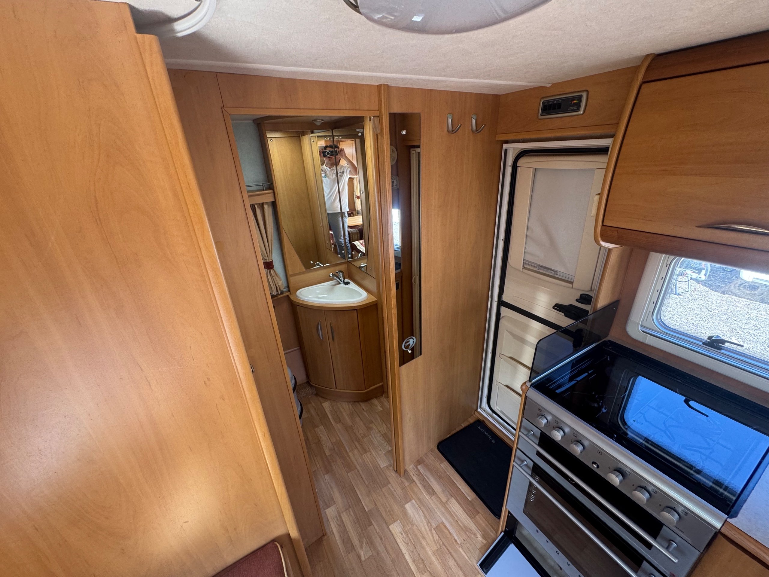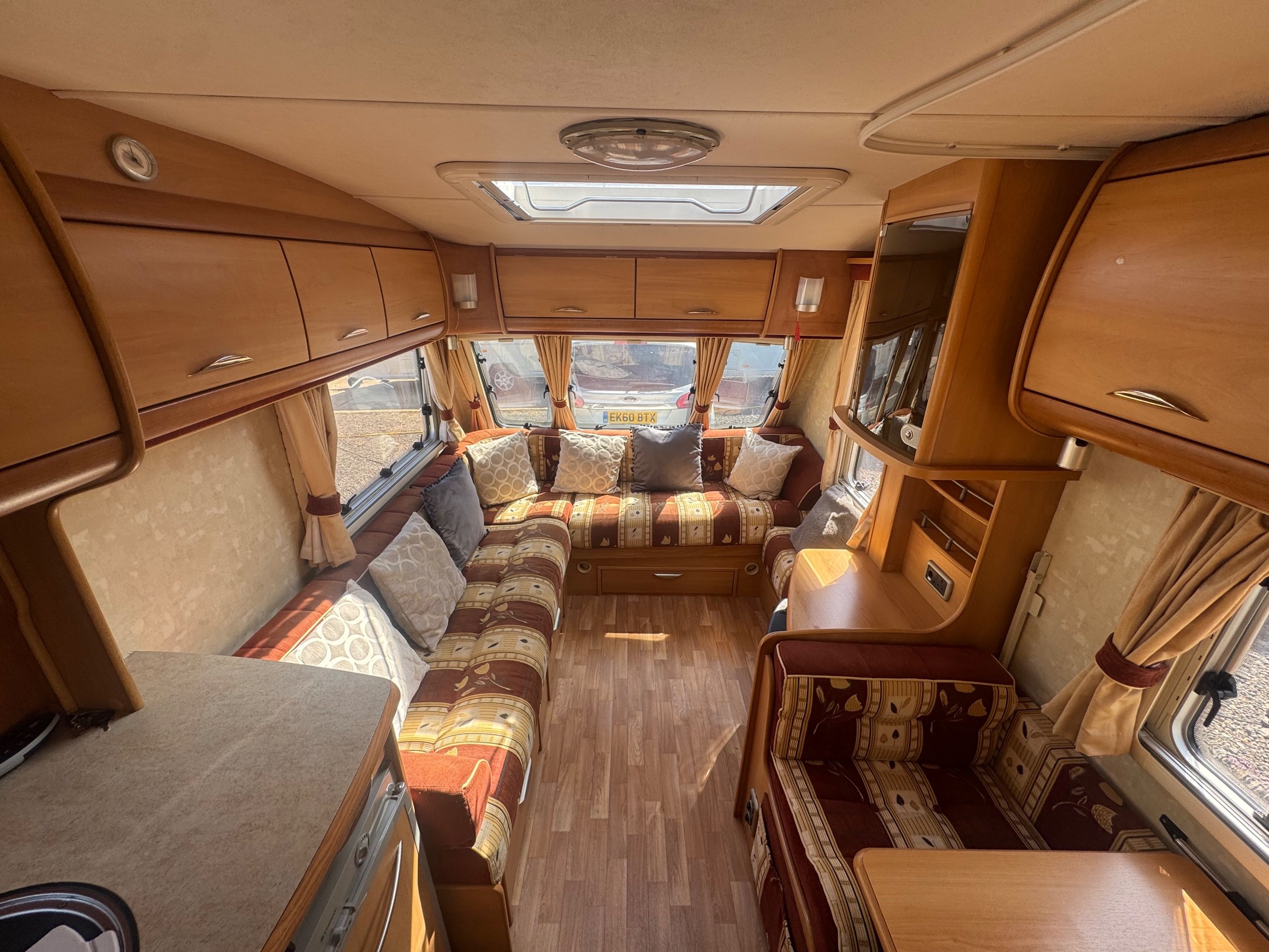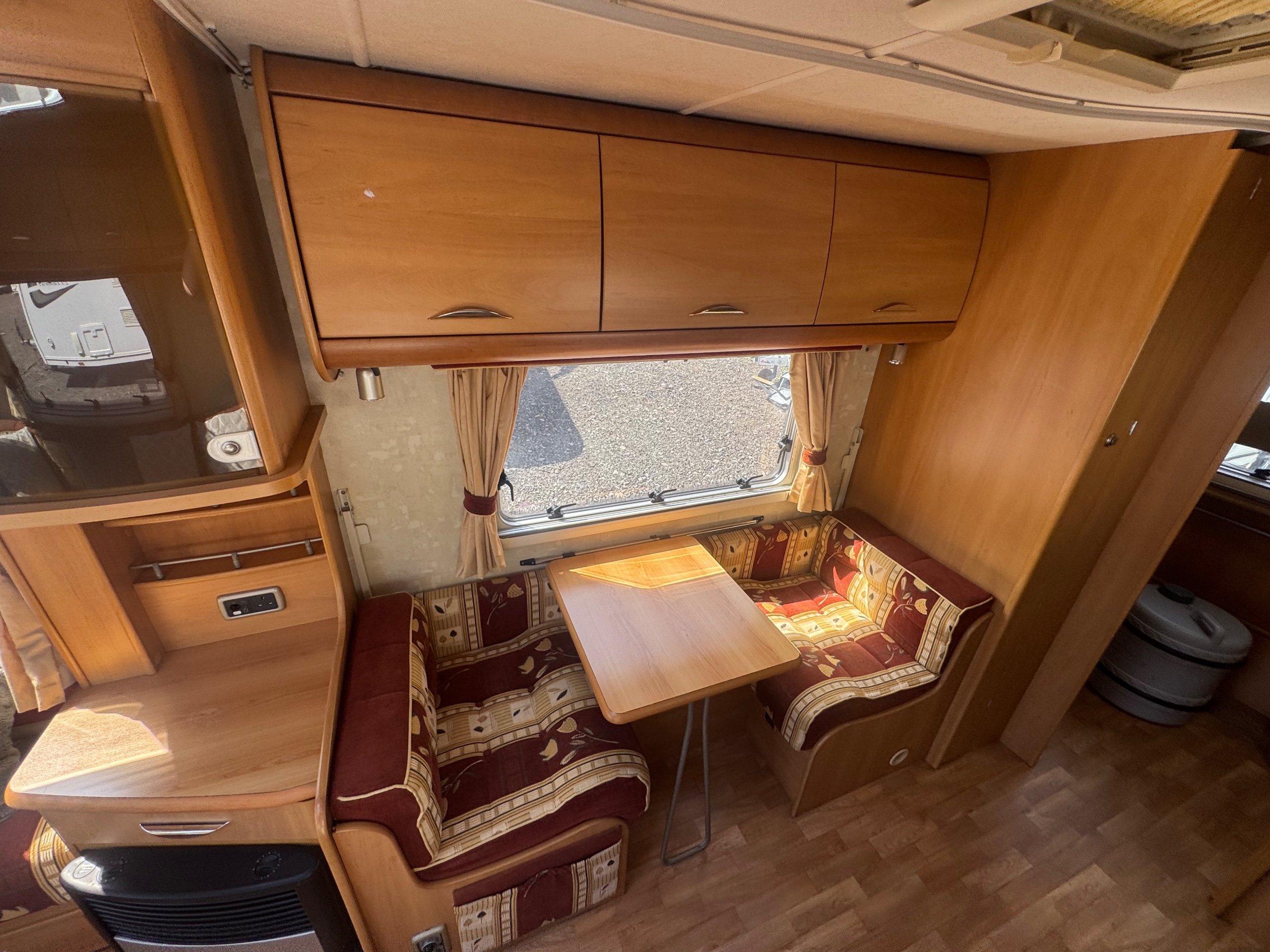 Swift Challenger 520 2005 4 berth caravan,in good Condition inside and out. This caravan is fully ready to take camping, it has lots of features and extras what you would expect from a high spec caravan such as this. It includes: hot and cold water, full central heating, full screens and blinds, full oven and grill, three-way fridge/freezer, 240–12 V electricity, HEKI rooflight, Alko Antisway towbar and much more.This caravan comes with a full