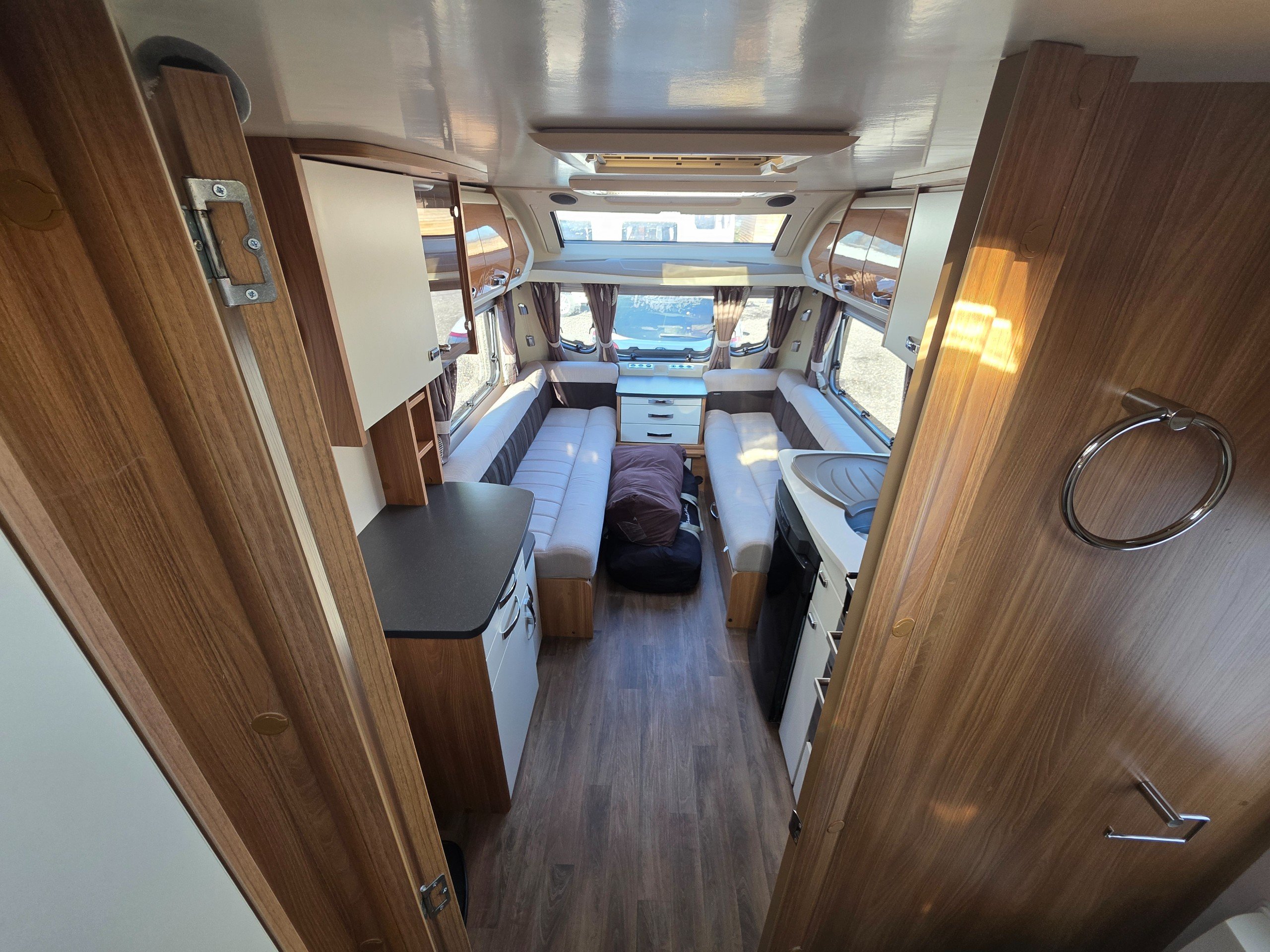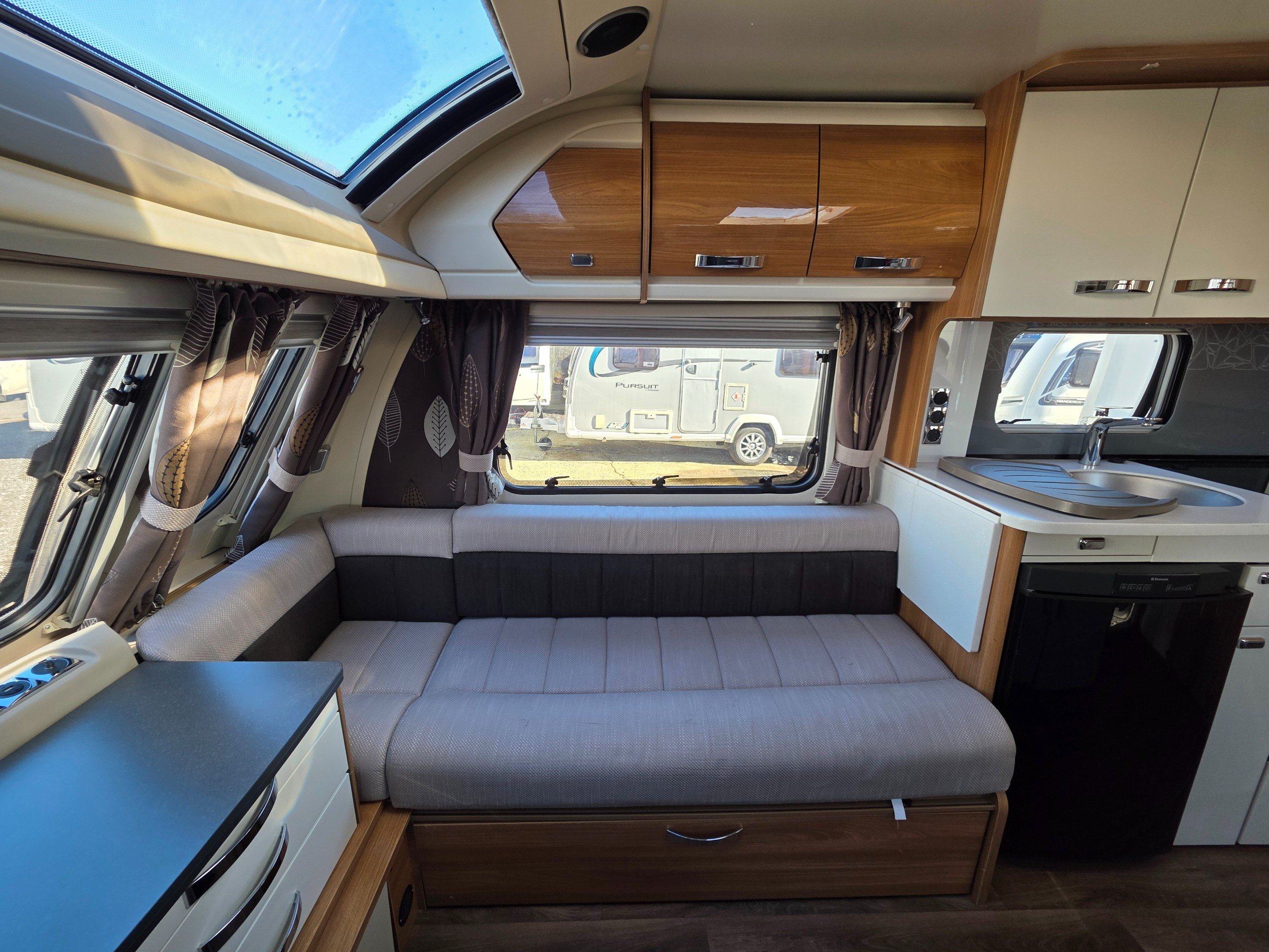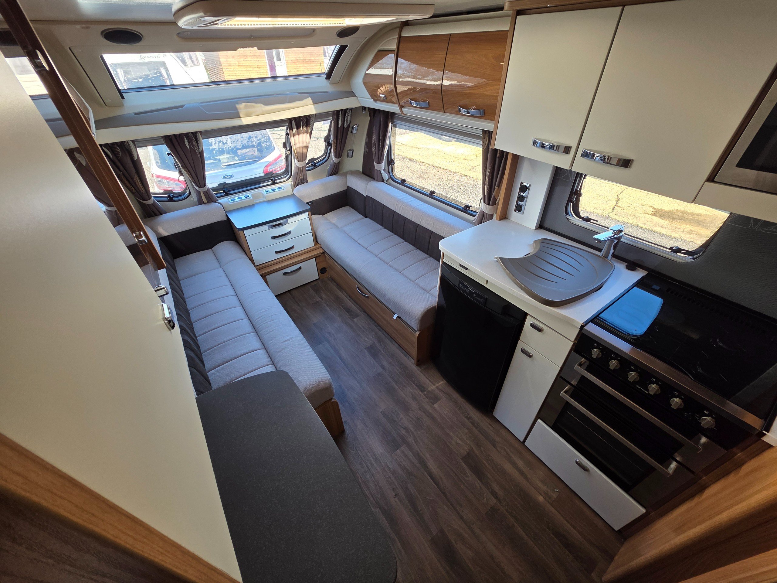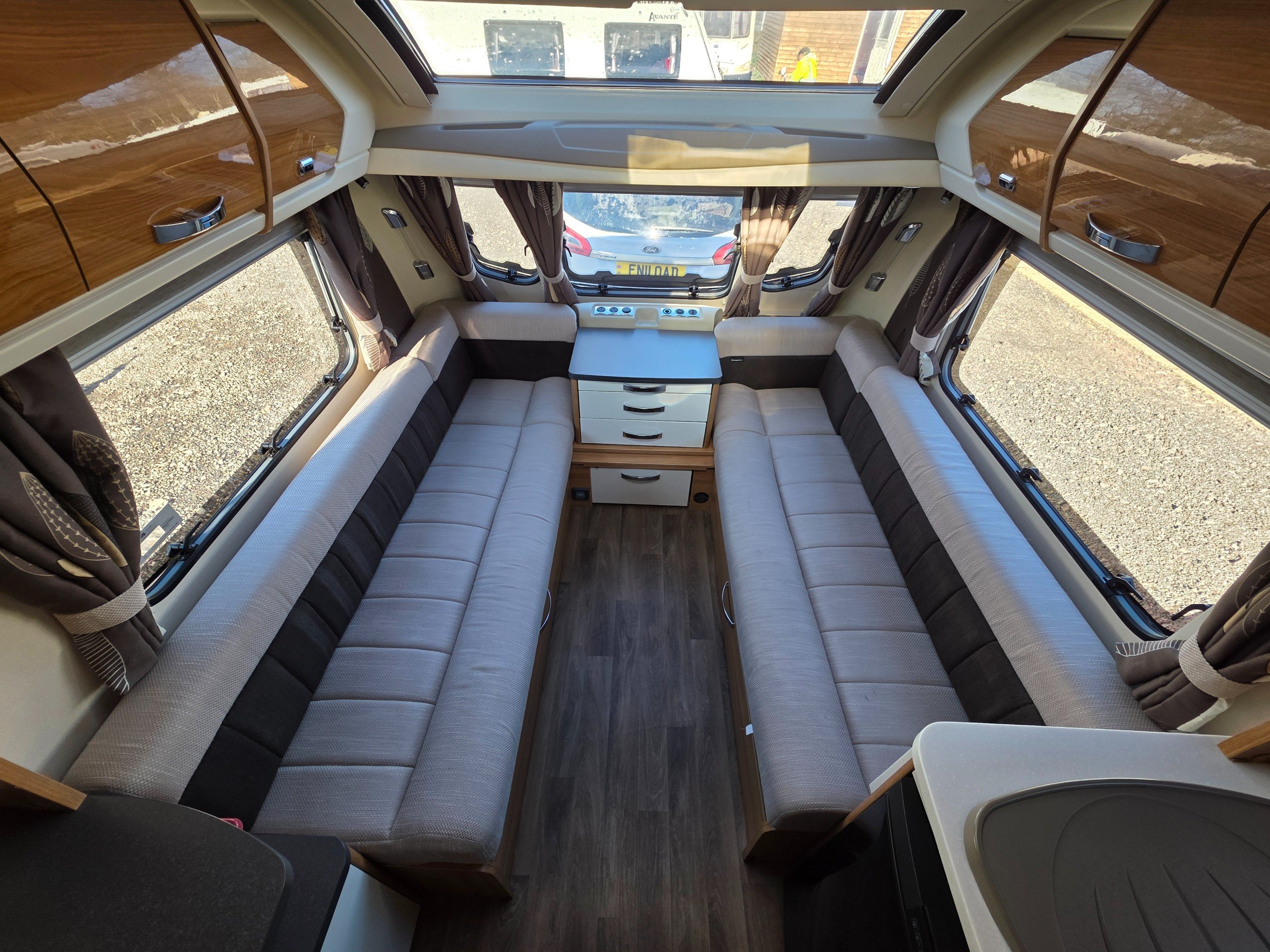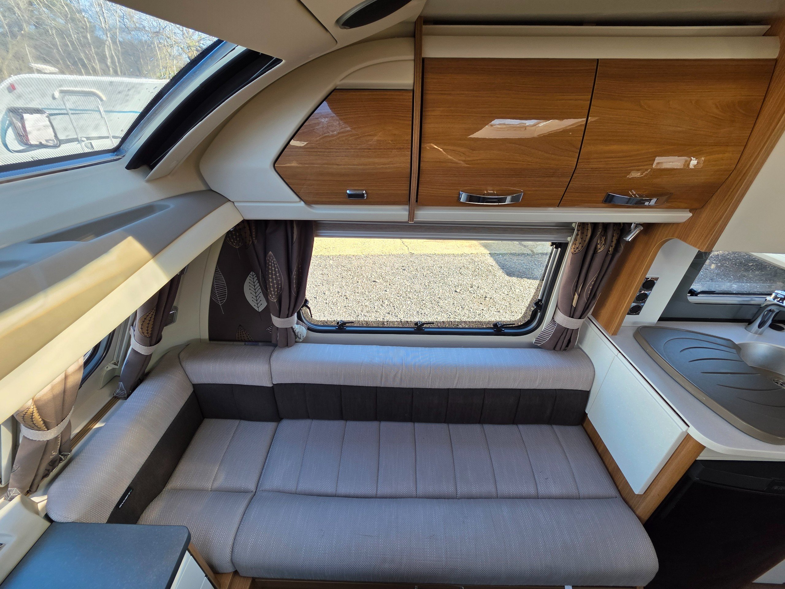 Swift Elegance 480, 50th Anniversary Edition, 2 berth 2014 caravan, in stunning condition inside and out. This caravan is fully ready to take camping, it has lots of features and extras what you would expect from a high spec caravan such as this. It includes: hot and cold water, full central heating, full screens and blinds, full oven and grill, three-way fridge/freezer, 240–12 V electricity, HEKI rooflight, Alko Antisway towbar and much more.This caravan comes with a full