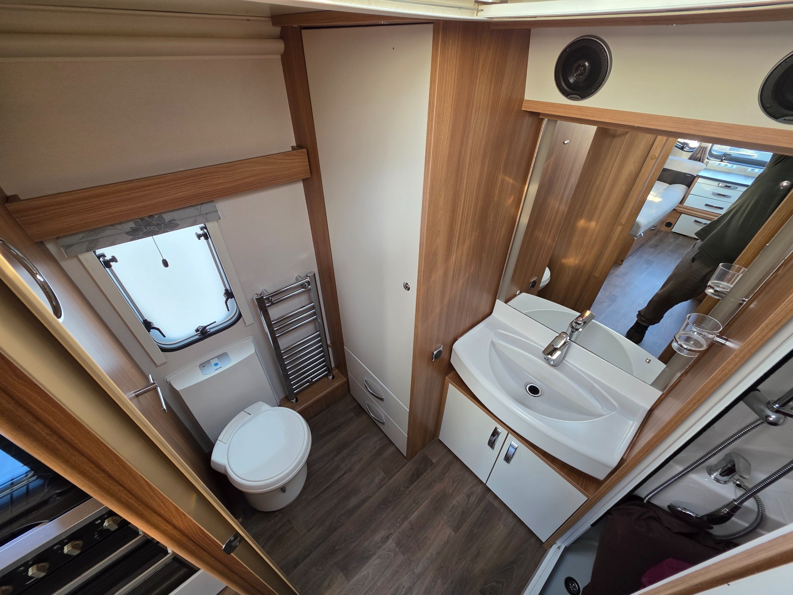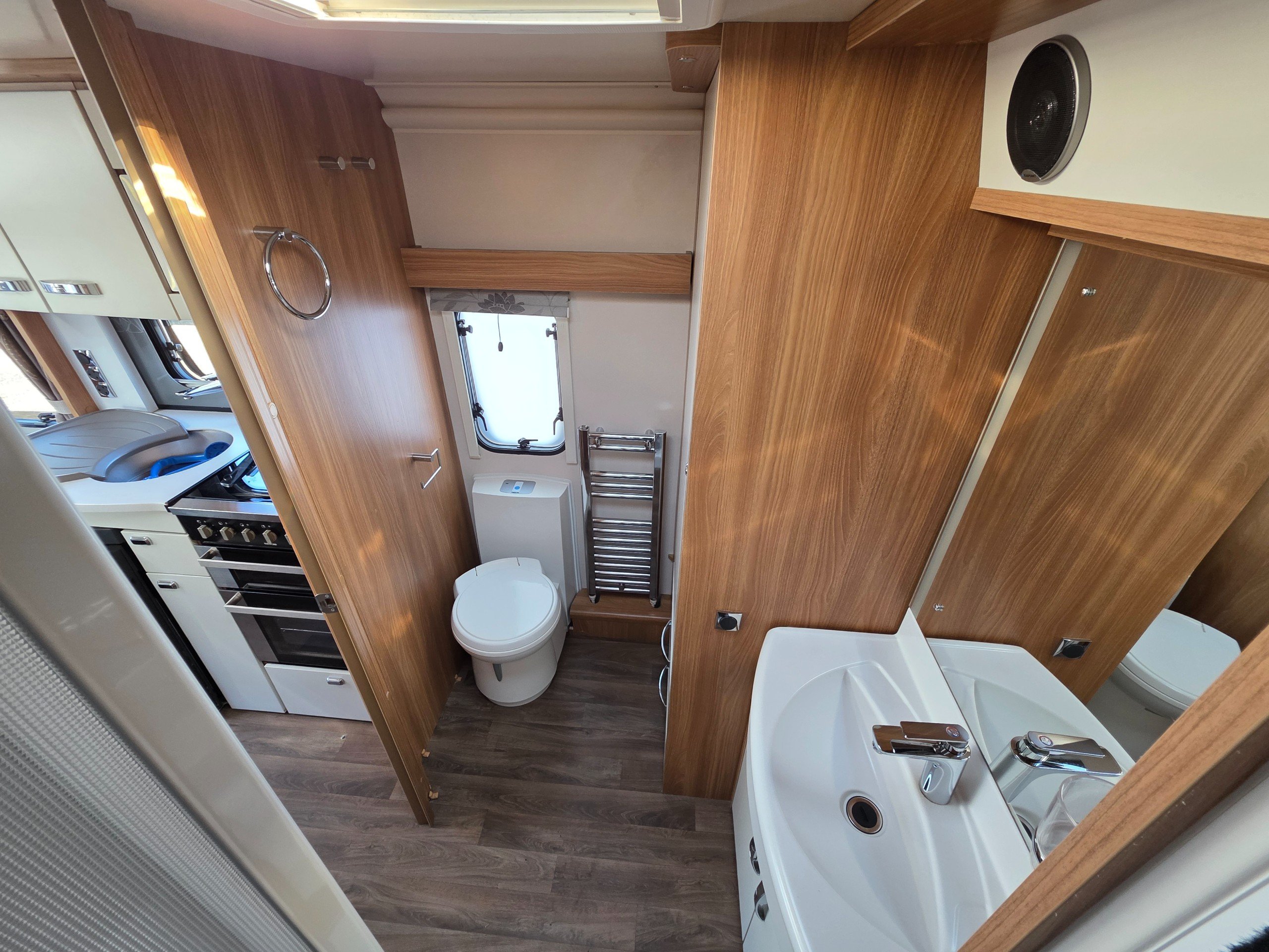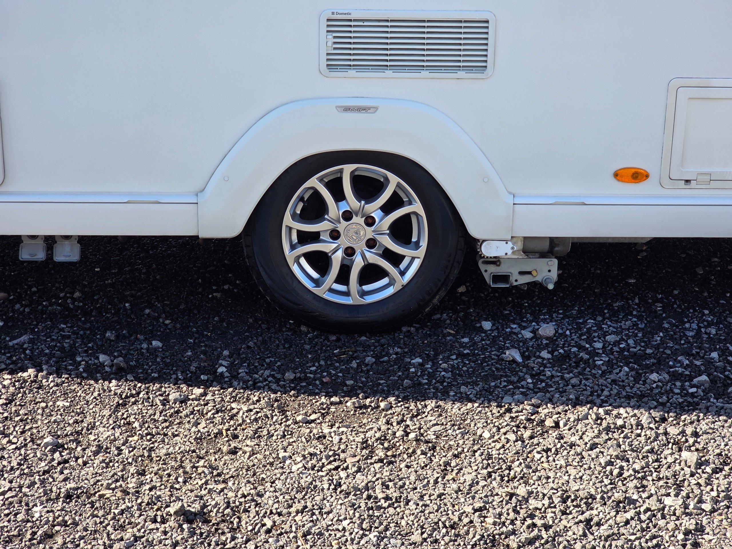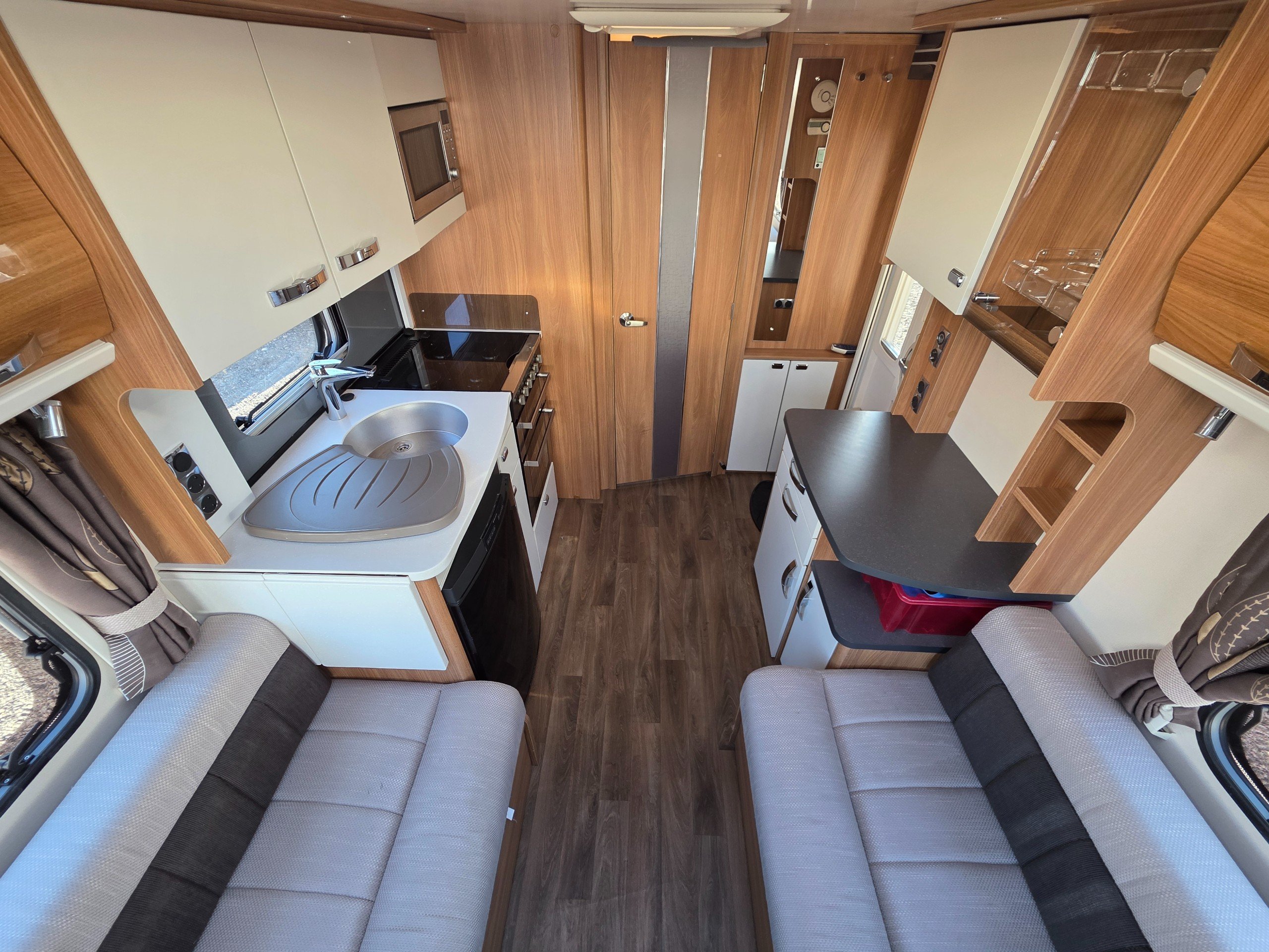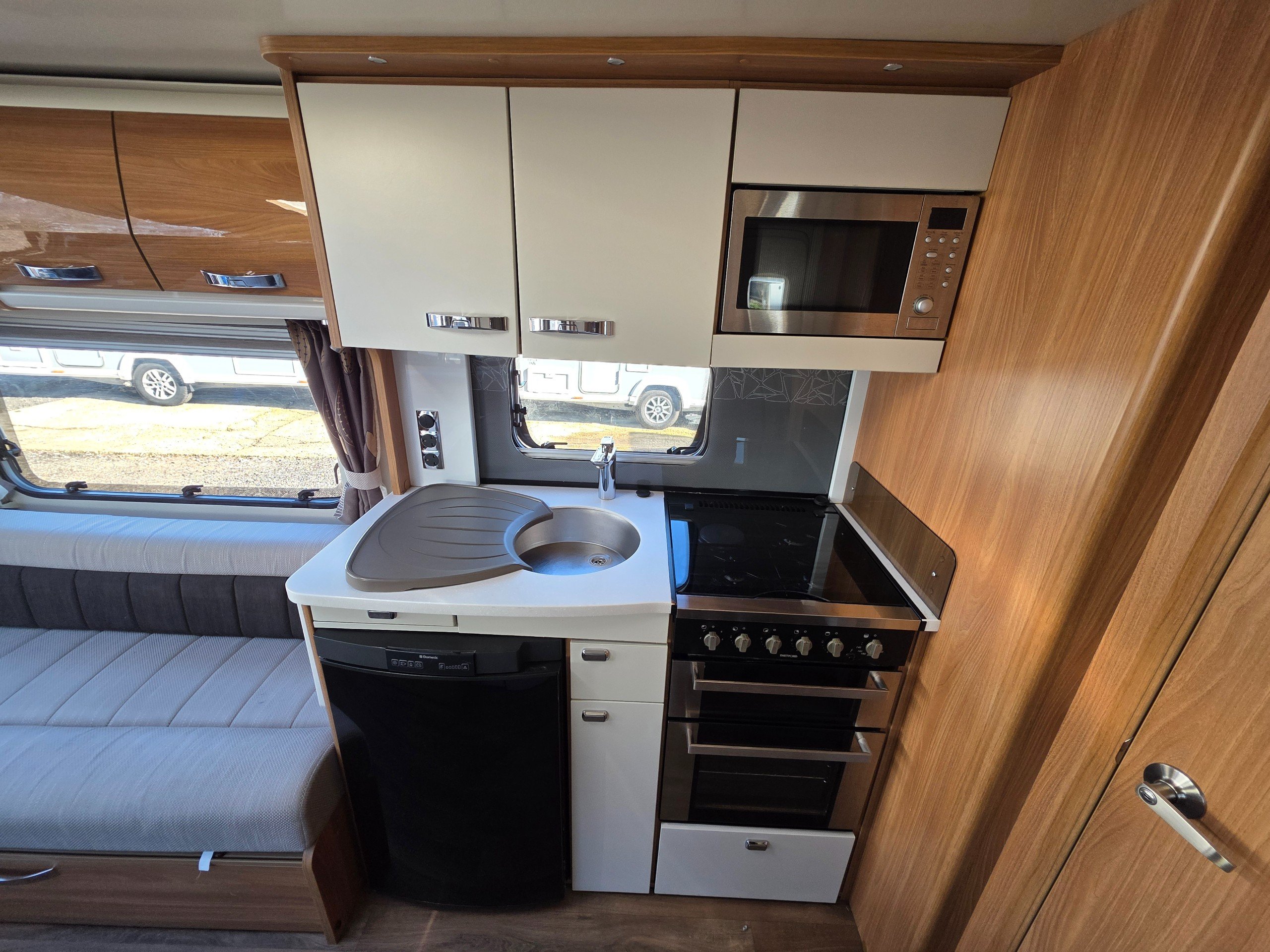 Swift Elegance 480, 50th Anniversary Edition, 2 berth 2014 caravan, in stunning condition inside and out. This caravan is fully ready to take camping, it has lots of features and extras what you would expect from a high spec caravan such as this. It includes: hot and cold water, full central heating, full screens and blinds, full oven and grill, three-way fridge/freezer, 240–12 V electricity, HEKI rooflight, Alko Antisway towbar and much more.This caravan comes with a full